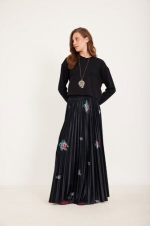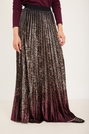 שמלחה ארוכה עם דעקת צבעי חום ואפור, אופנתית ונוחה ללבוש.