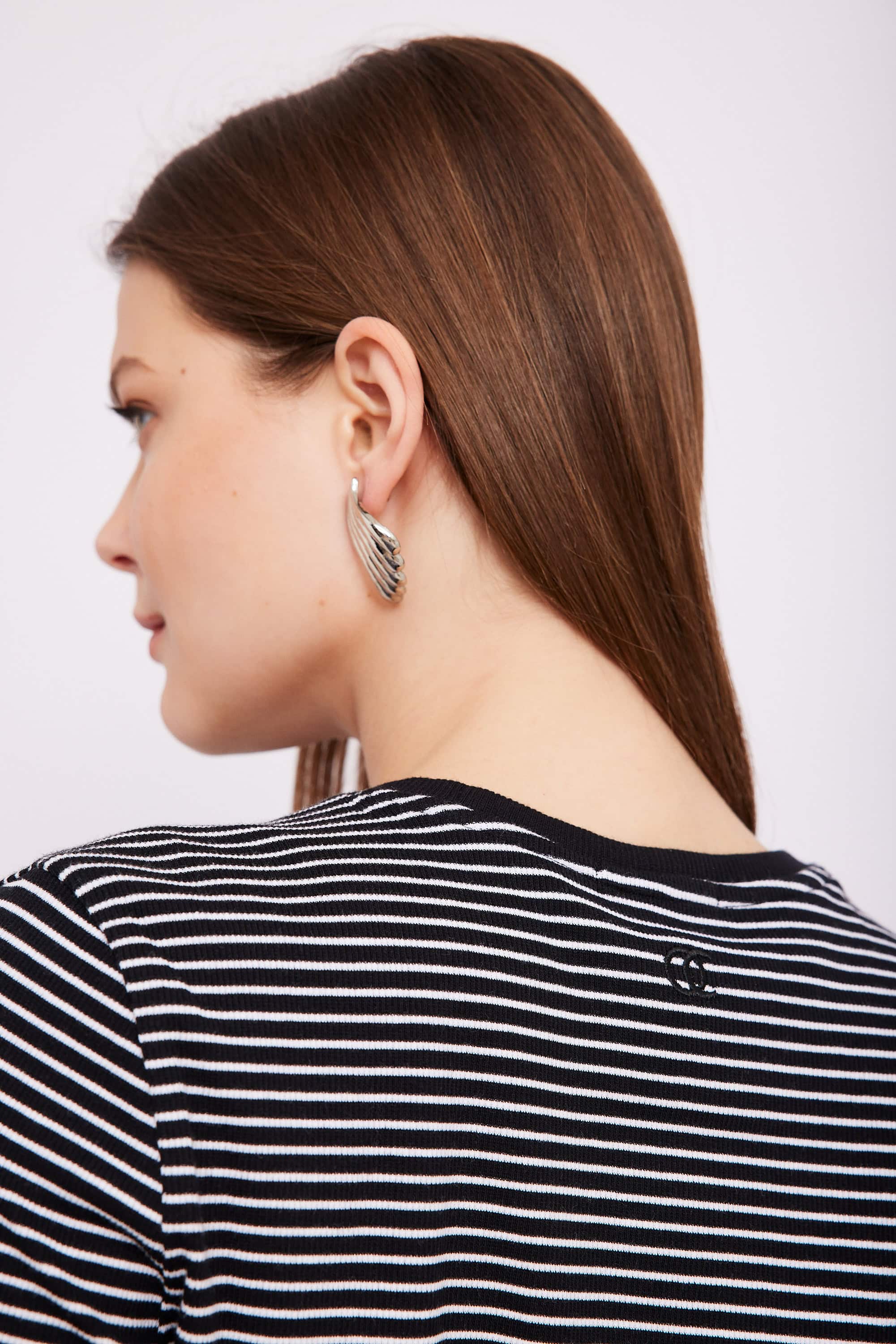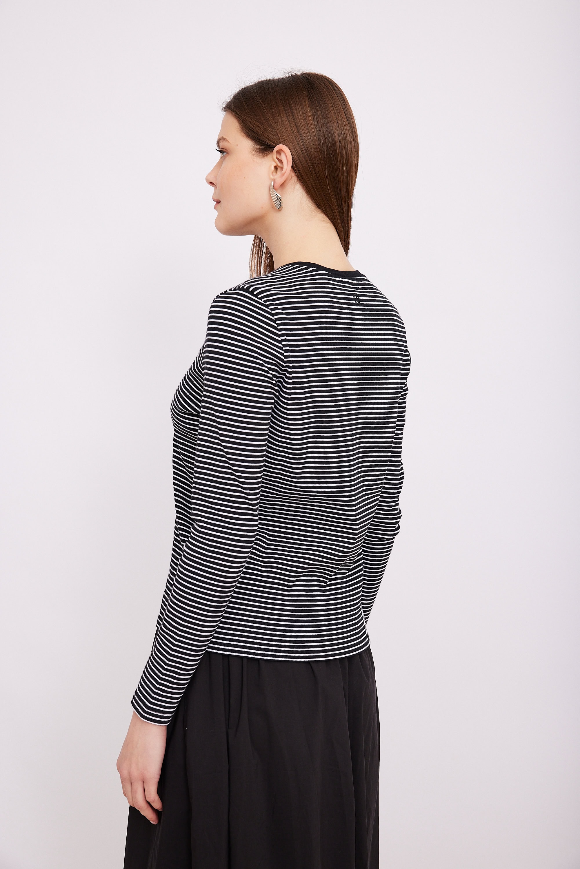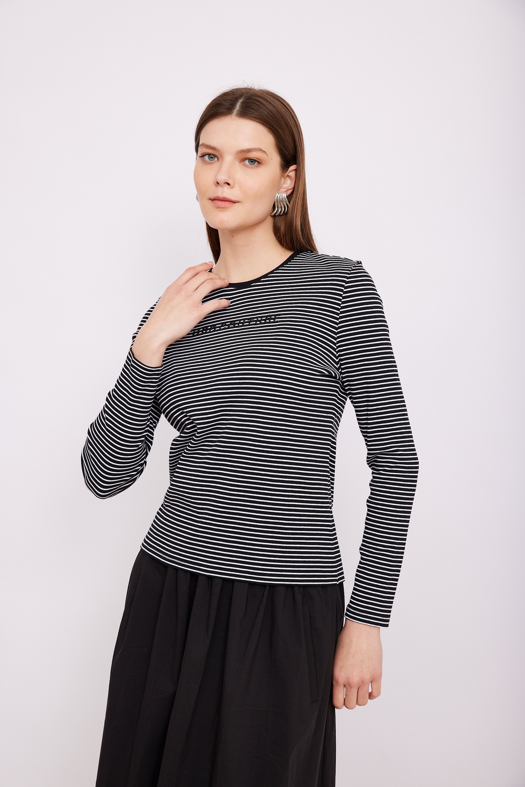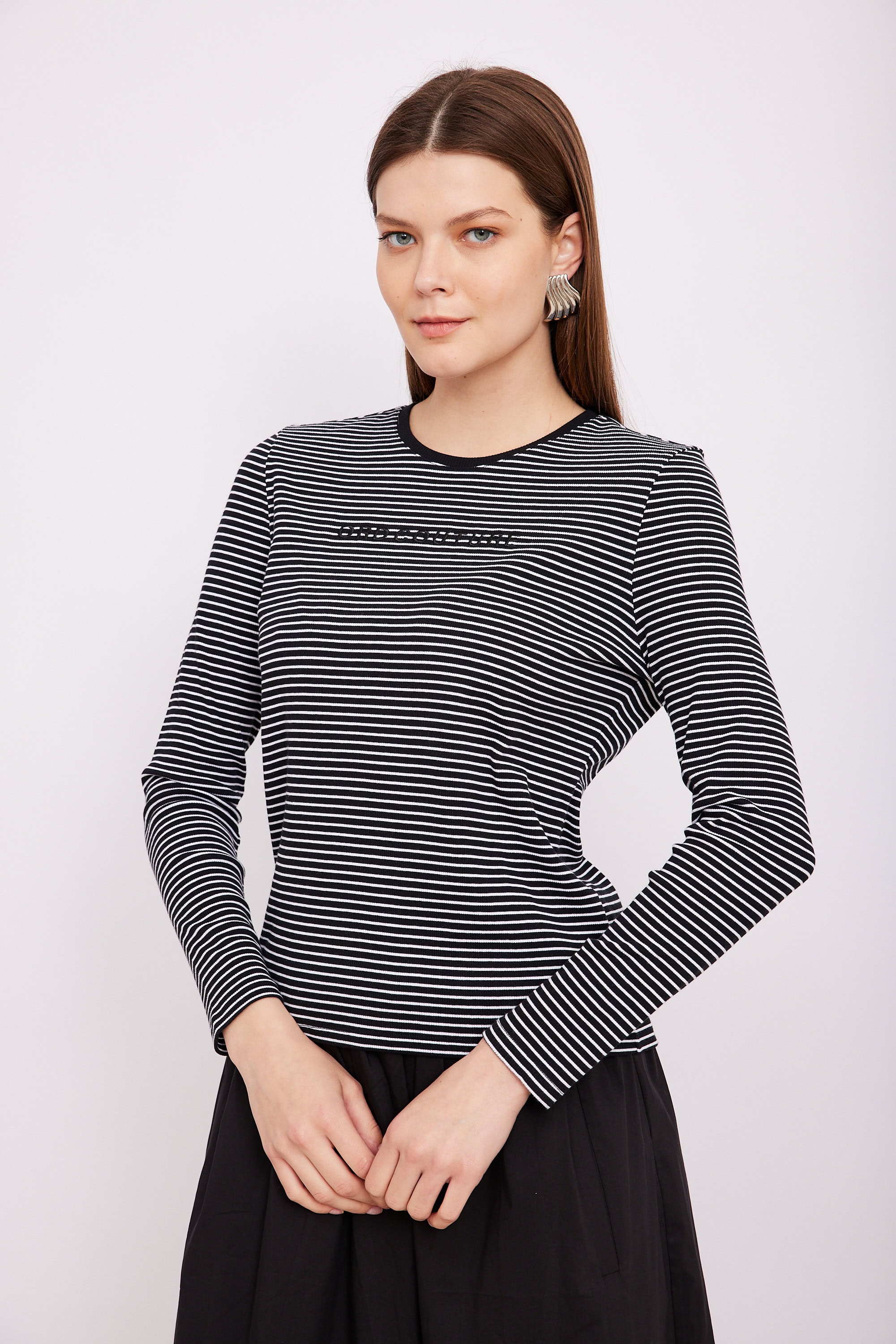 חולצת בייסיק שחור לבן עם כיתוב שחור