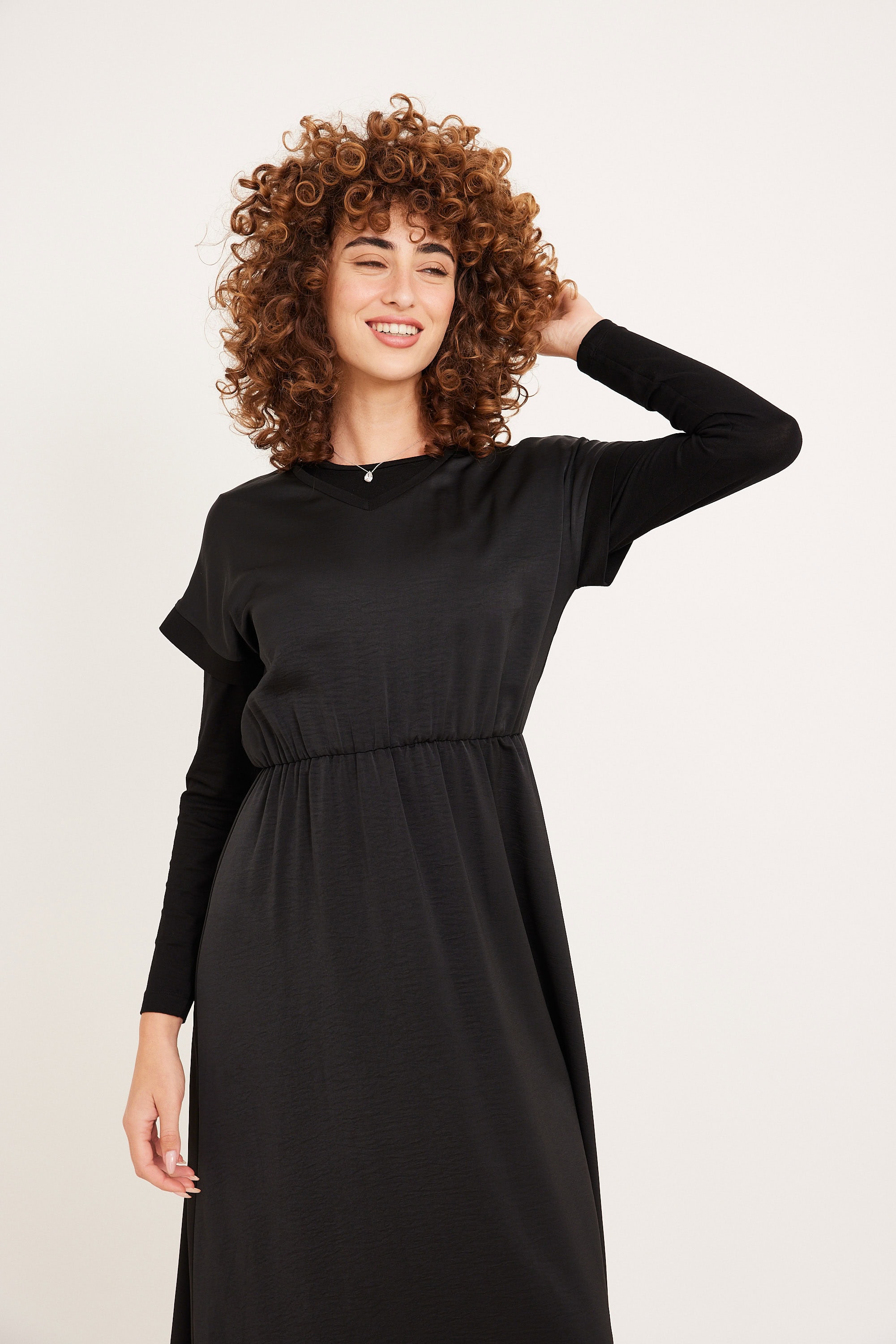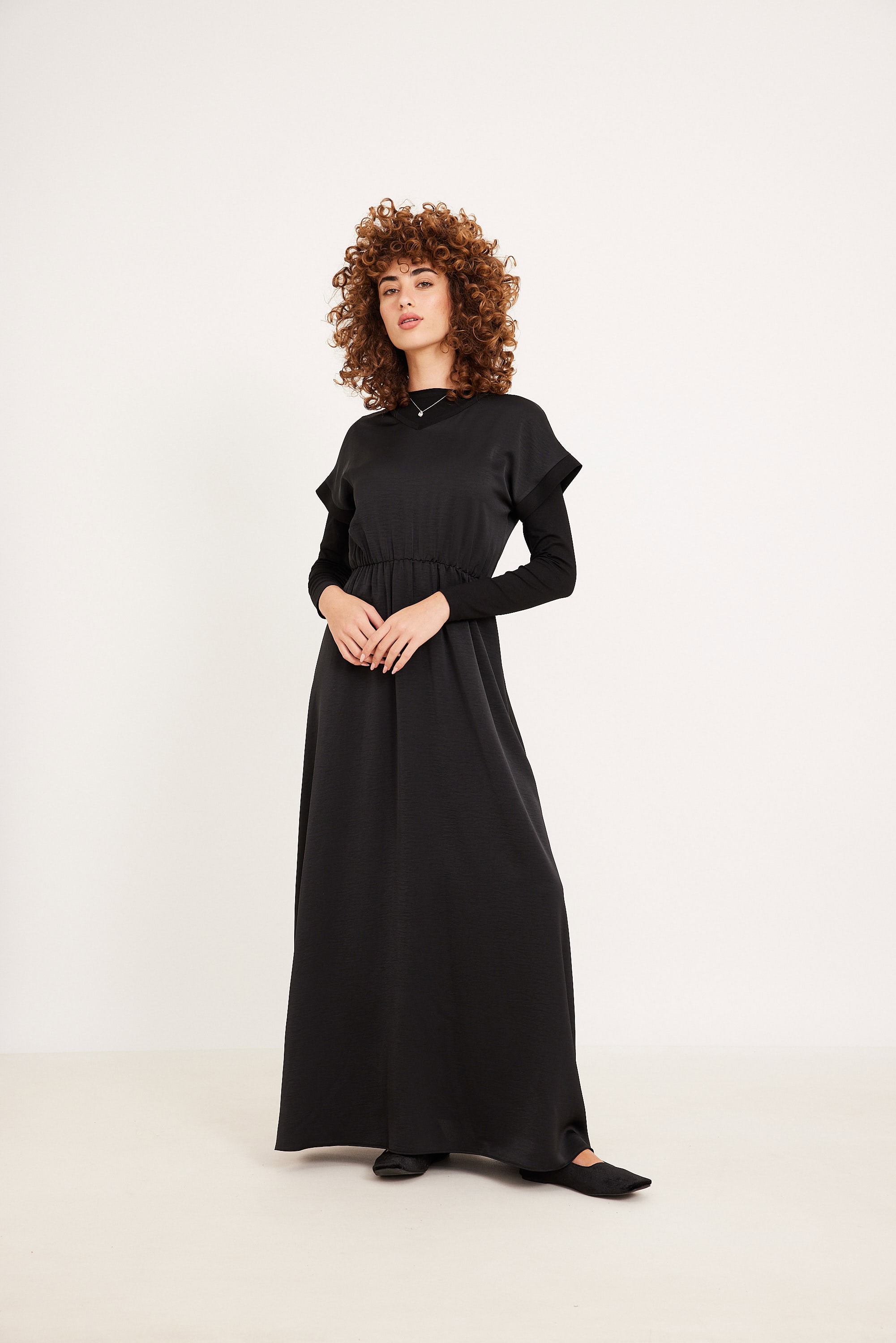 שמלת A קומות נילון בגב