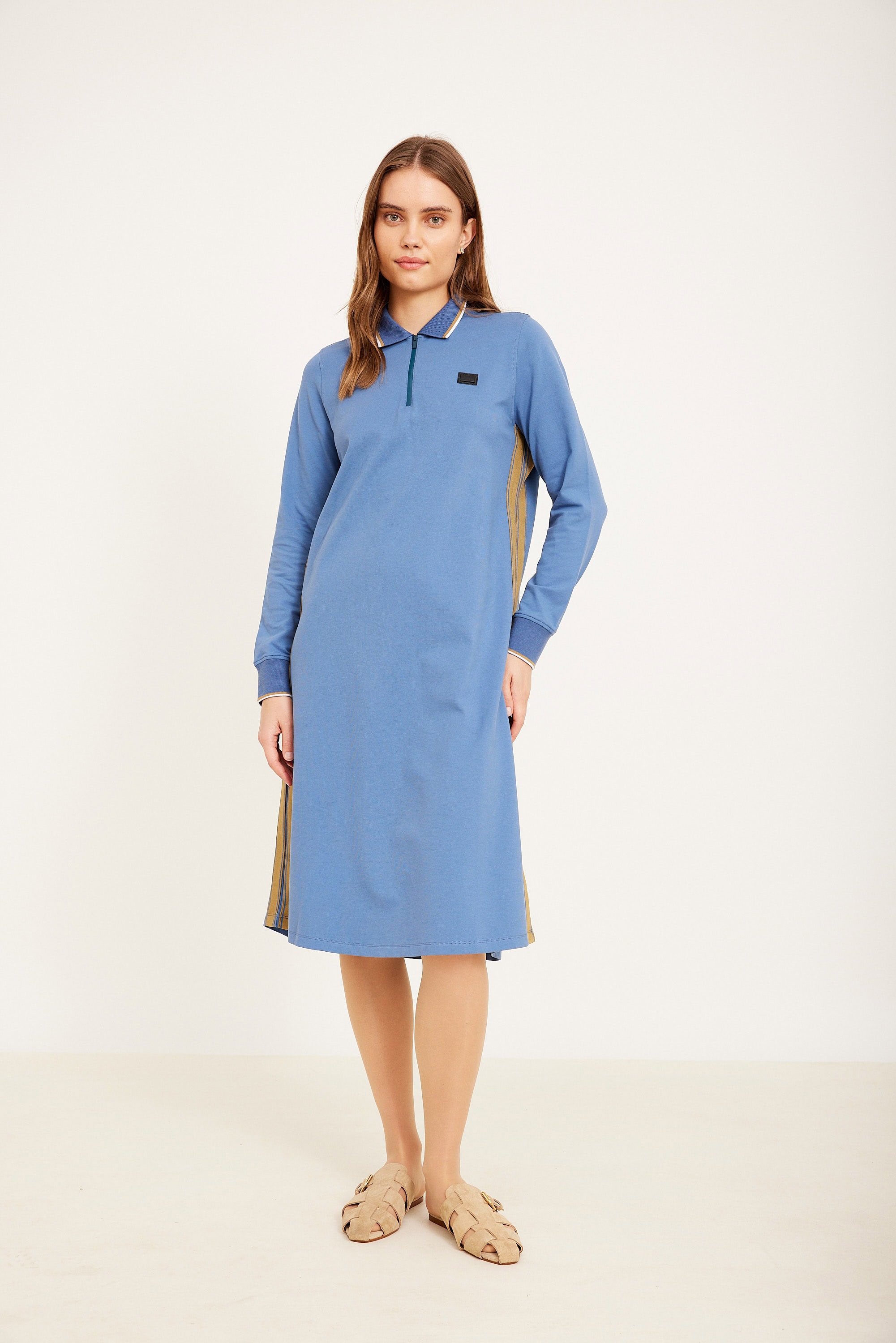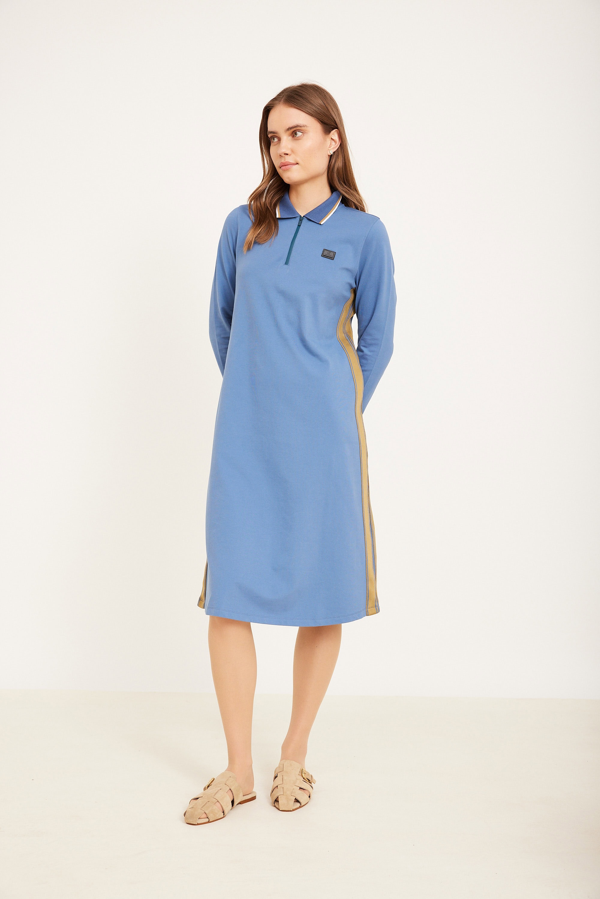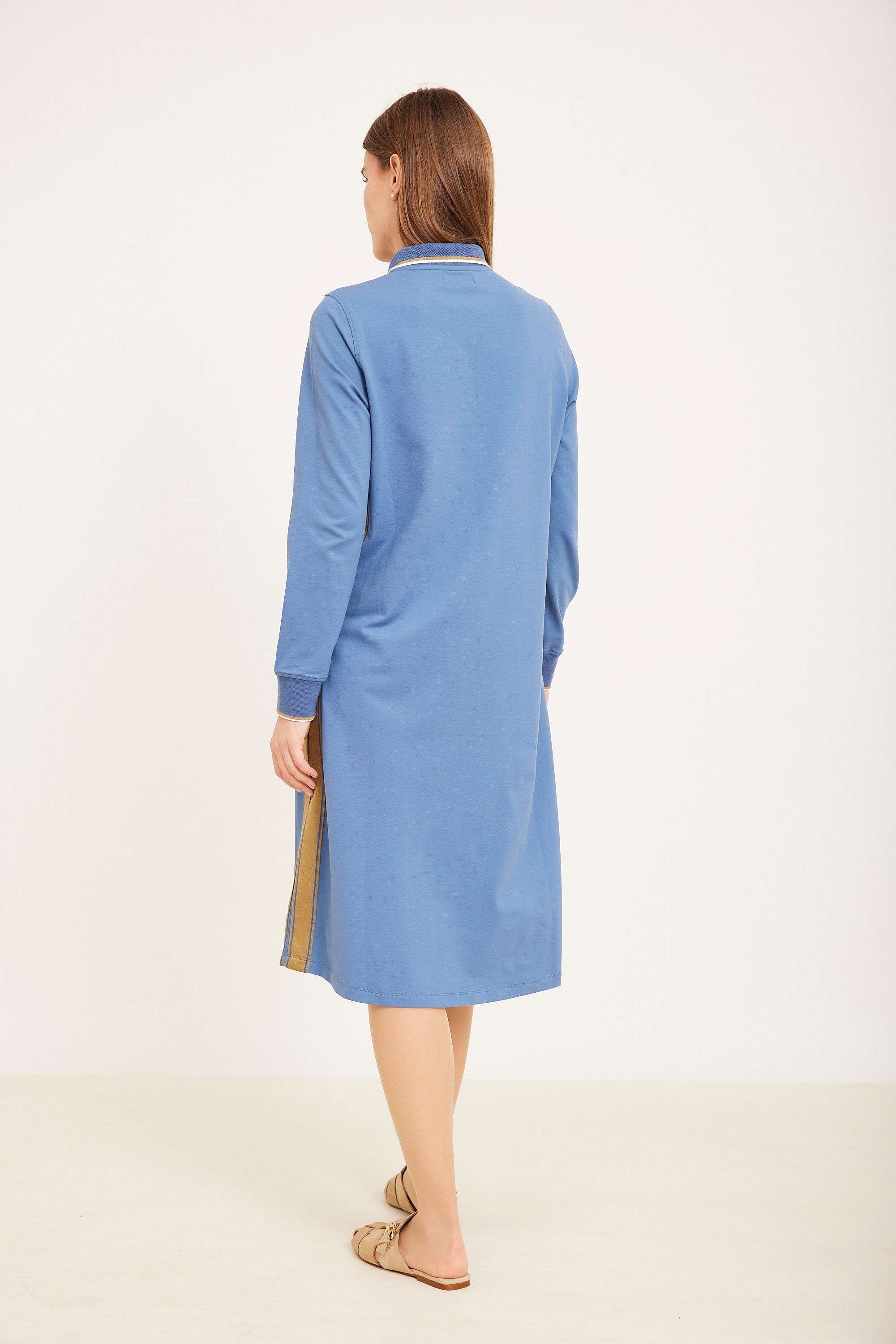 שמלת לקוסט עם סיומות קאמל