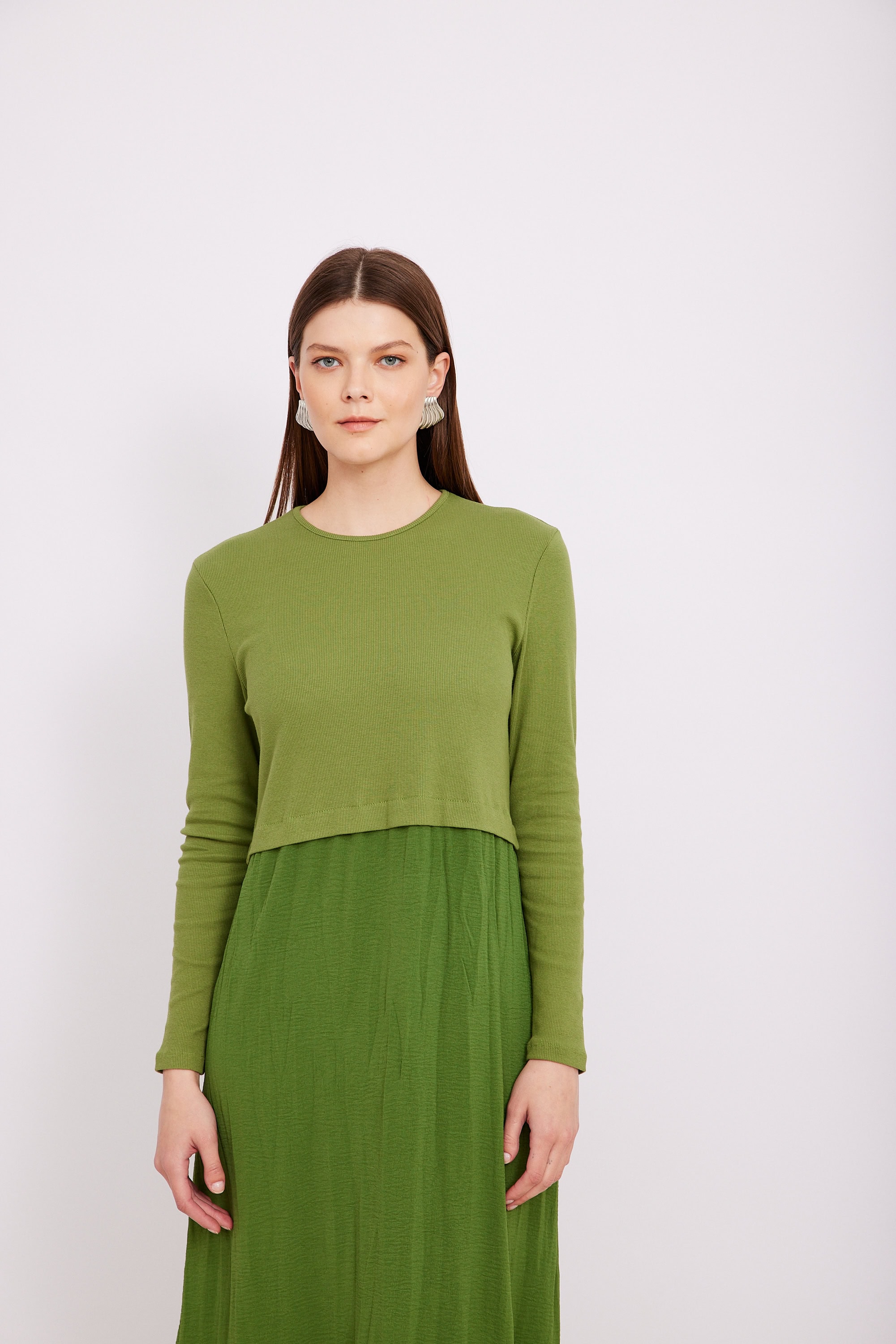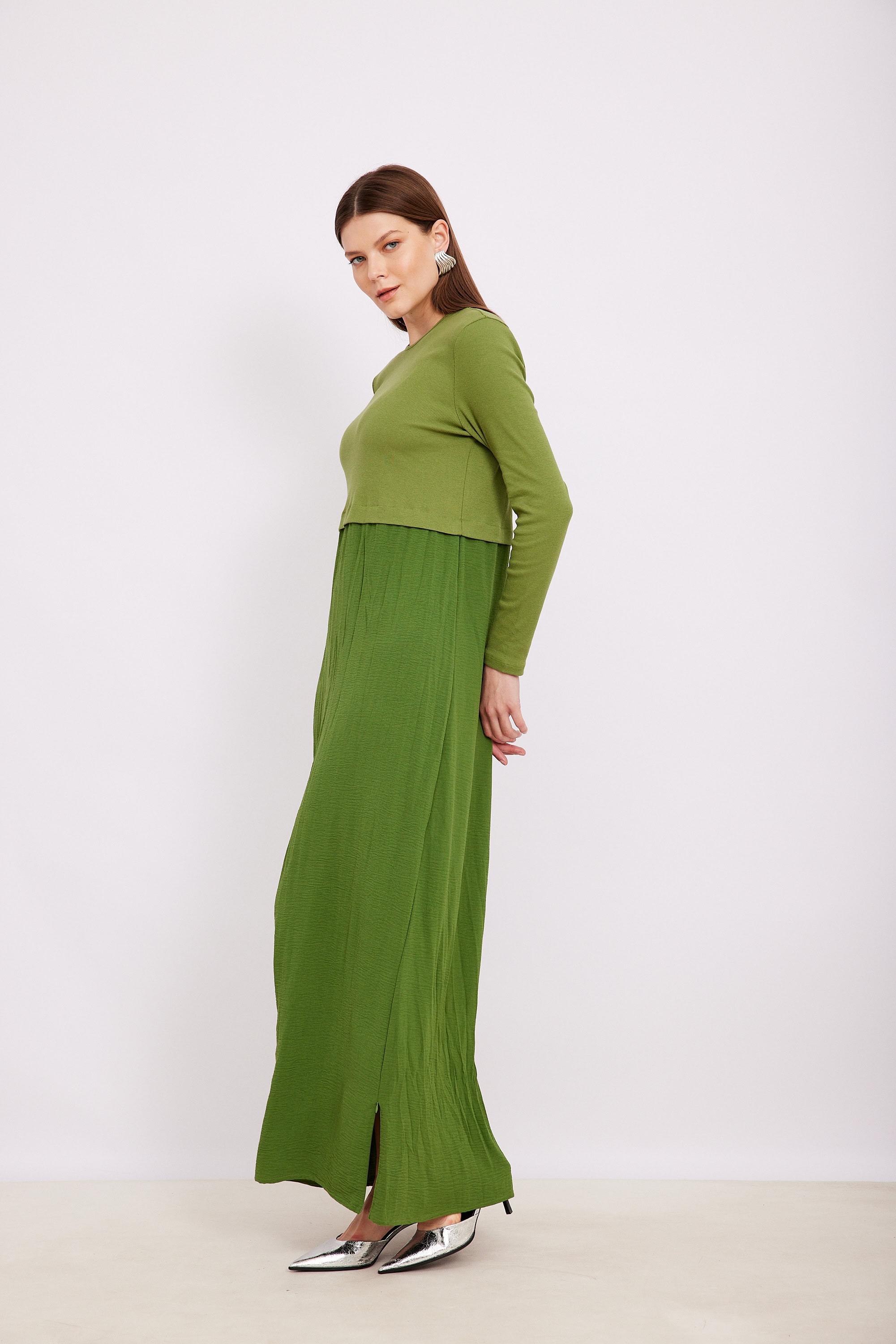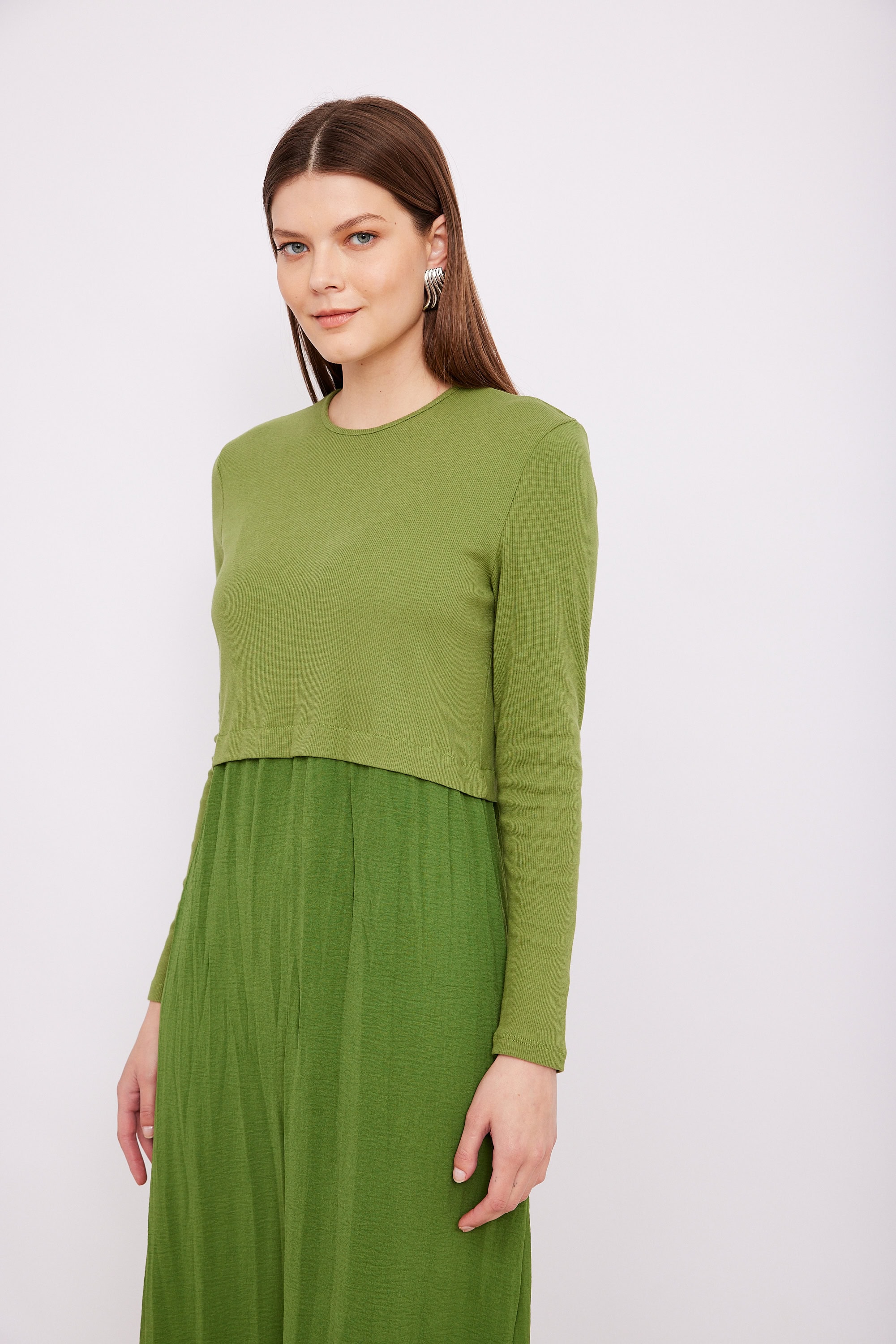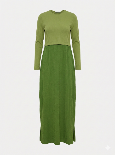 שמלת שילוב ריב חתך ירוקה
