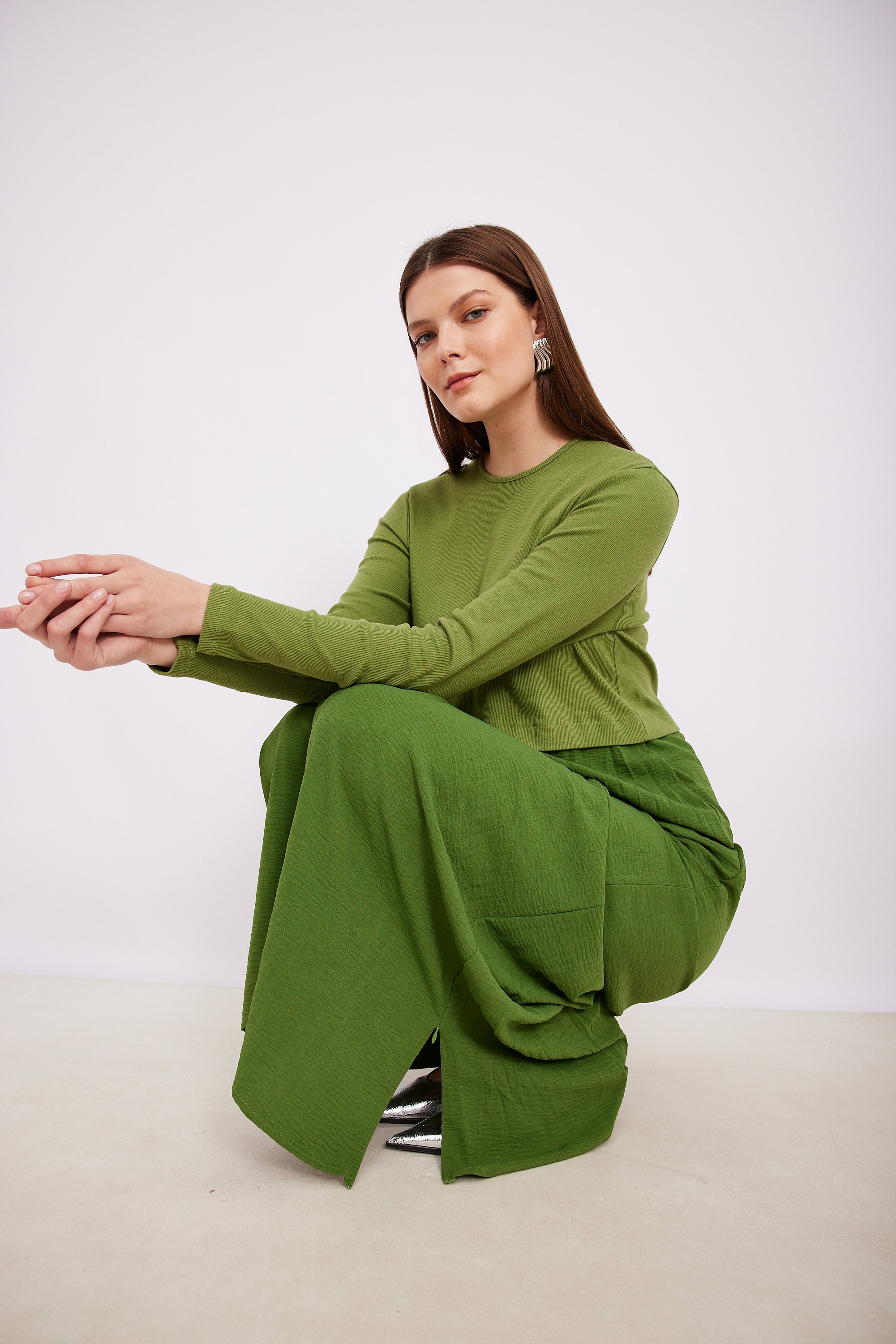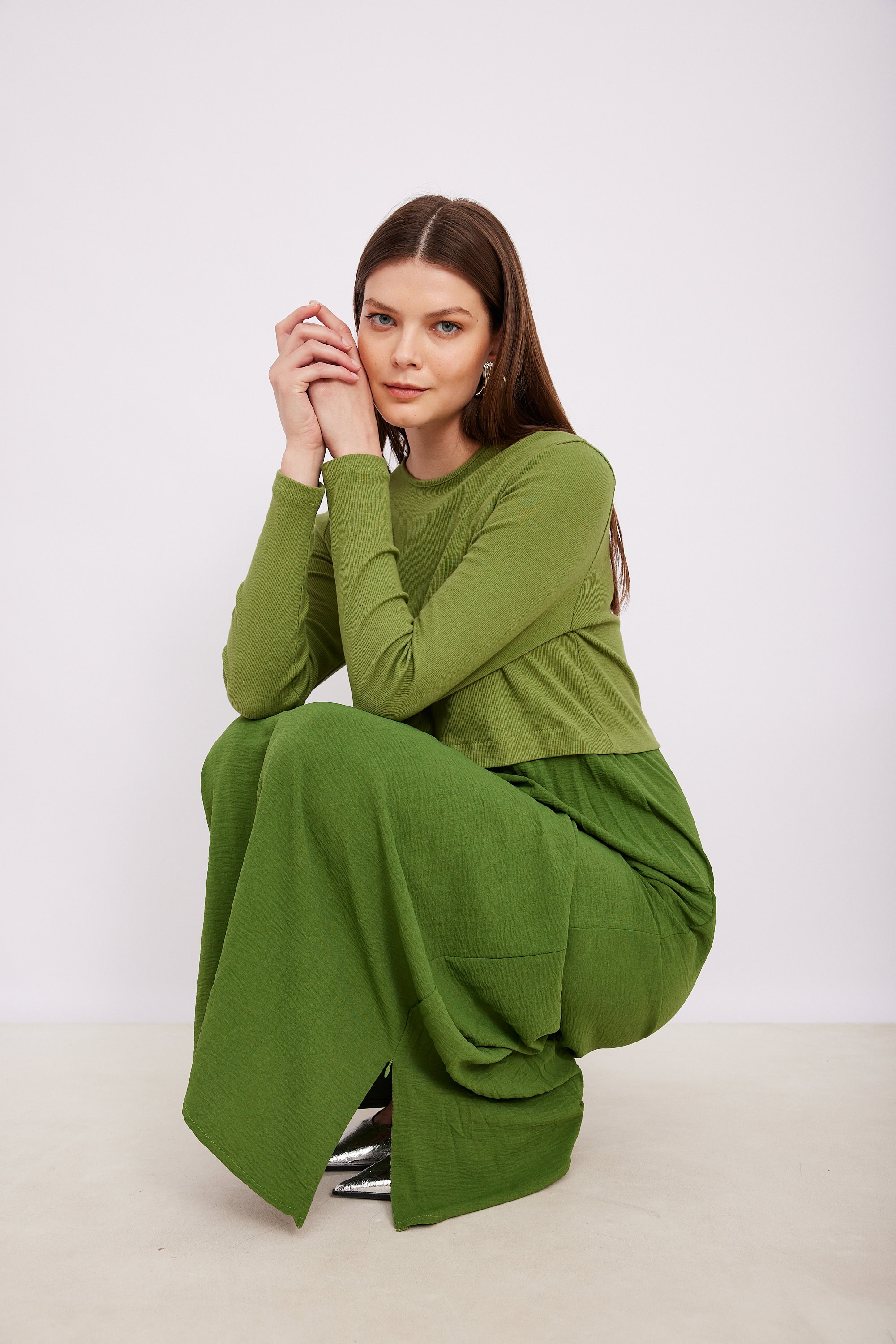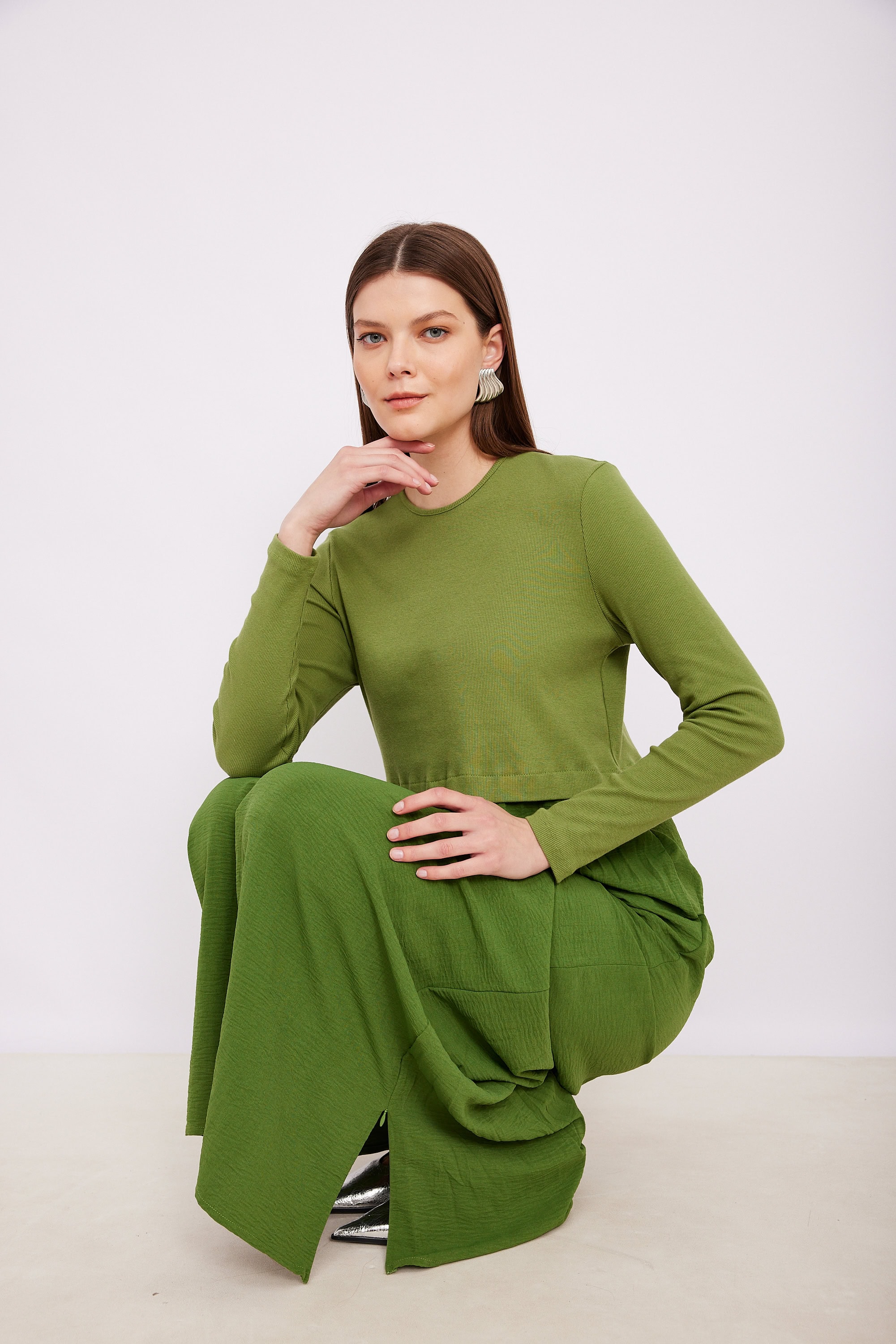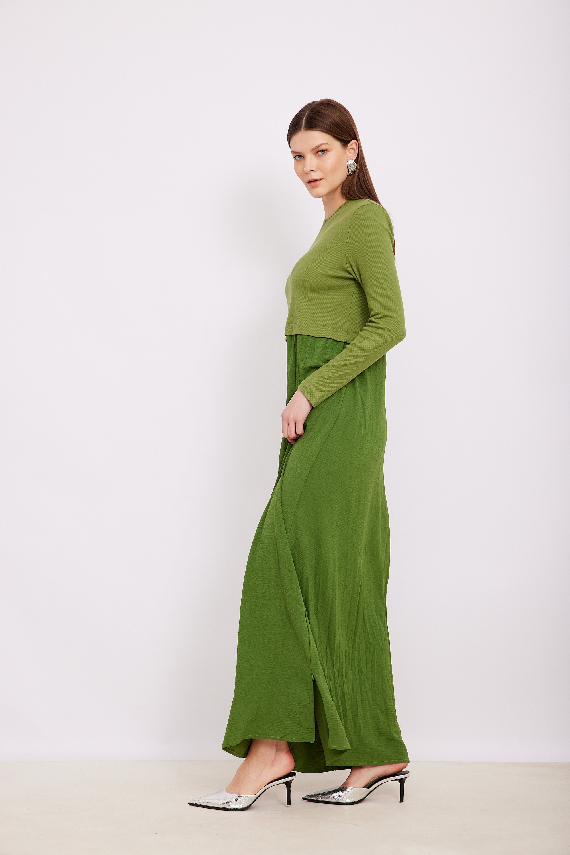 שמלת שילוב ריב חתך ירוקה
