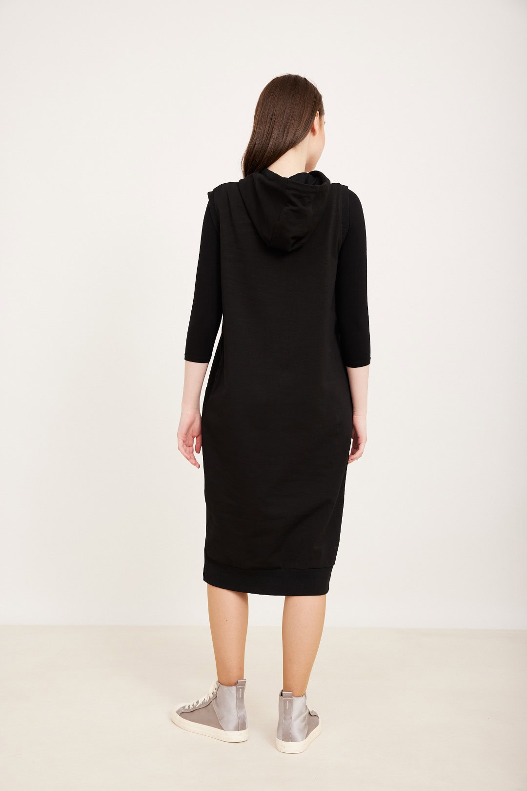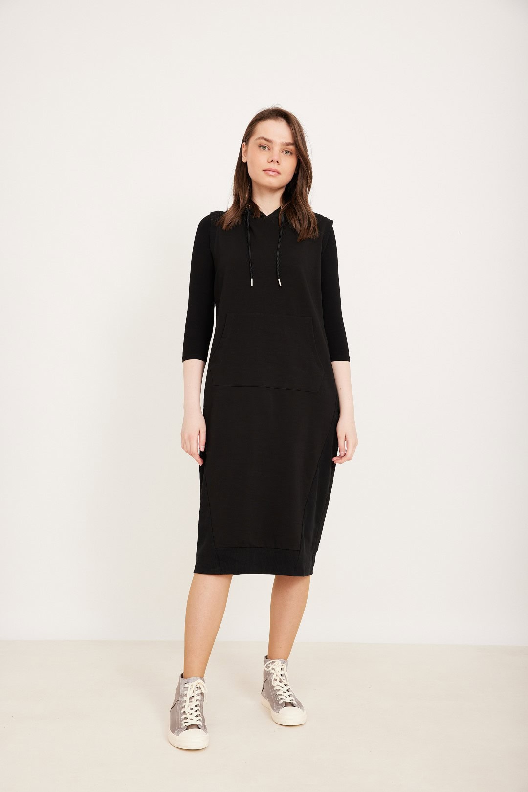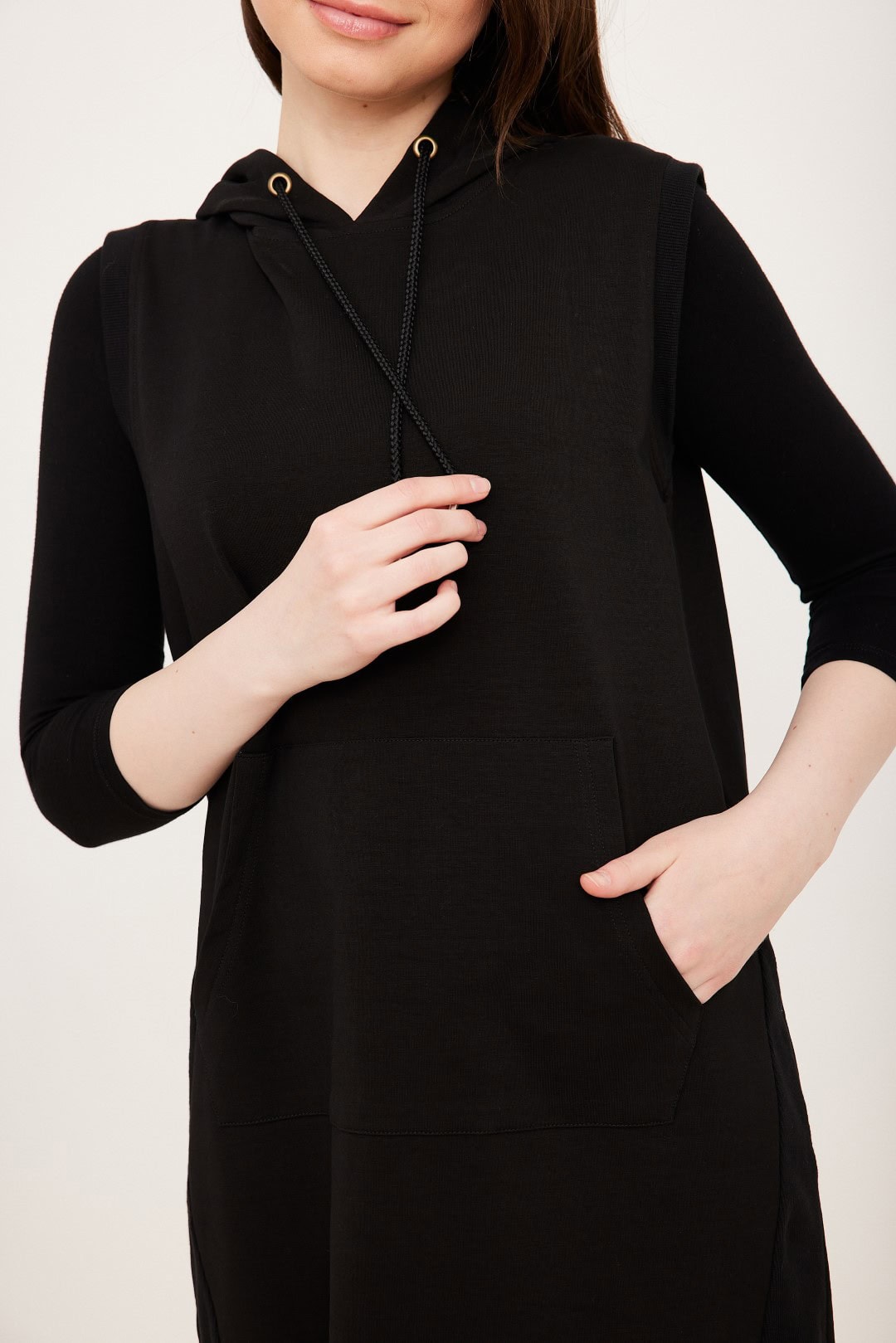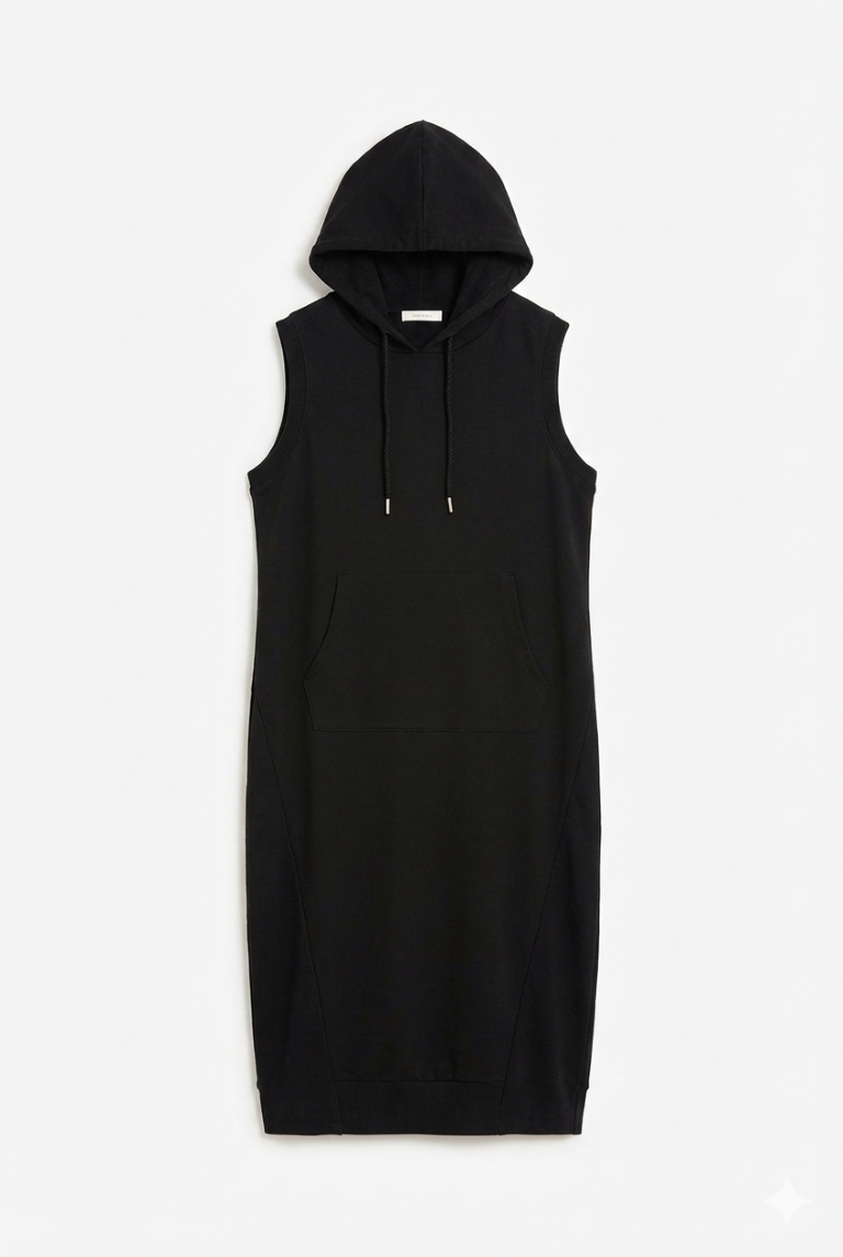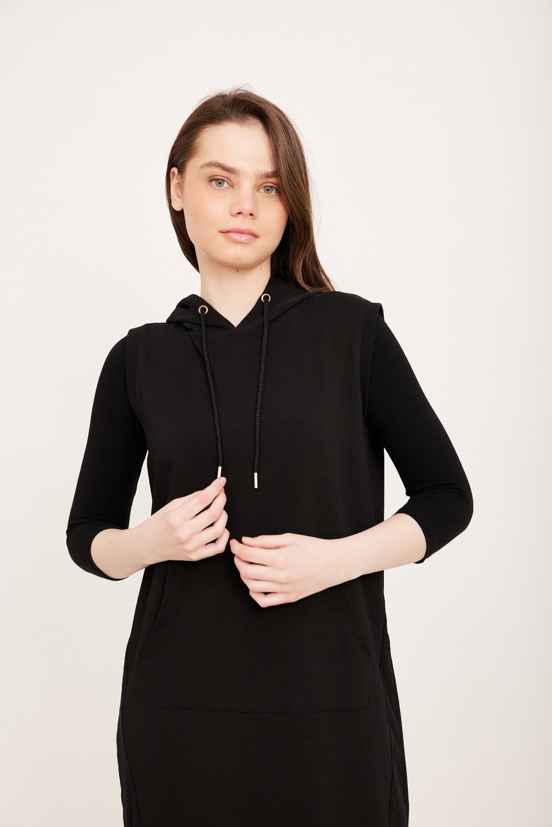אפודה ארוכה עם כיס קנגורו וקפוצ’ון