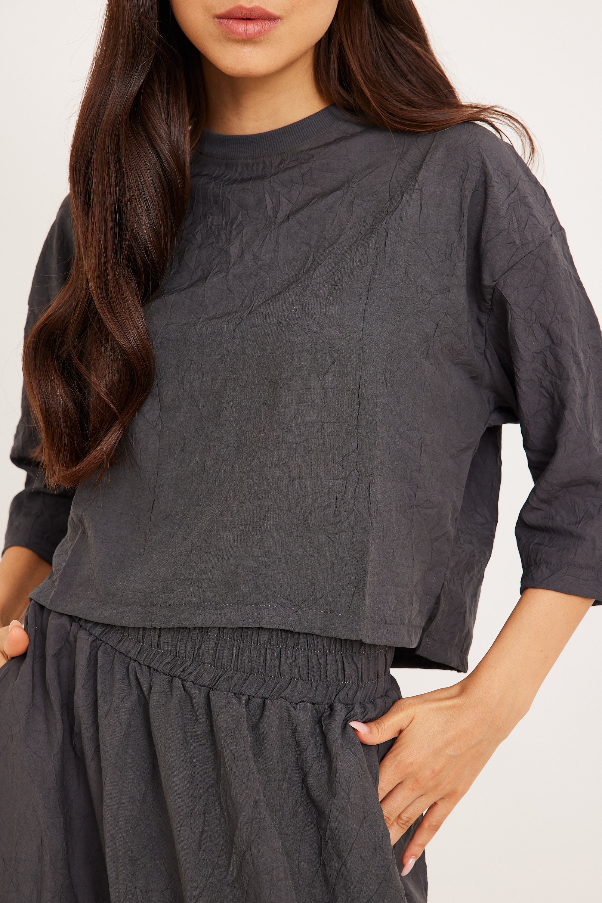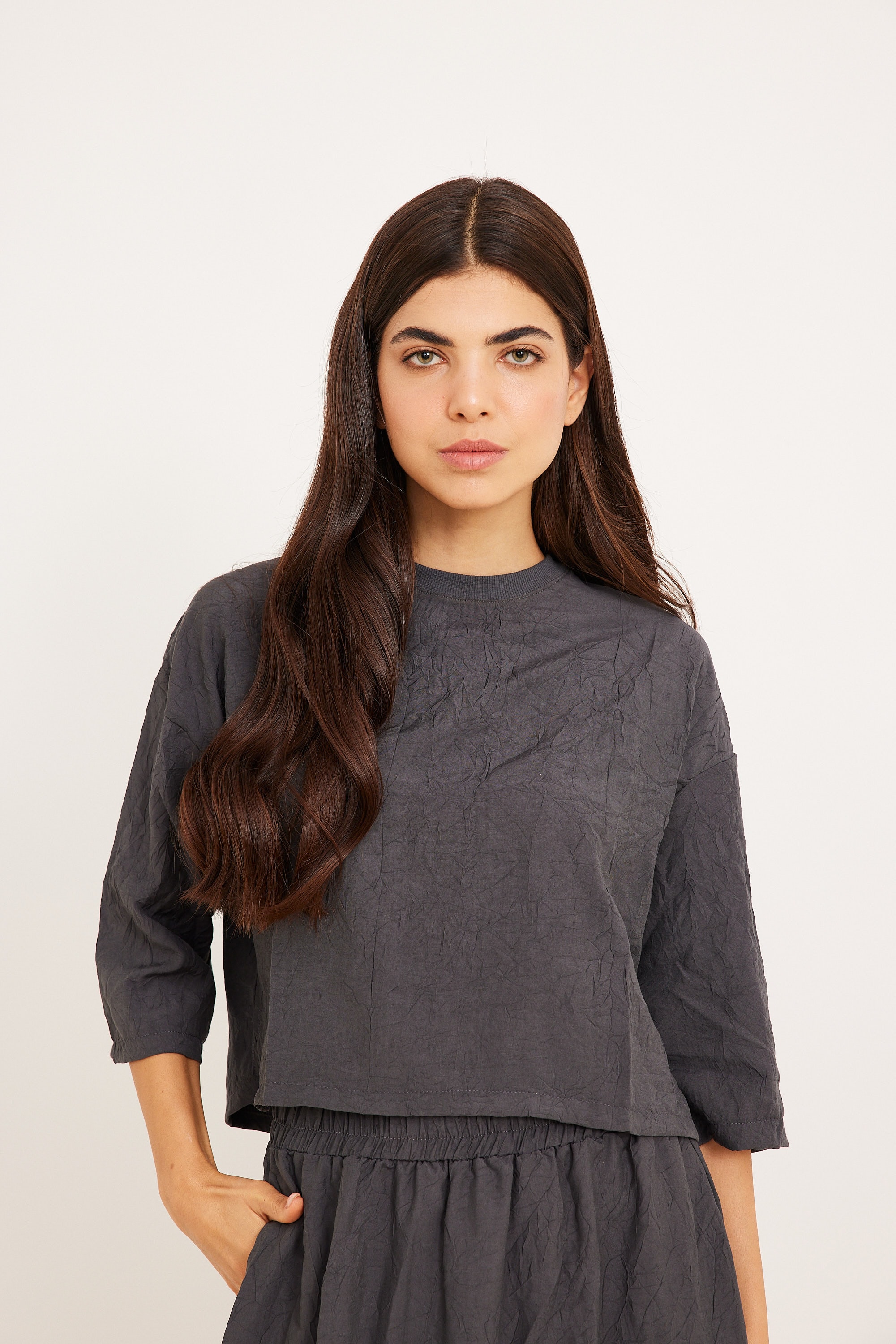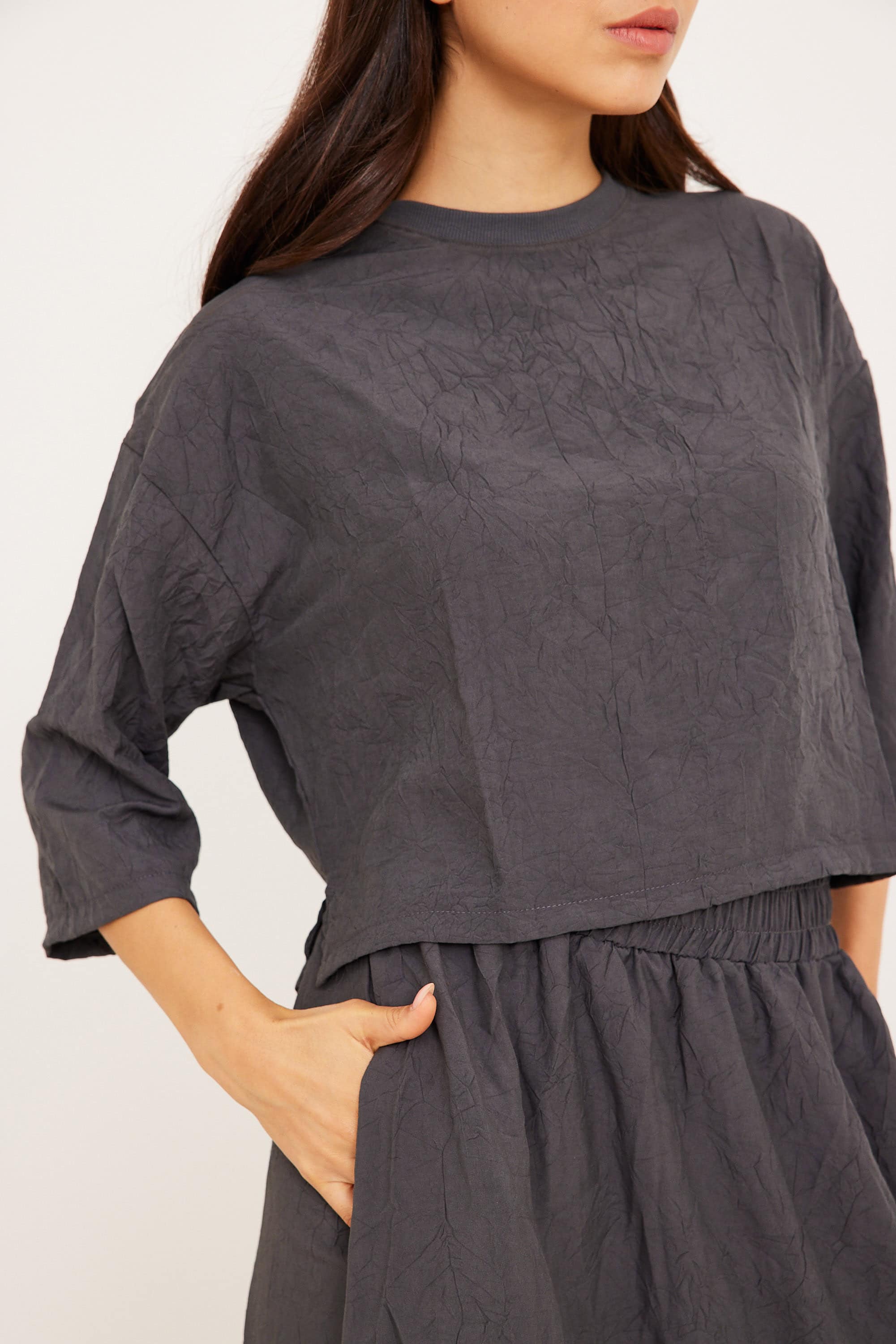 חולצה מקומטת אפורה