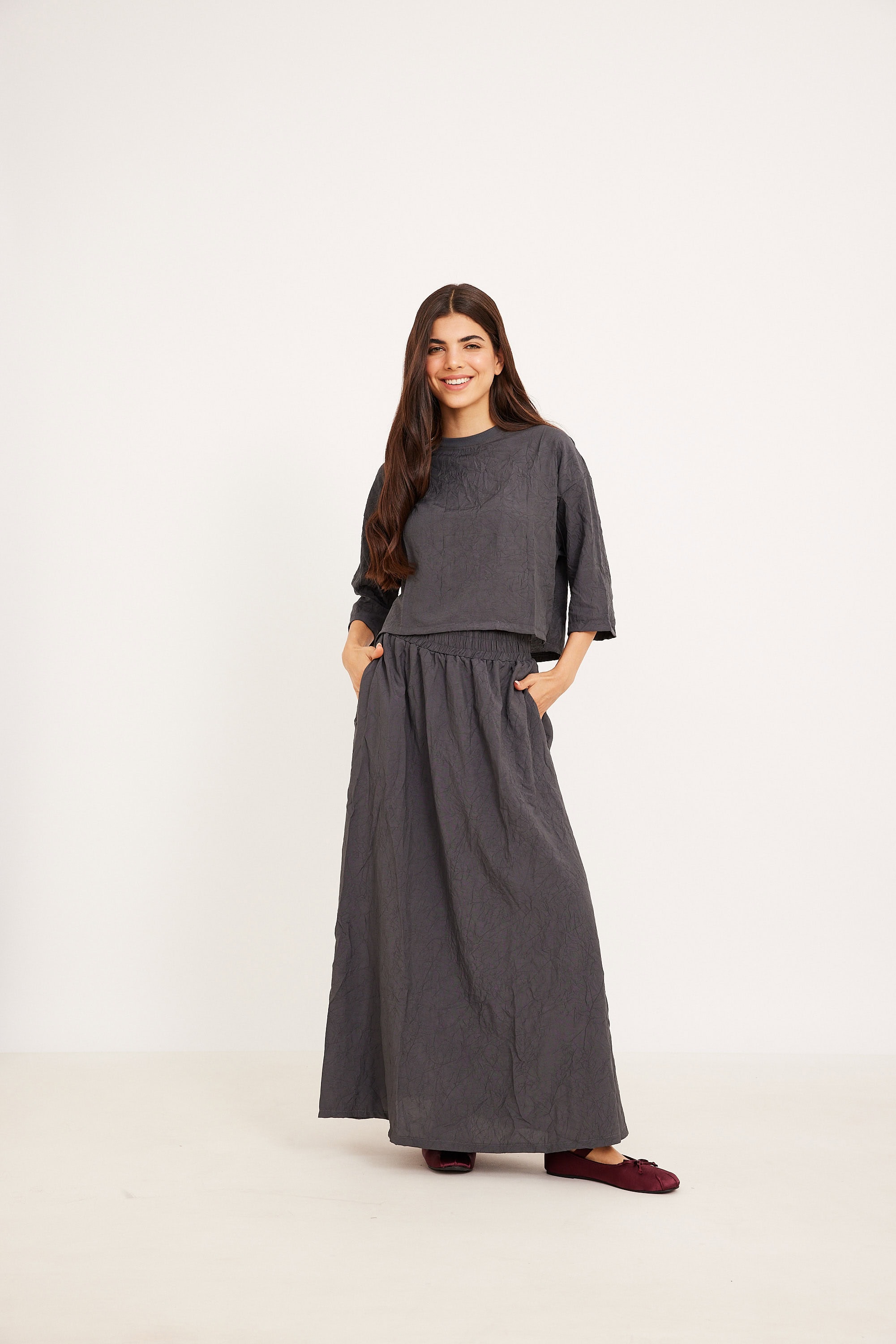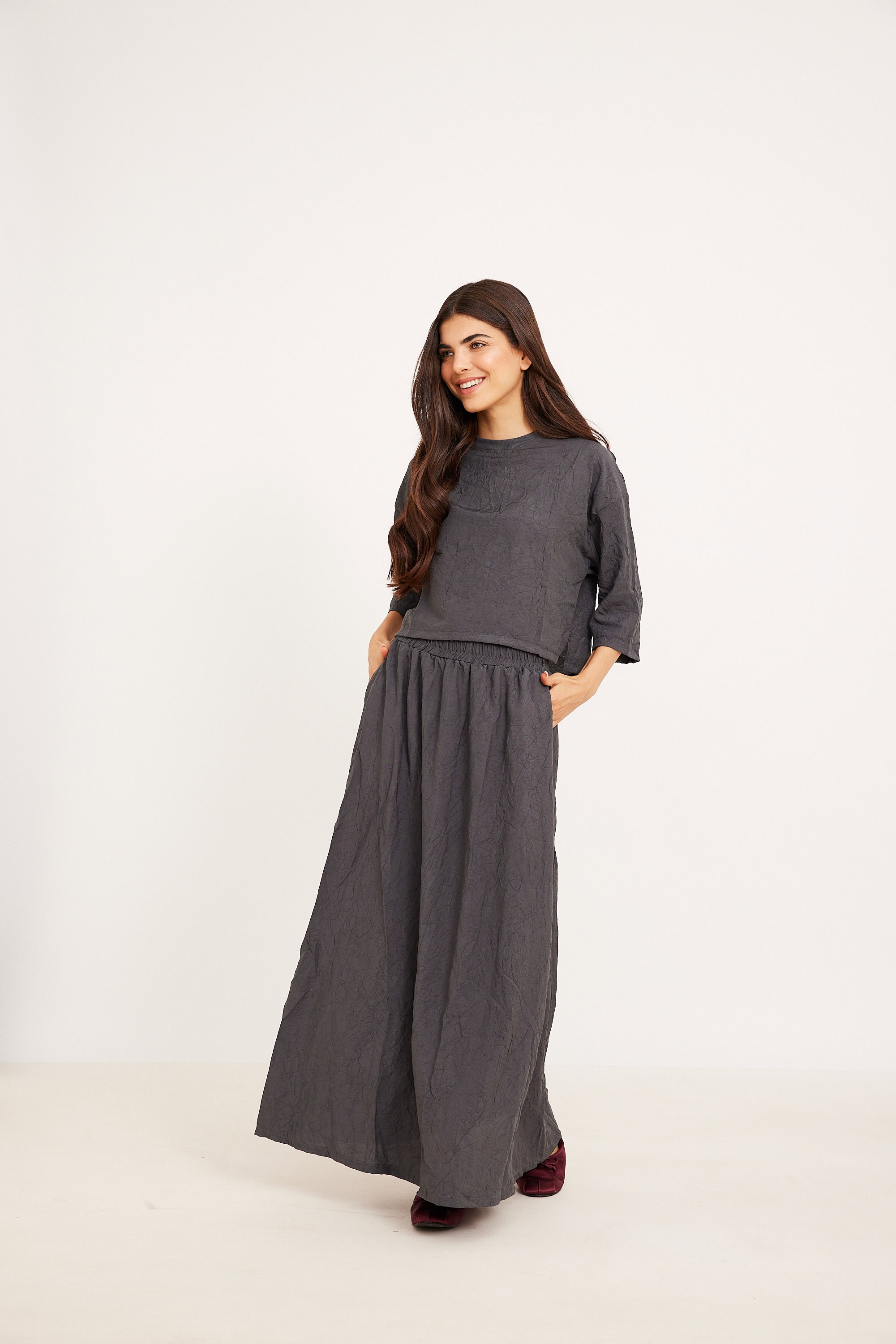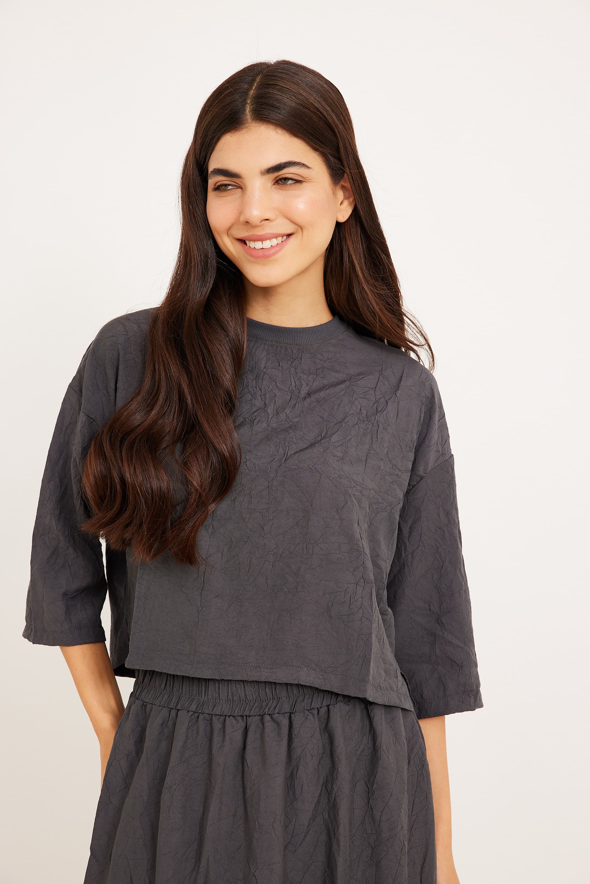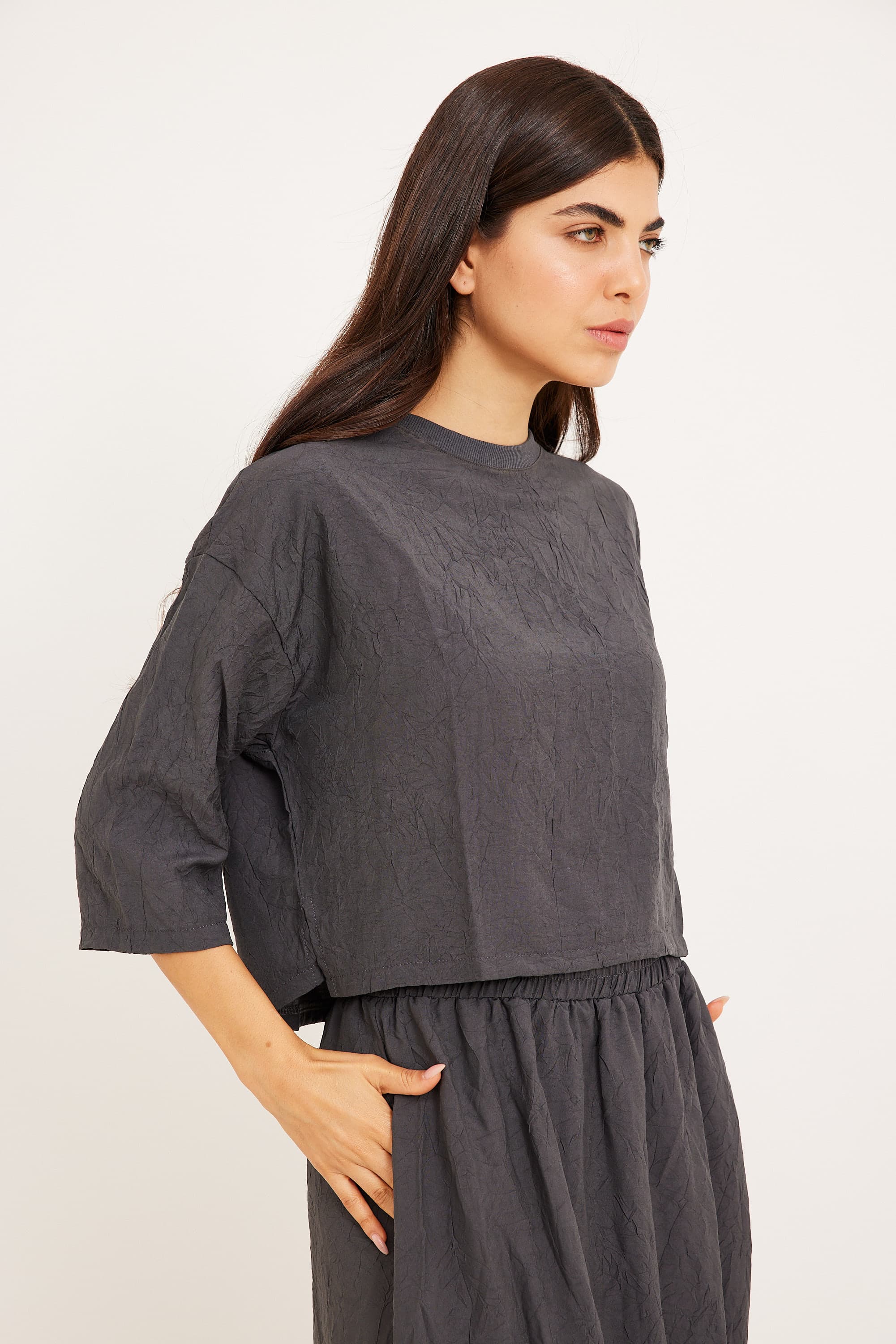 חולצה מקומטת אפורה