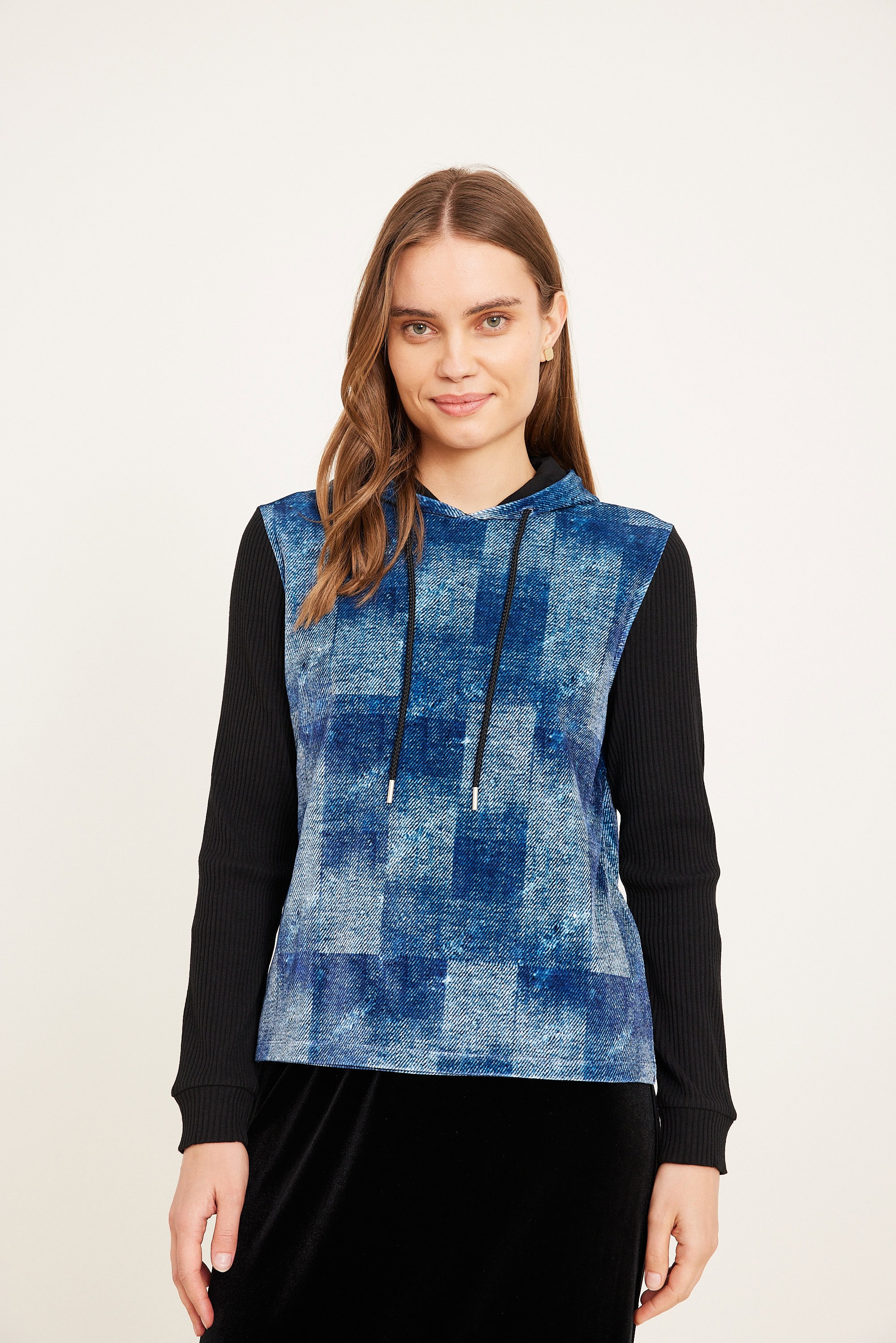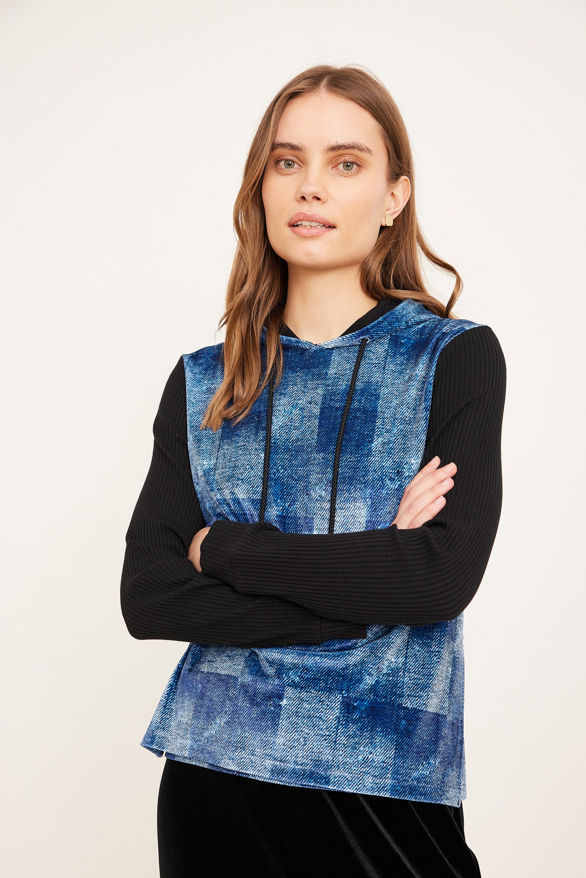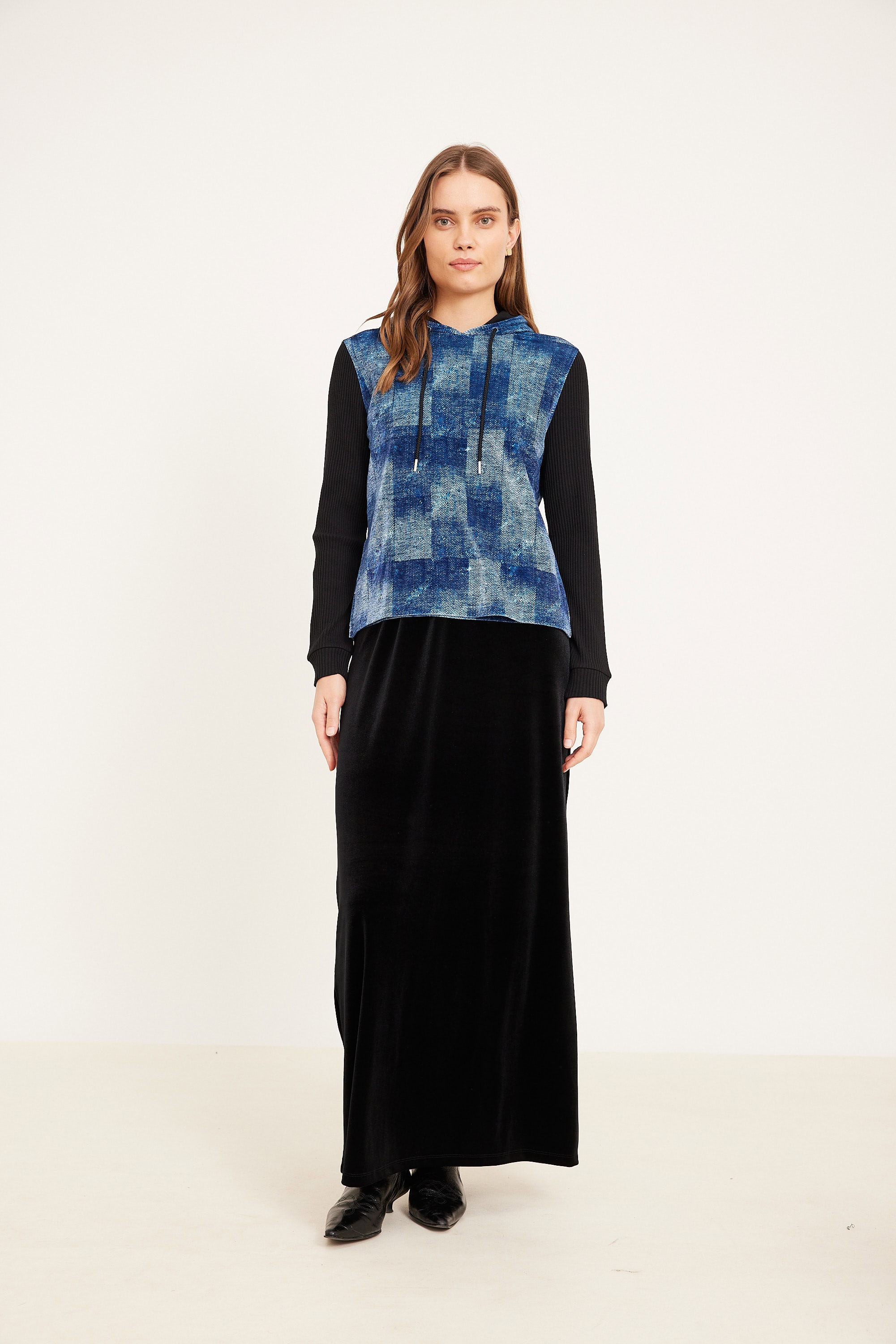 חולצת הנקה עם קפוצ’ון בד קטיפה שרוולי ריבס