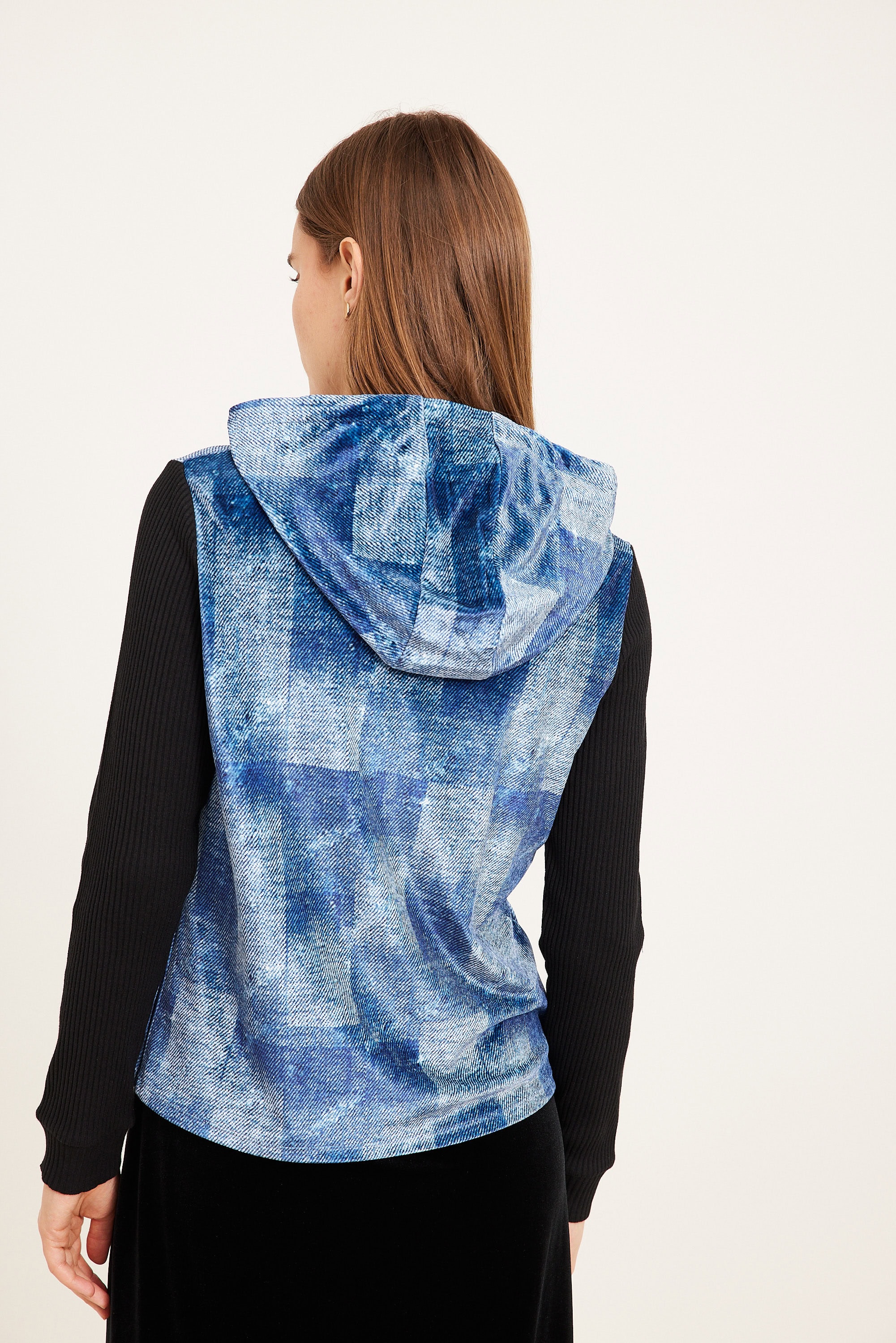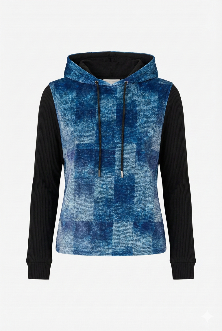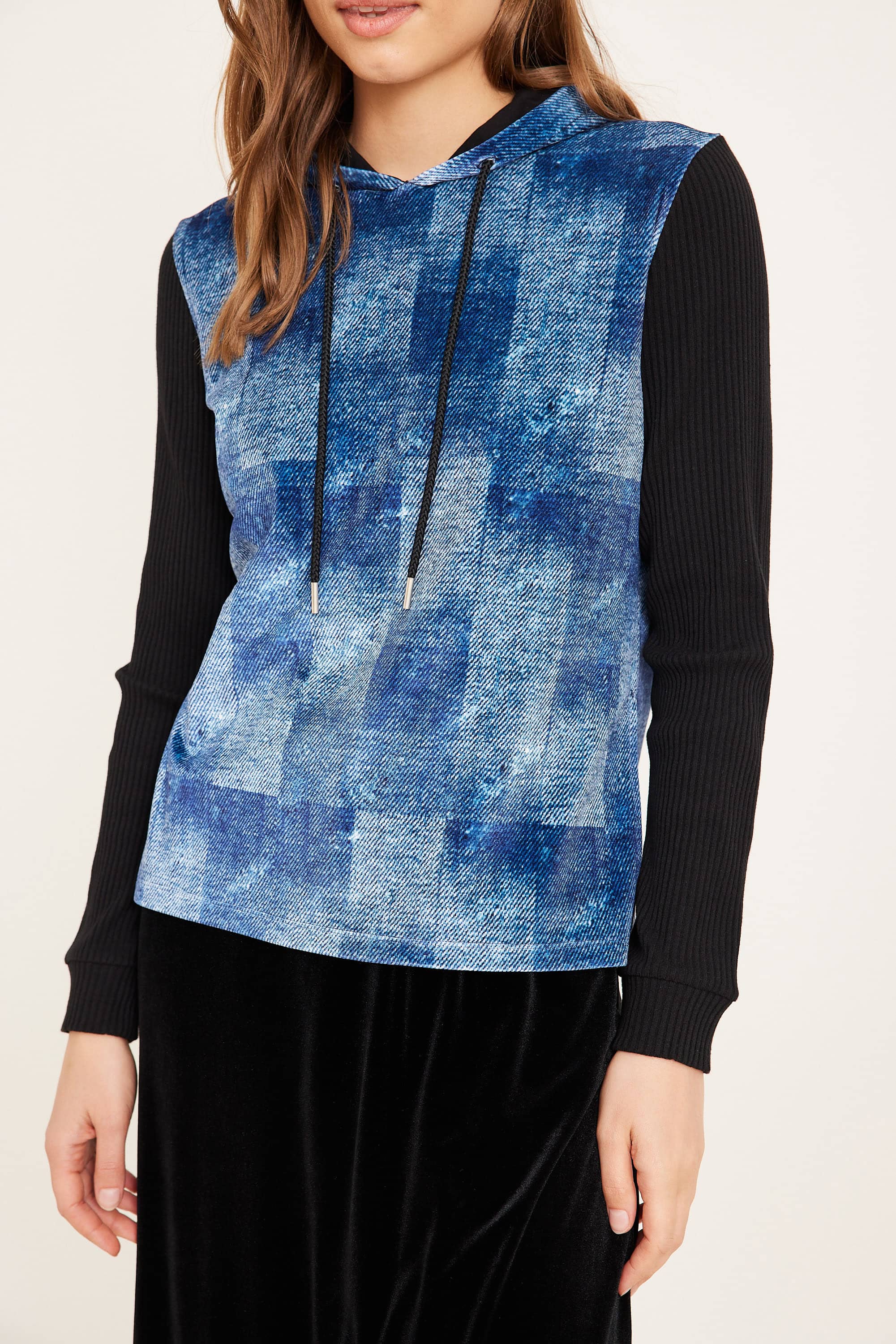 חולצת הנקה עם קפוצ’ון בד קטיפה שרוולי ריבס