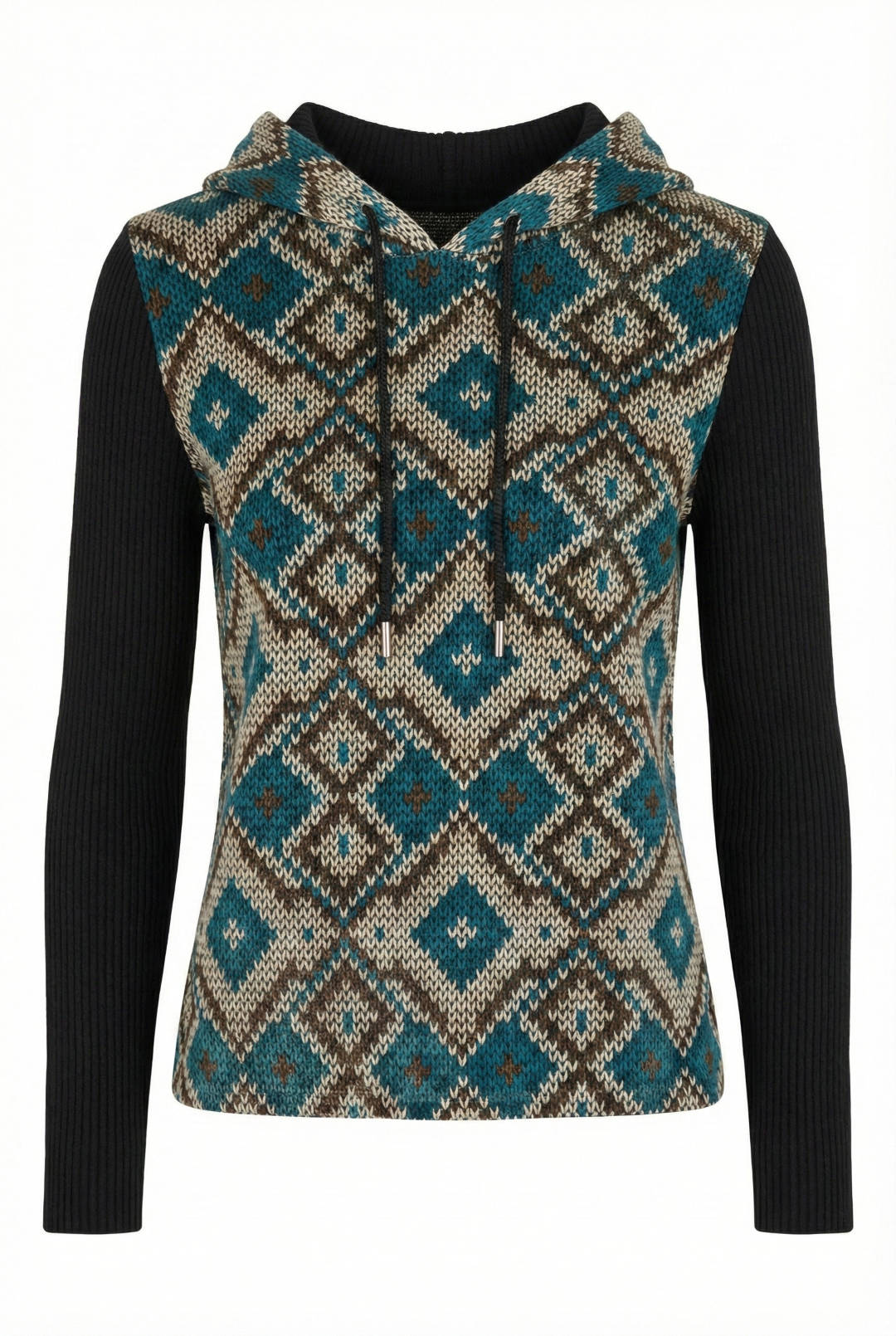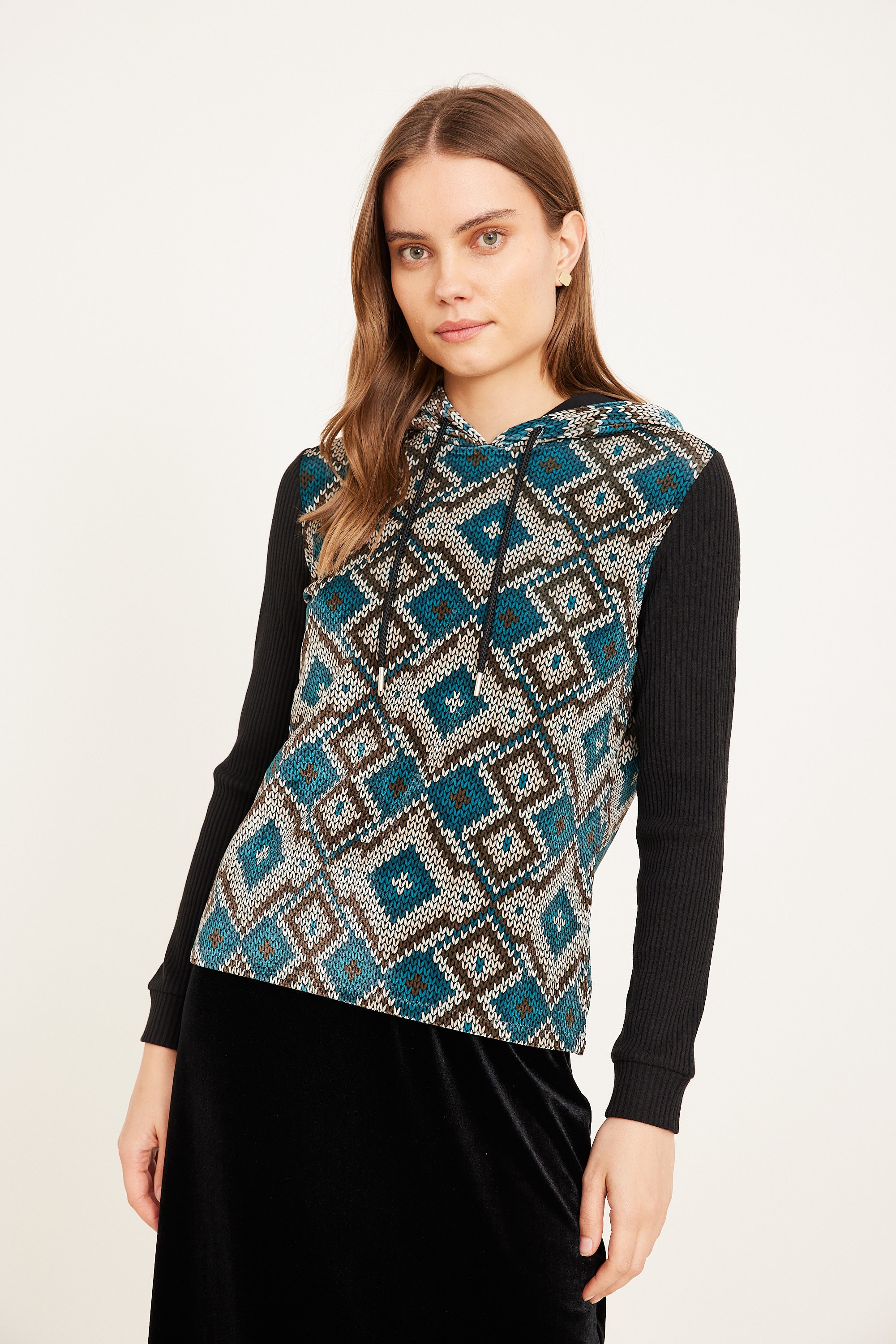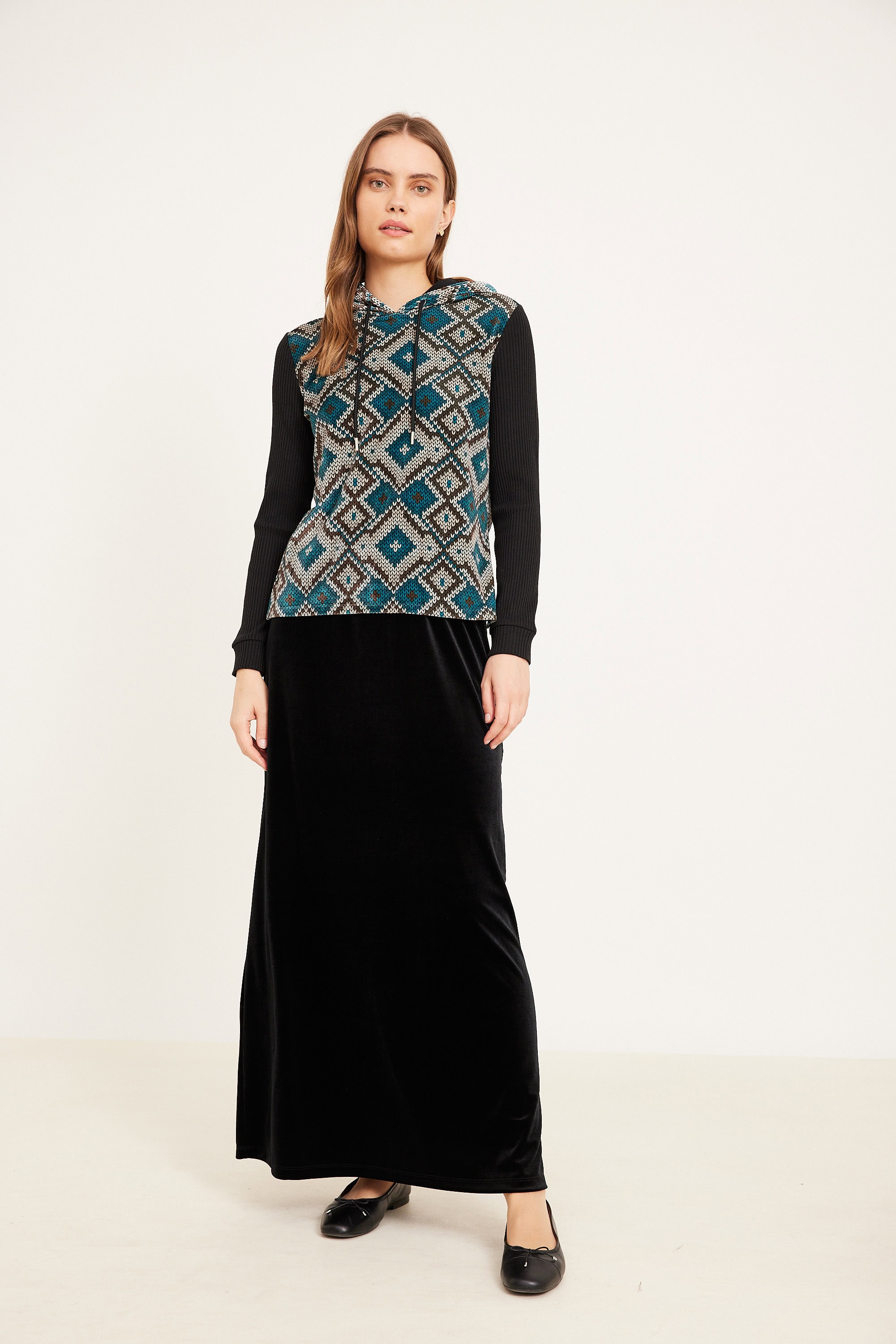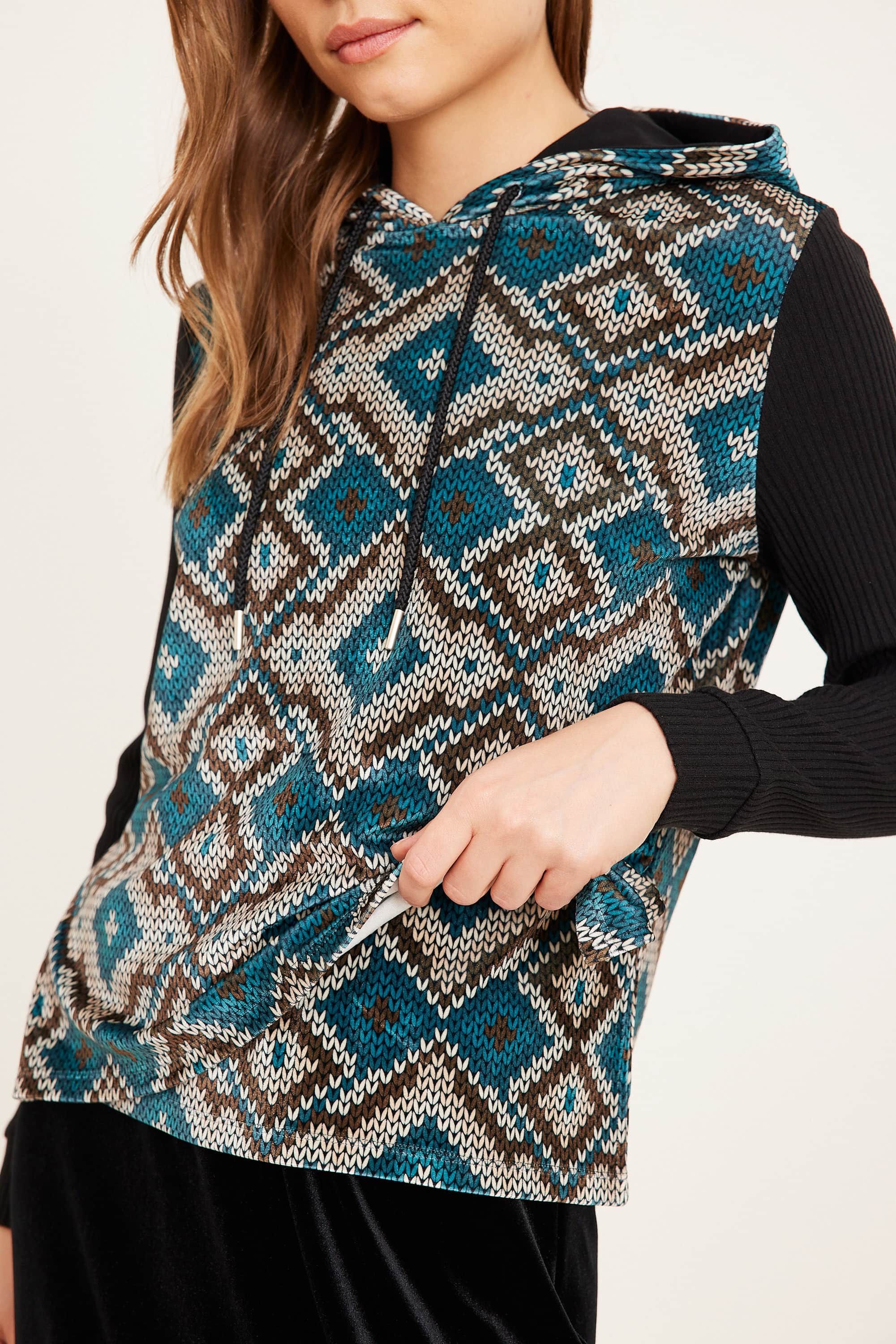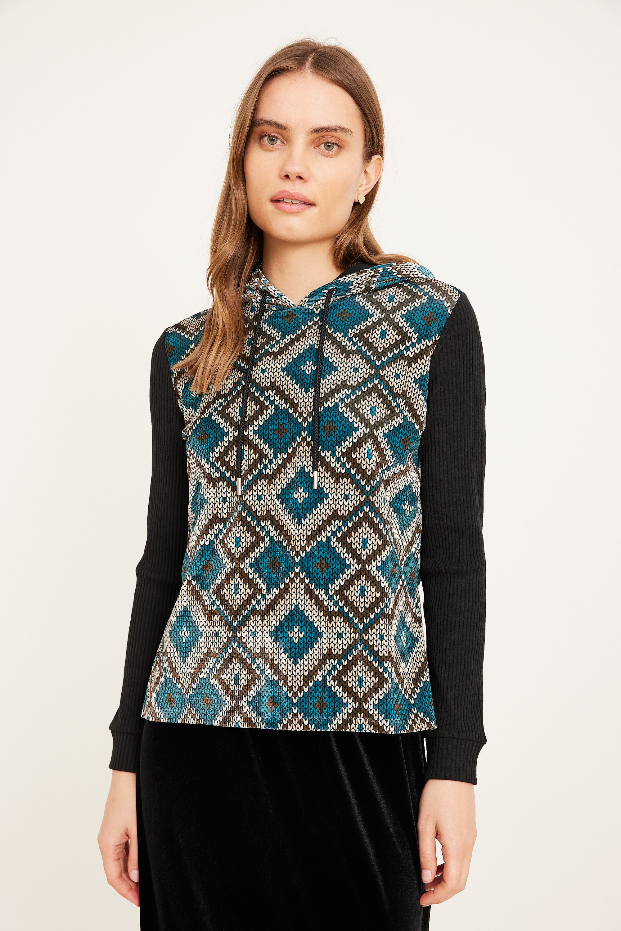 חולצת הנקה עם קפוצ’ון בד קטיפה שרוולי ריבס