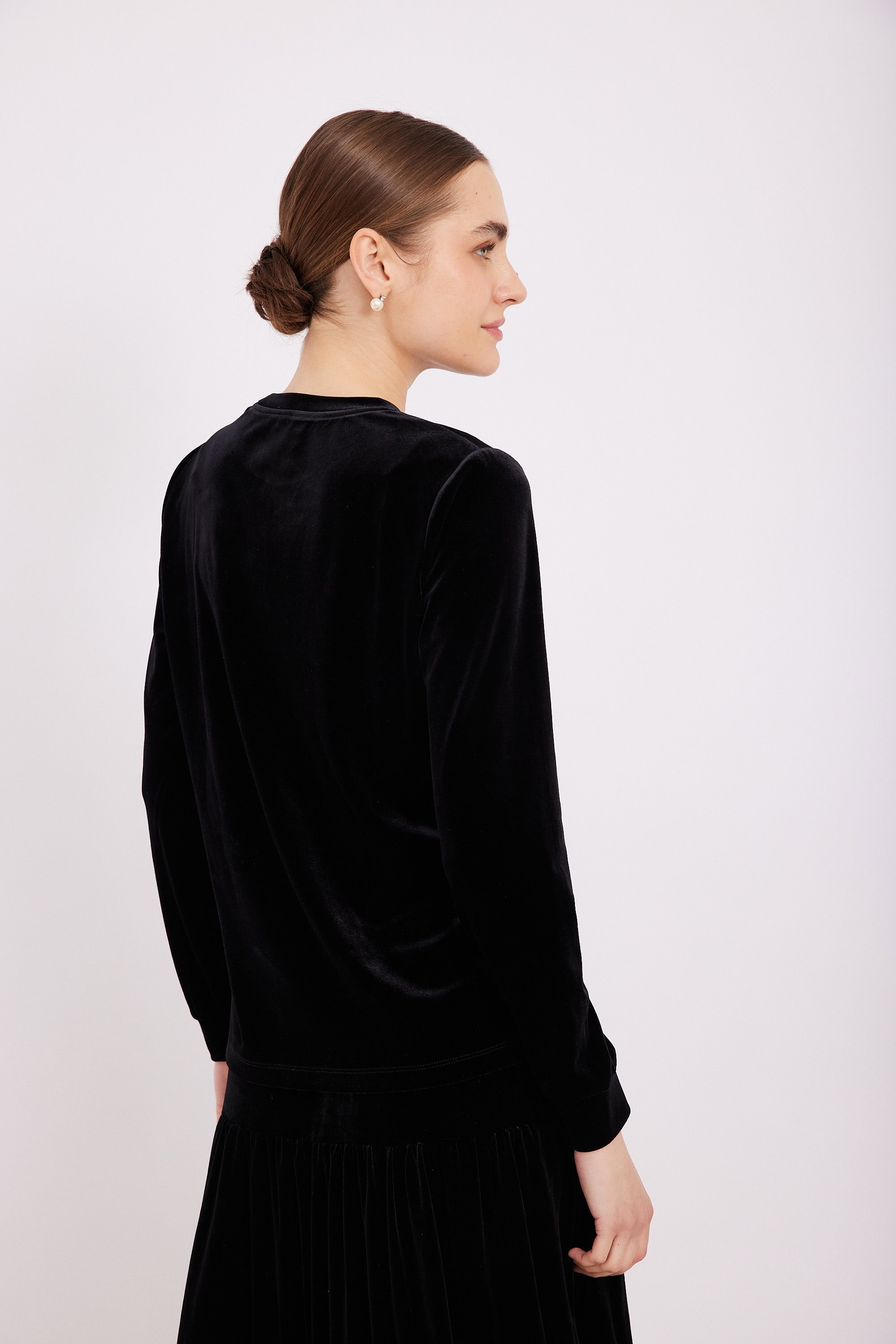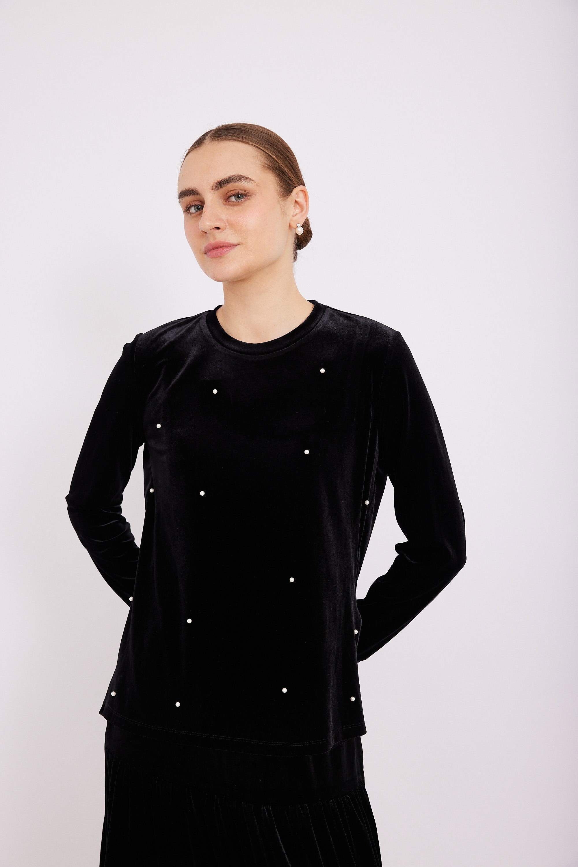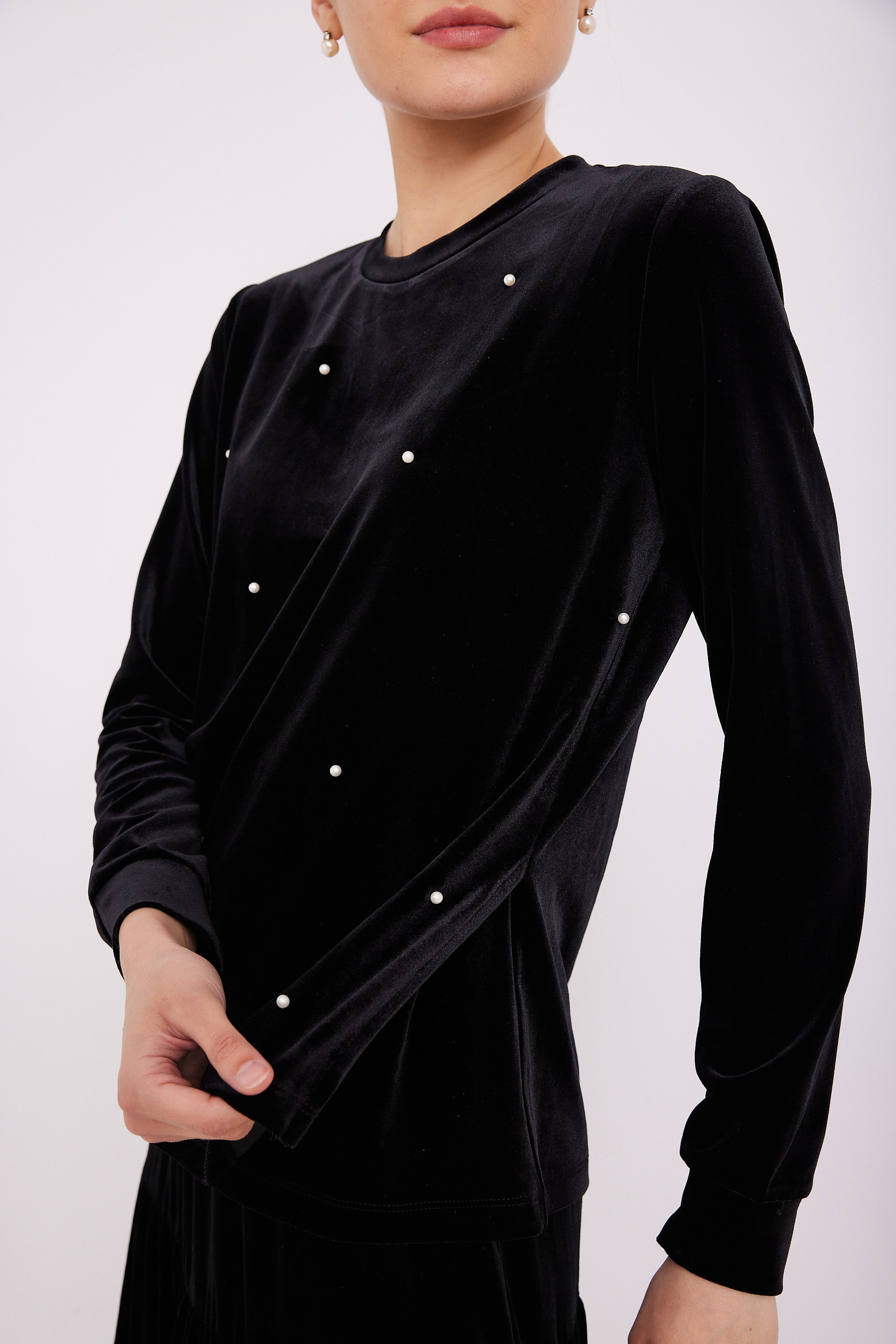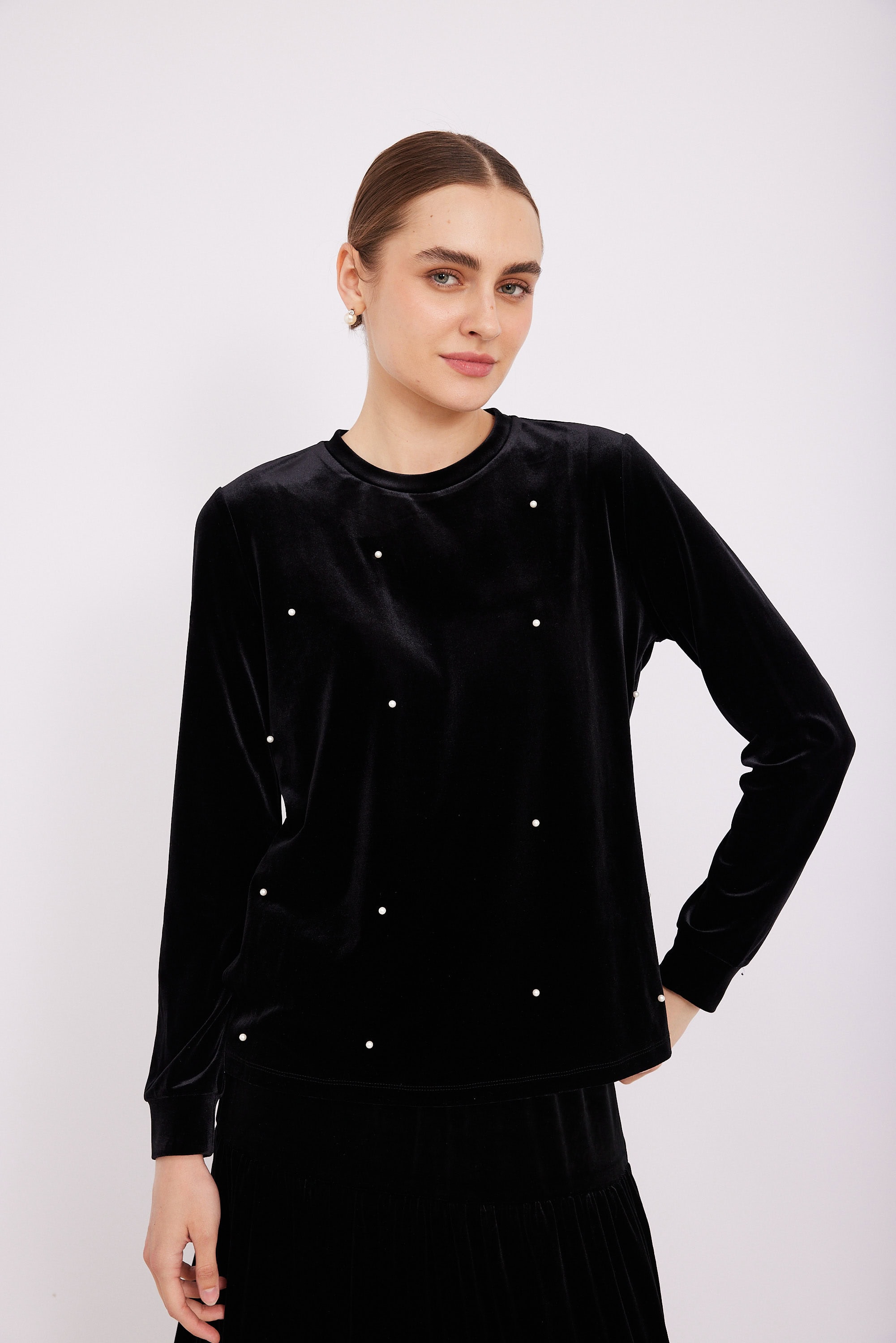 חולצת הנקה אלגנטית מבד קטיפה רך עם עיטורי פנינים עדינים