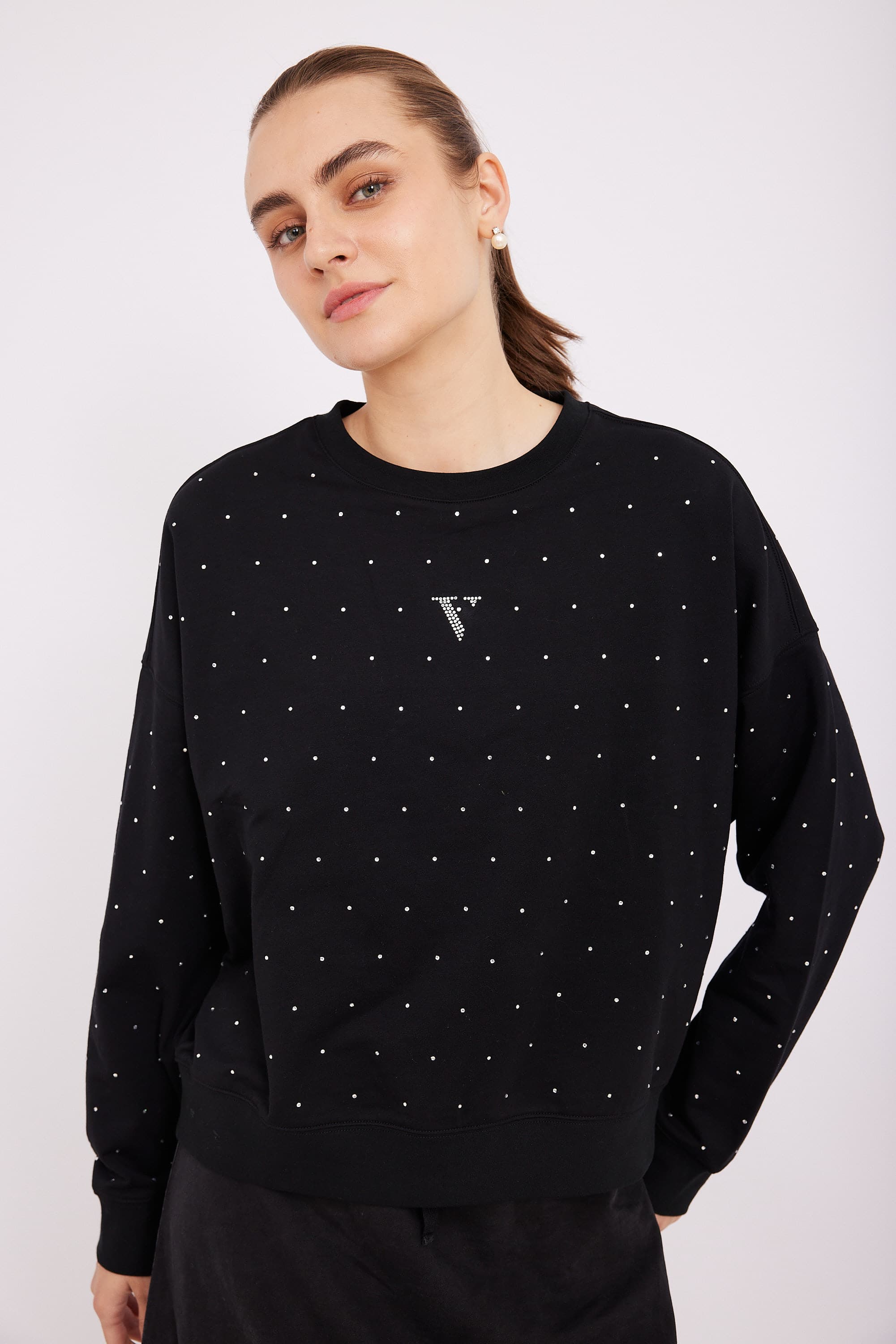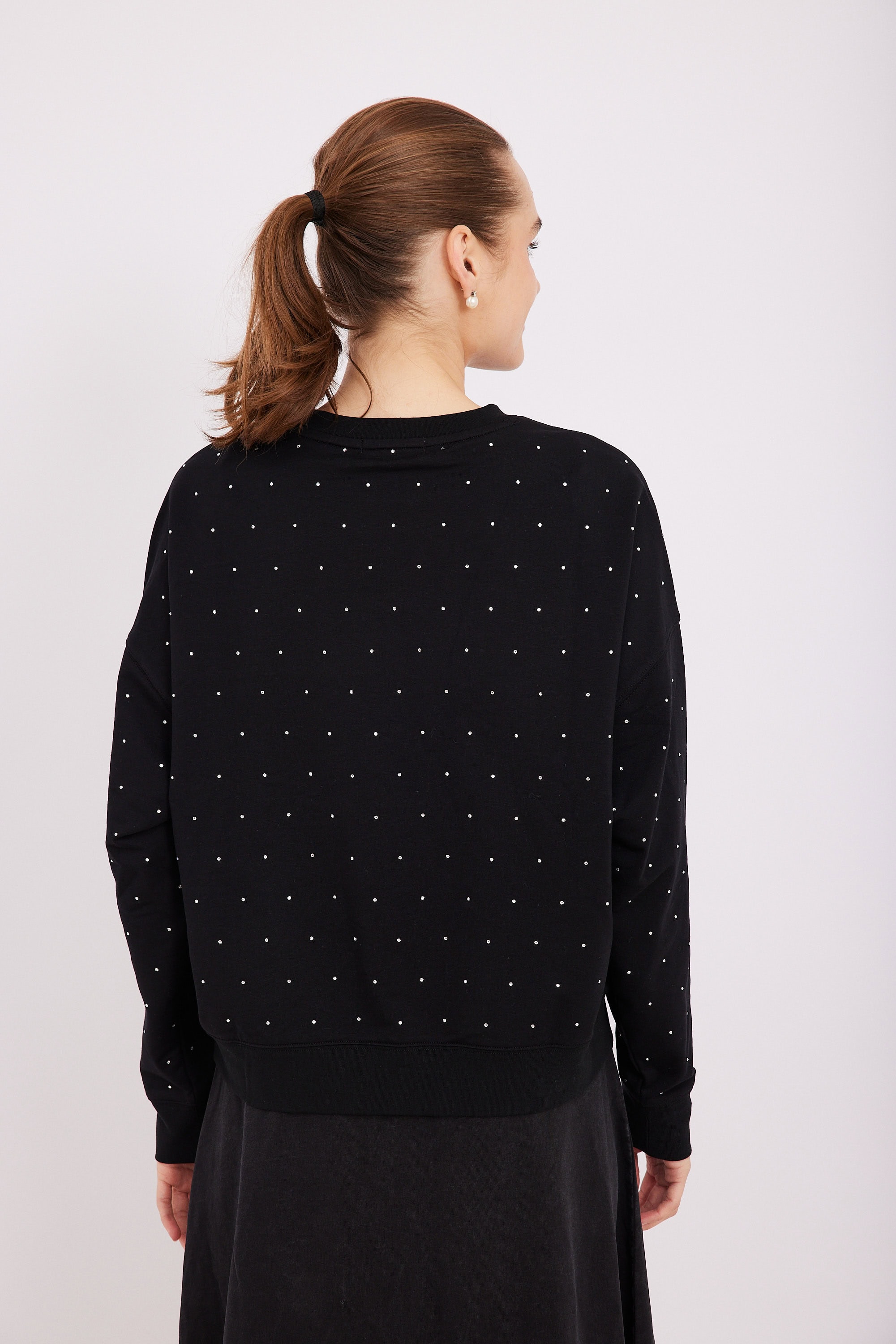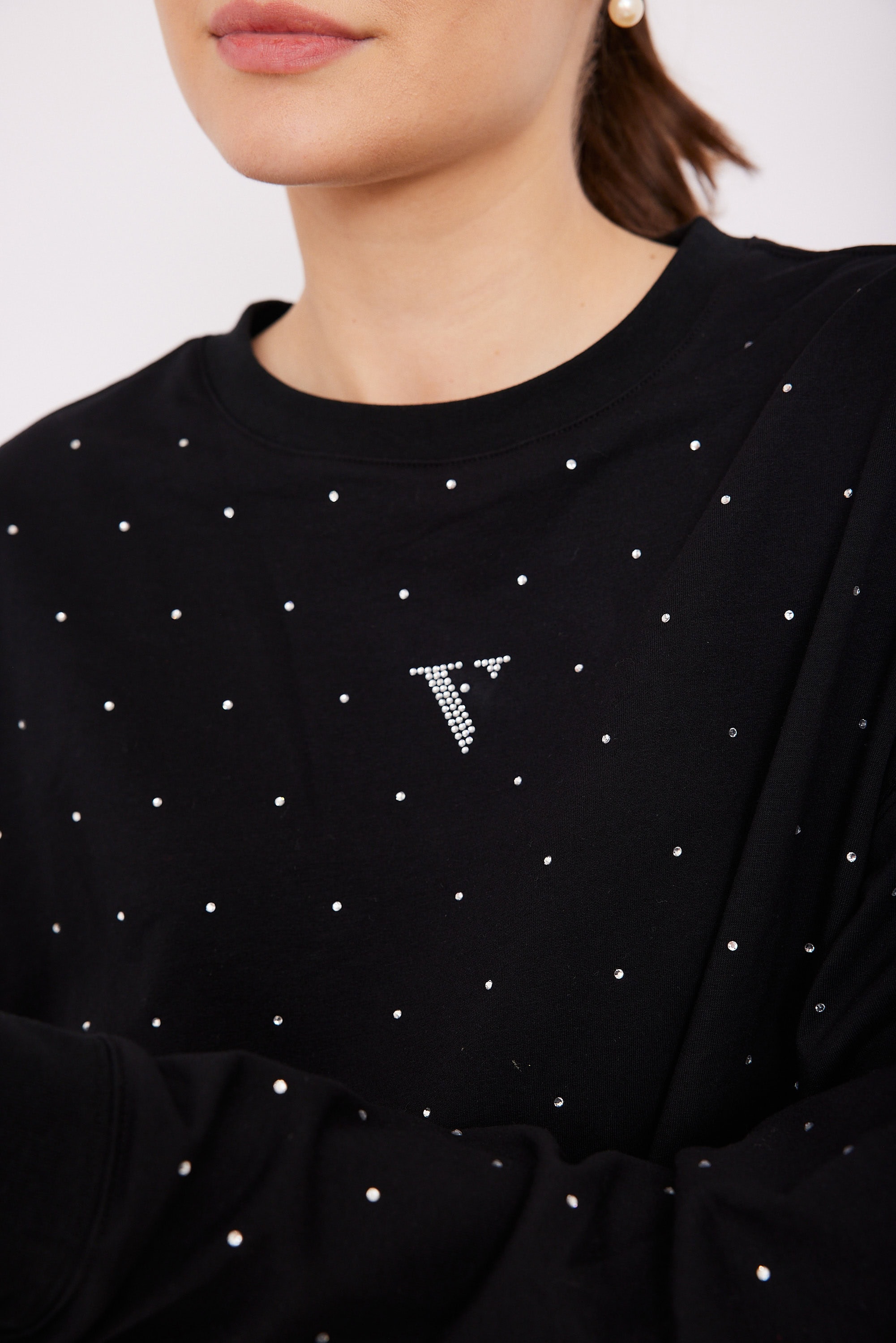חולצה מבד פוטר נח ונעים, עם שילוב אבנים קטנות.