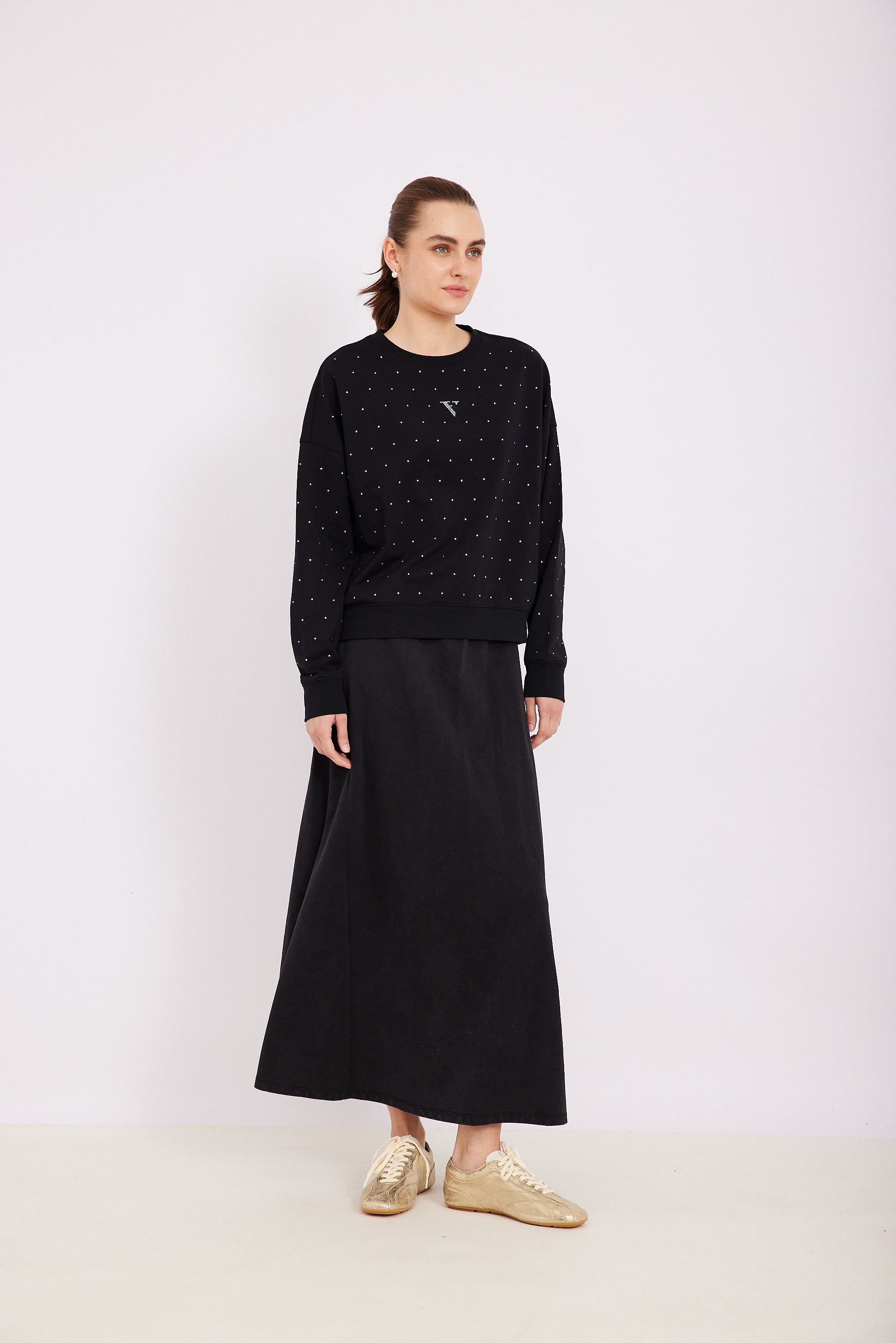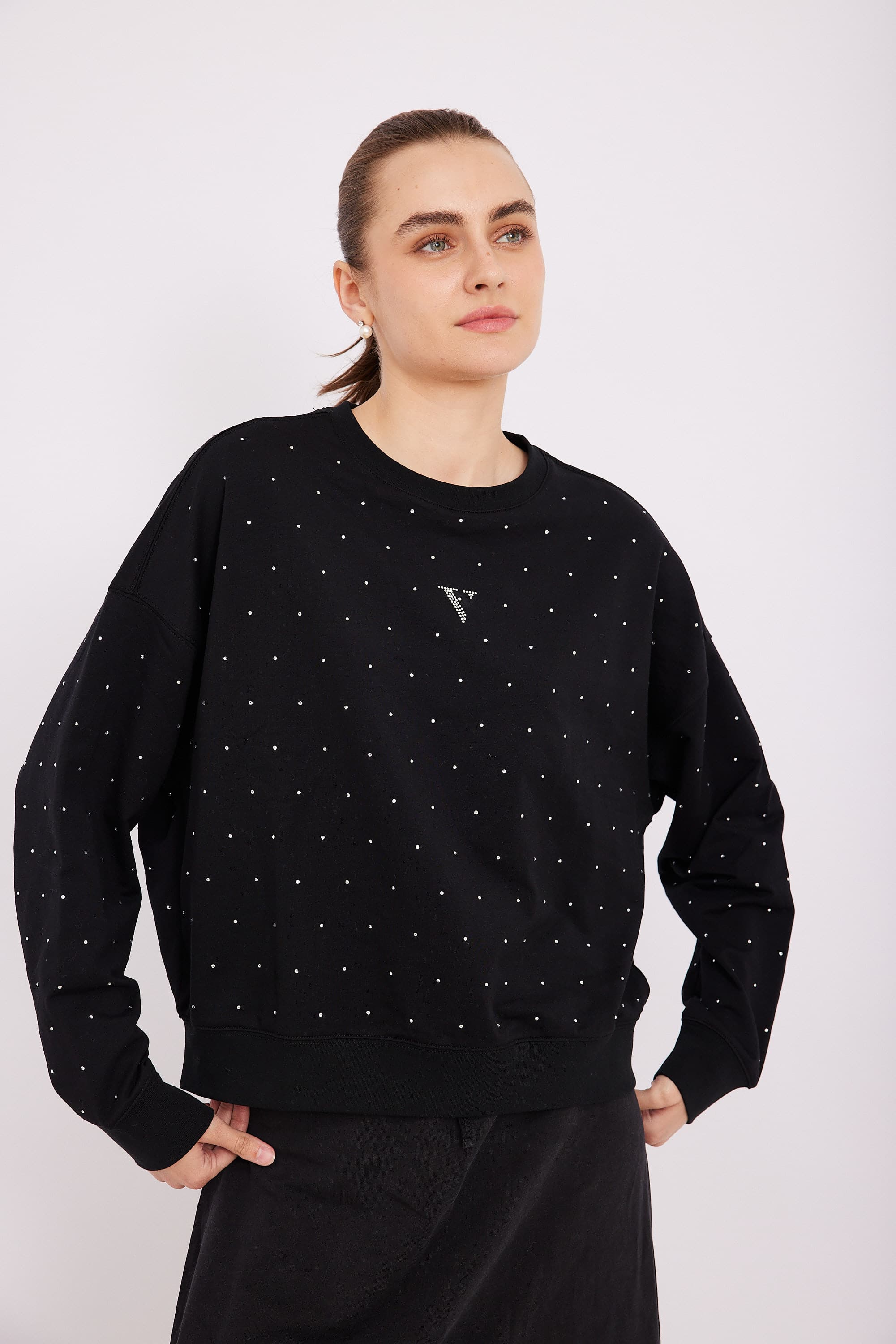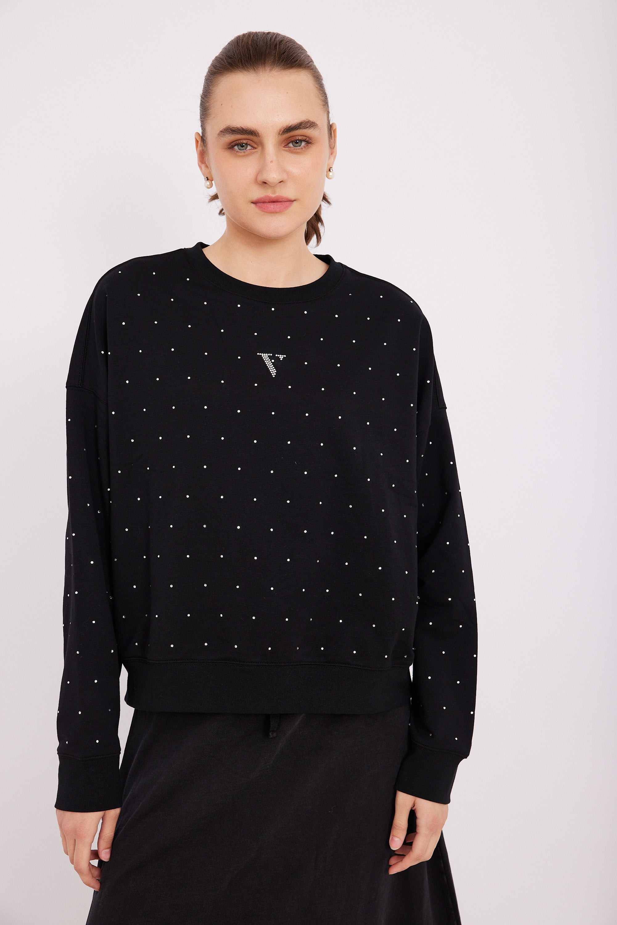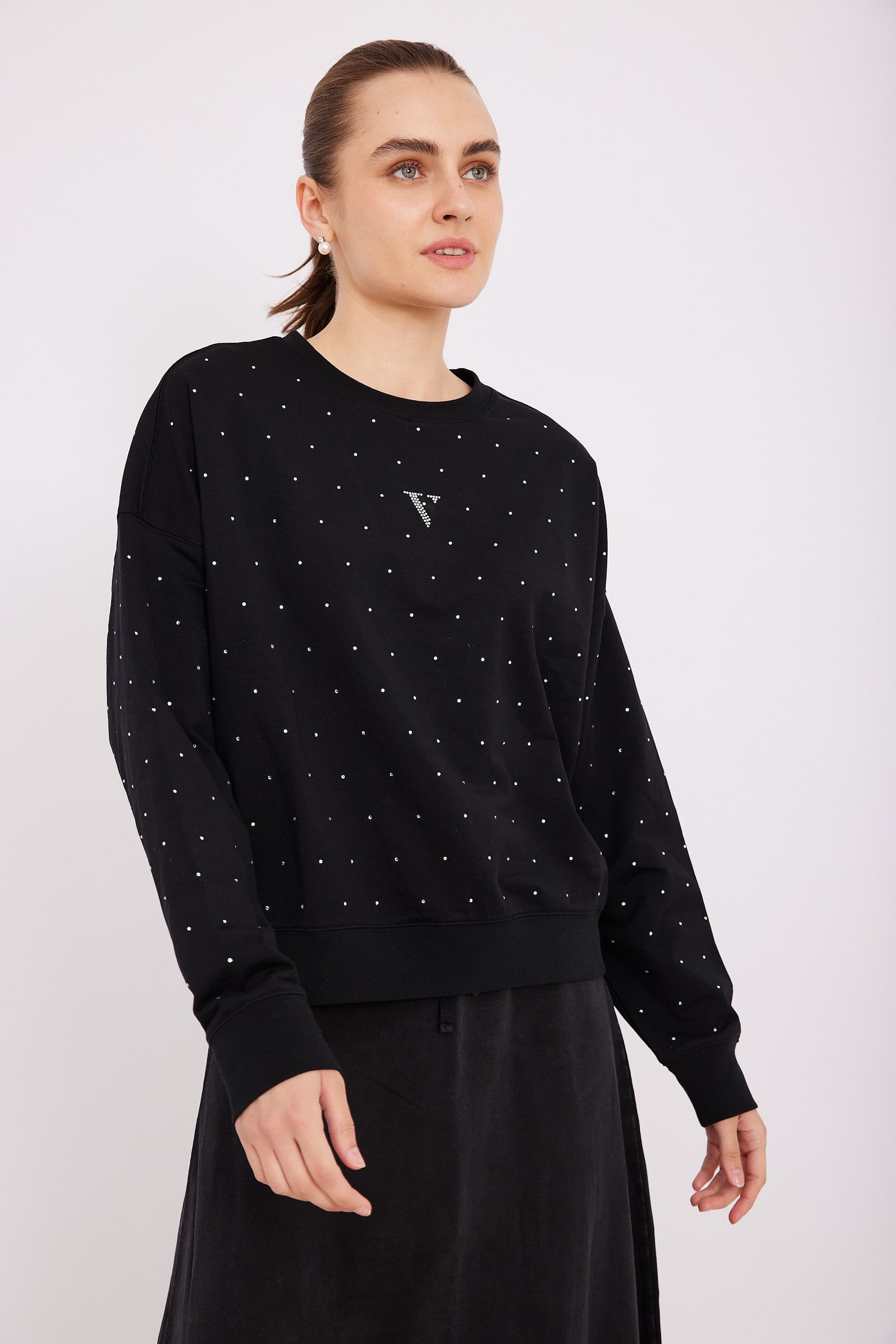 חולצה מבד פוטר נח ונעים, עם שילוב אבנים קטנות.