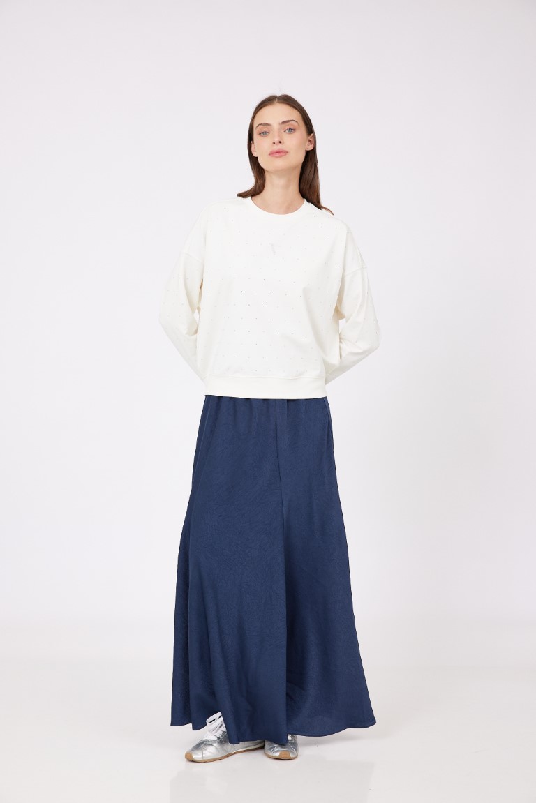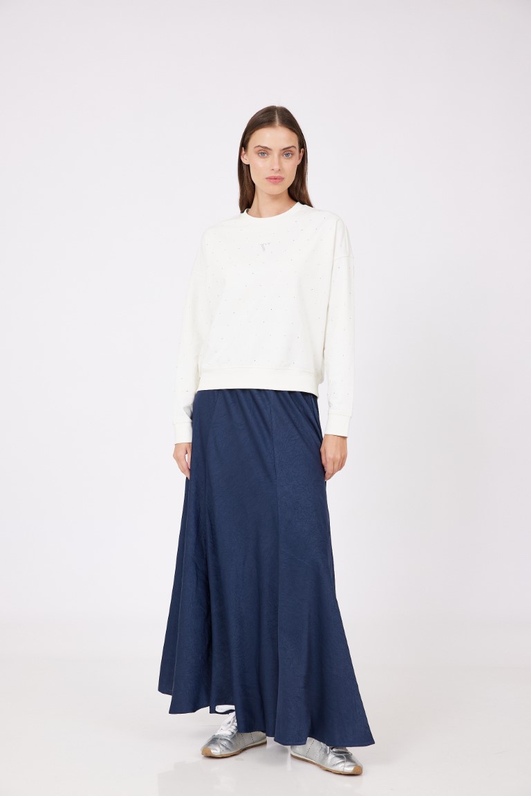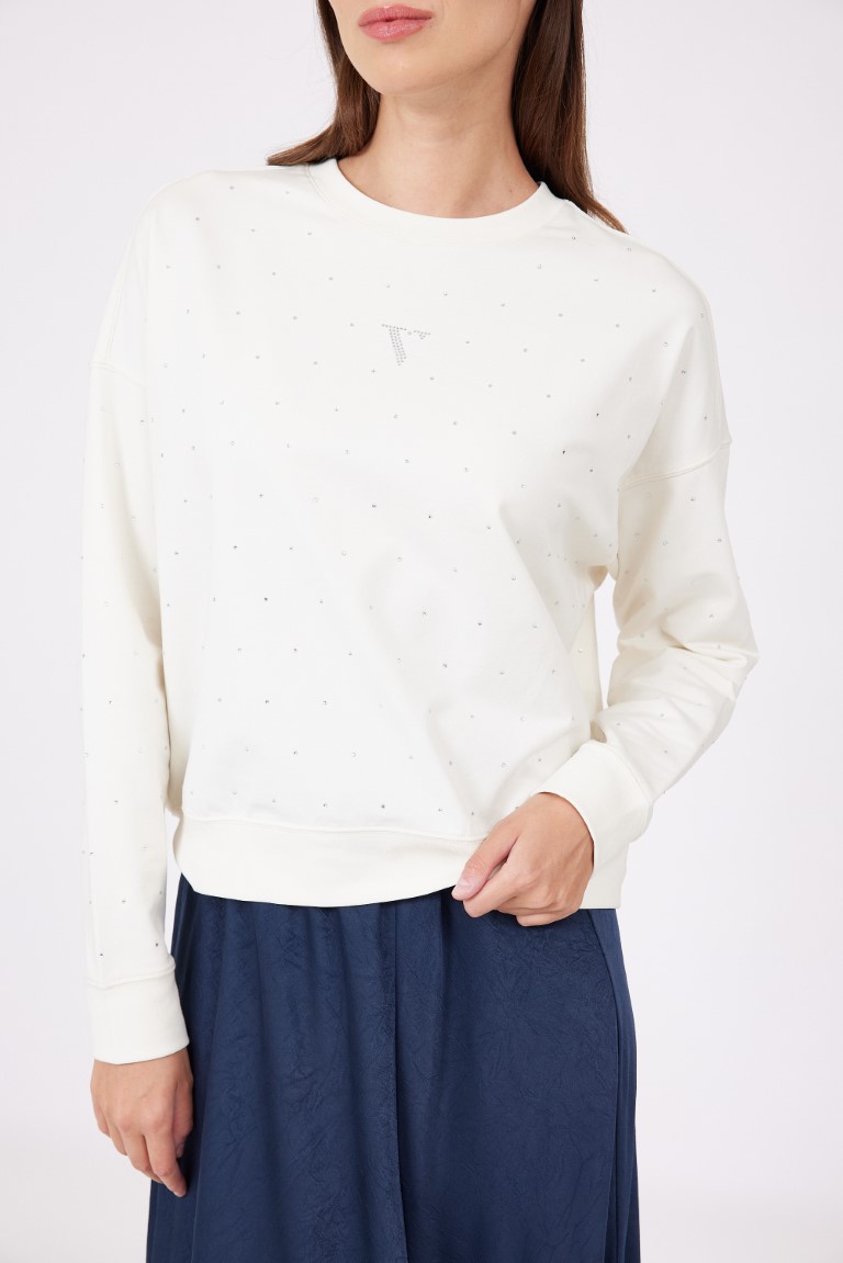חולצה מבד פוטר נח ונעים, עם שילוב אבנים קטנות.