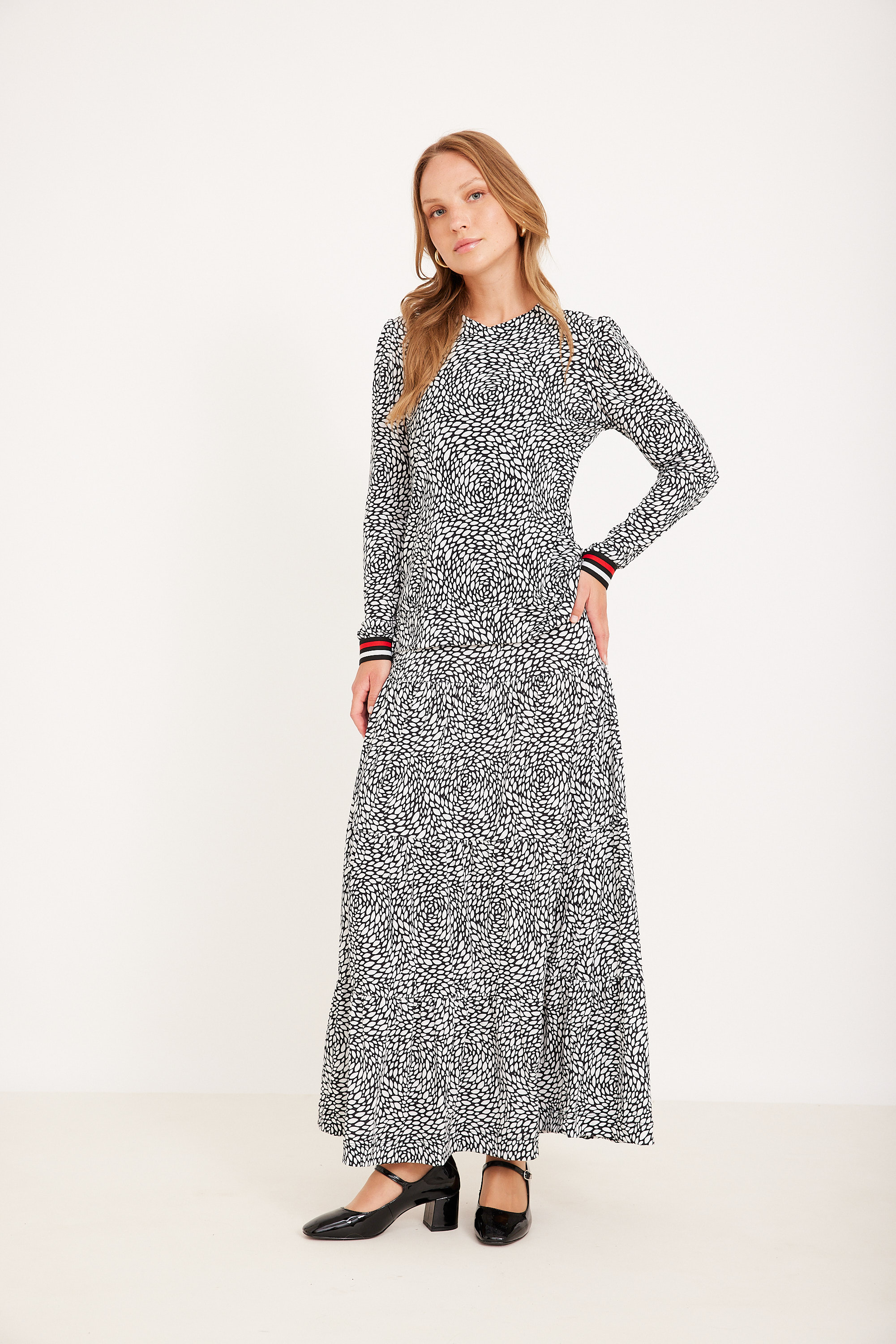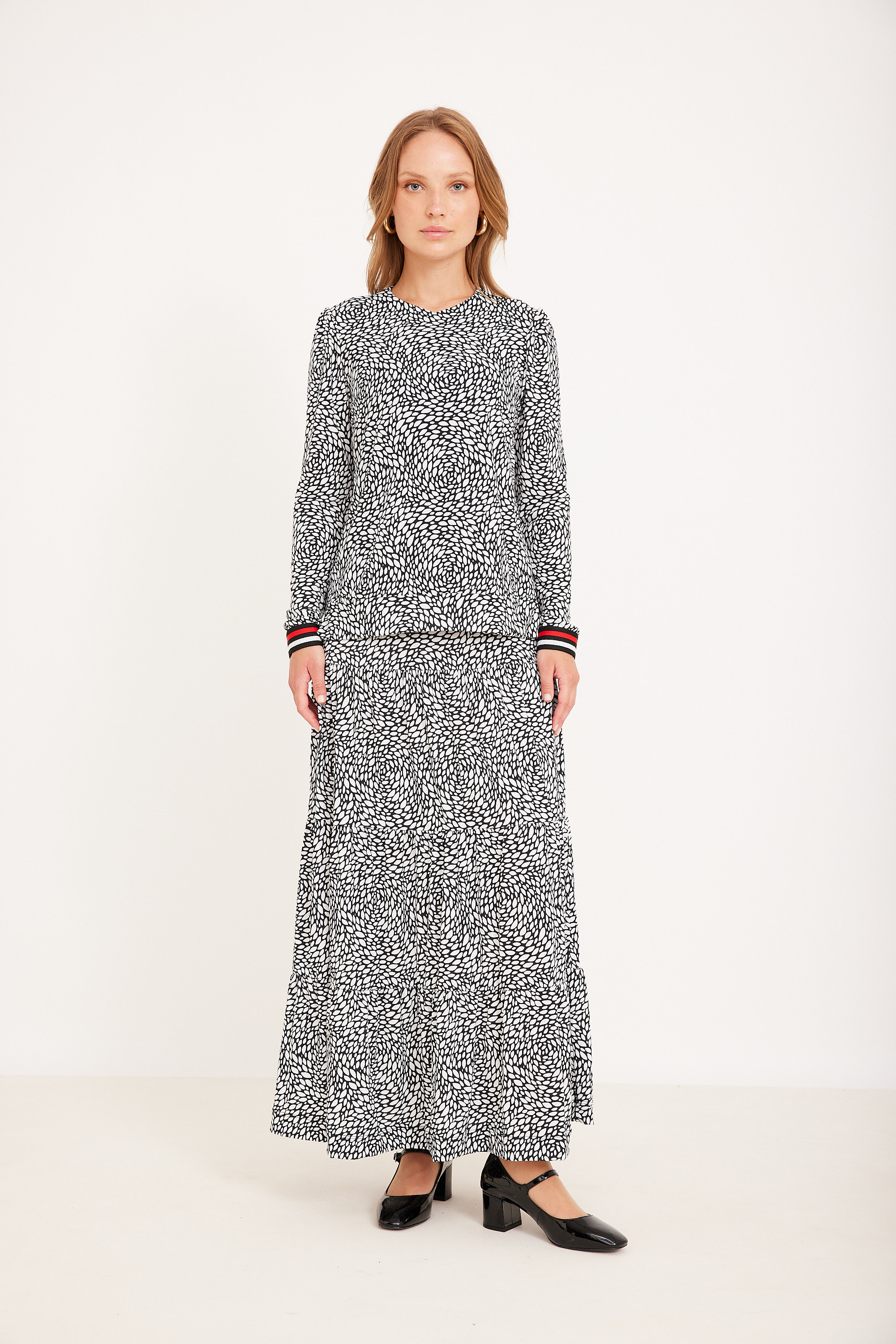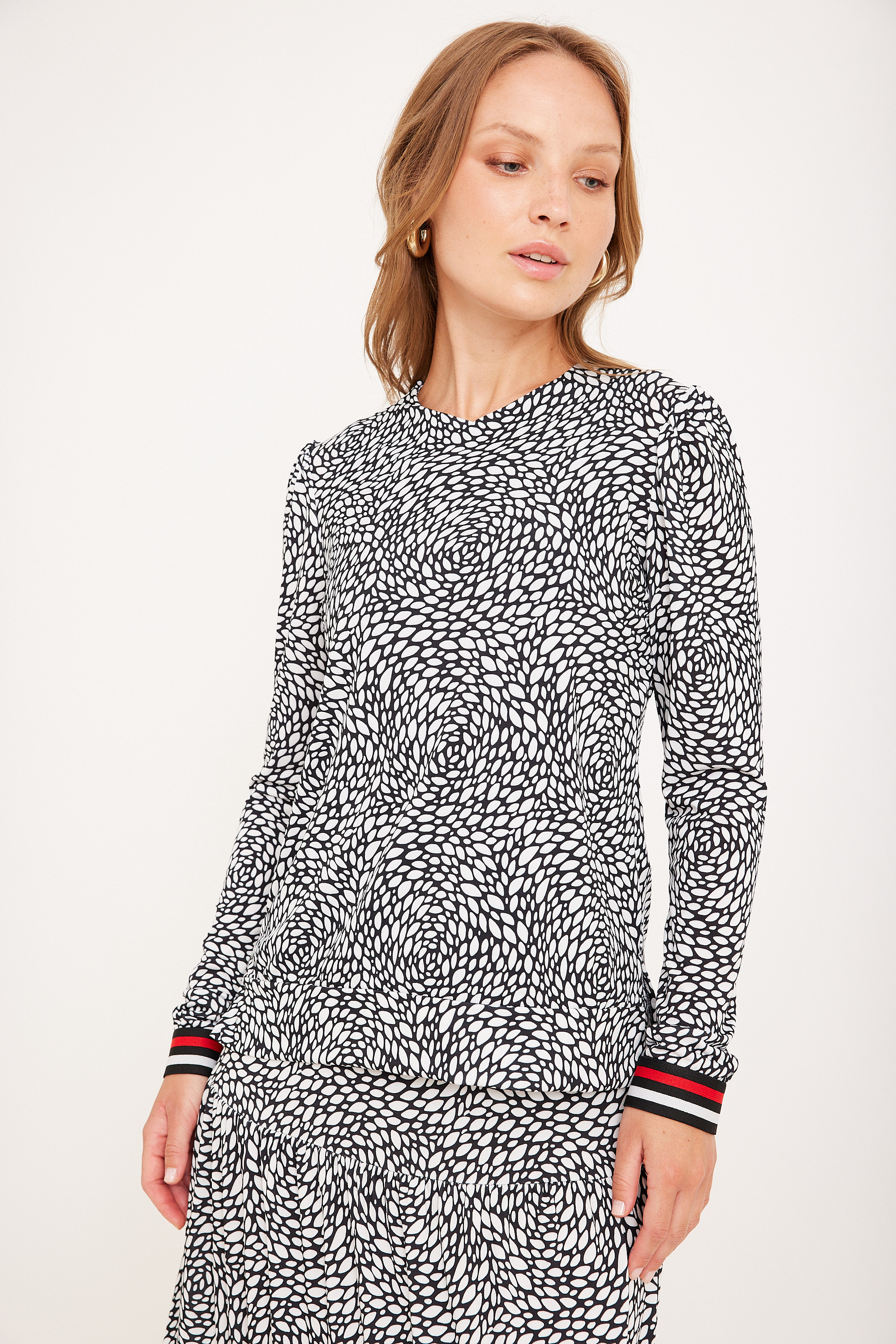 ניתן לשלב עם חצאית תואמת למראה סט