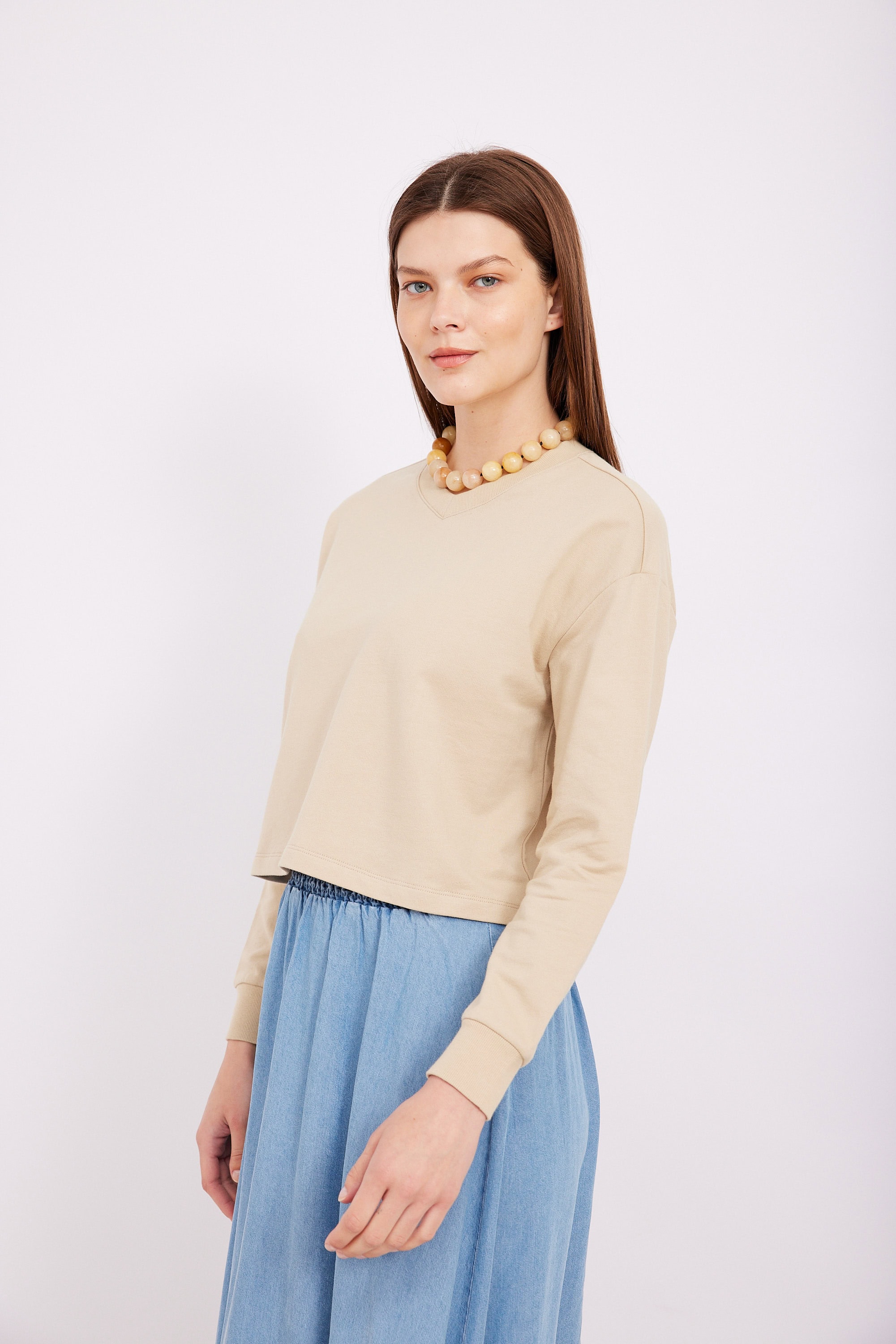 חולצה אופנתית עם מפתח וי עדין בצוואר,