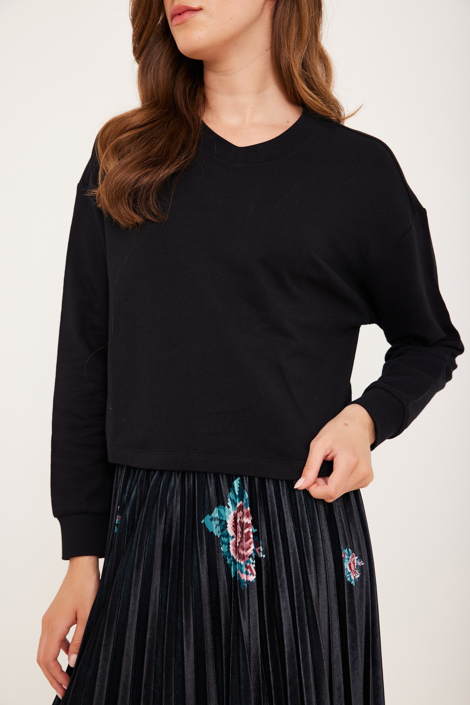 חולצה אופנתית עם מפתח וי עדין בצוואר,