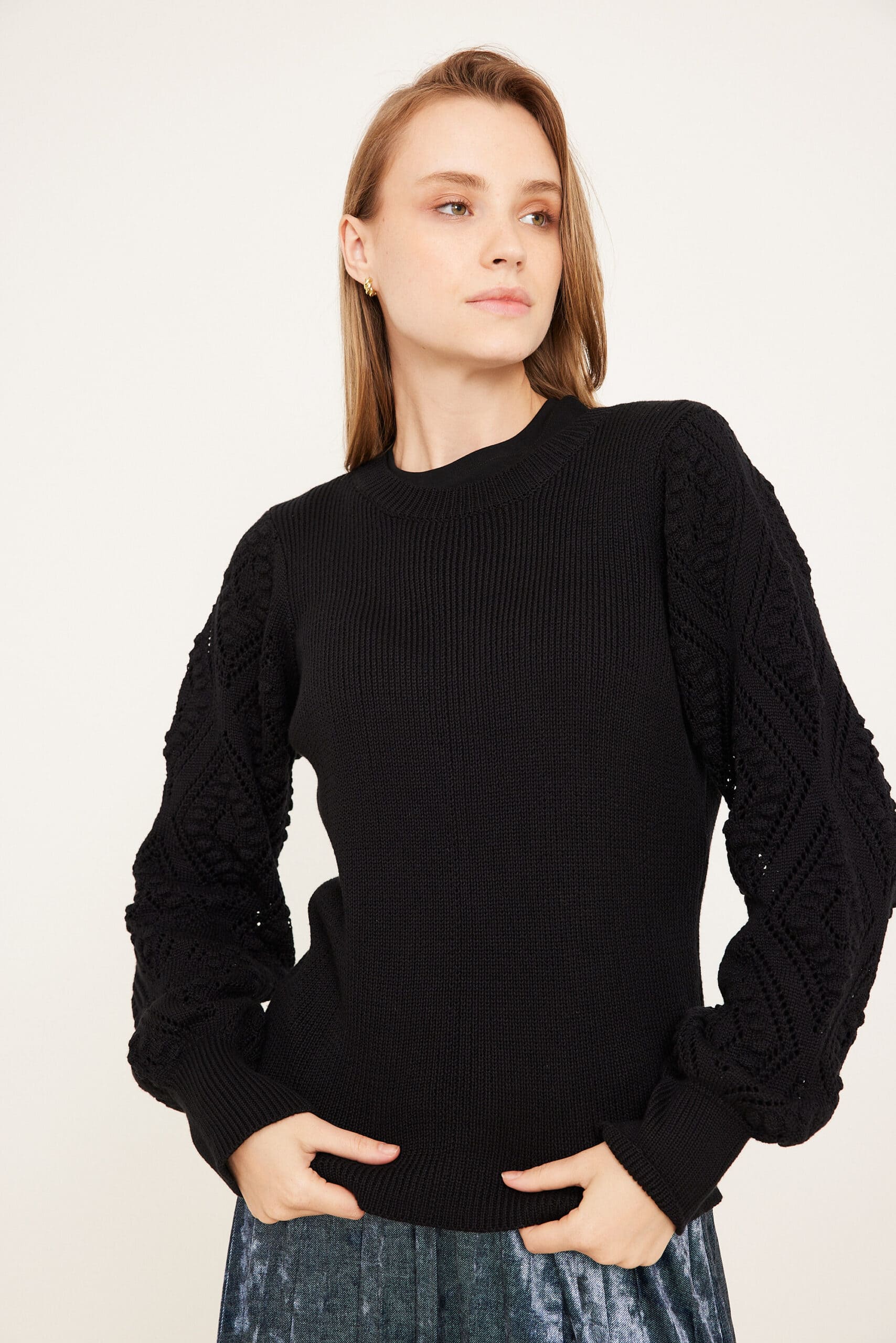חולצת סריג עם שרוול קרושה