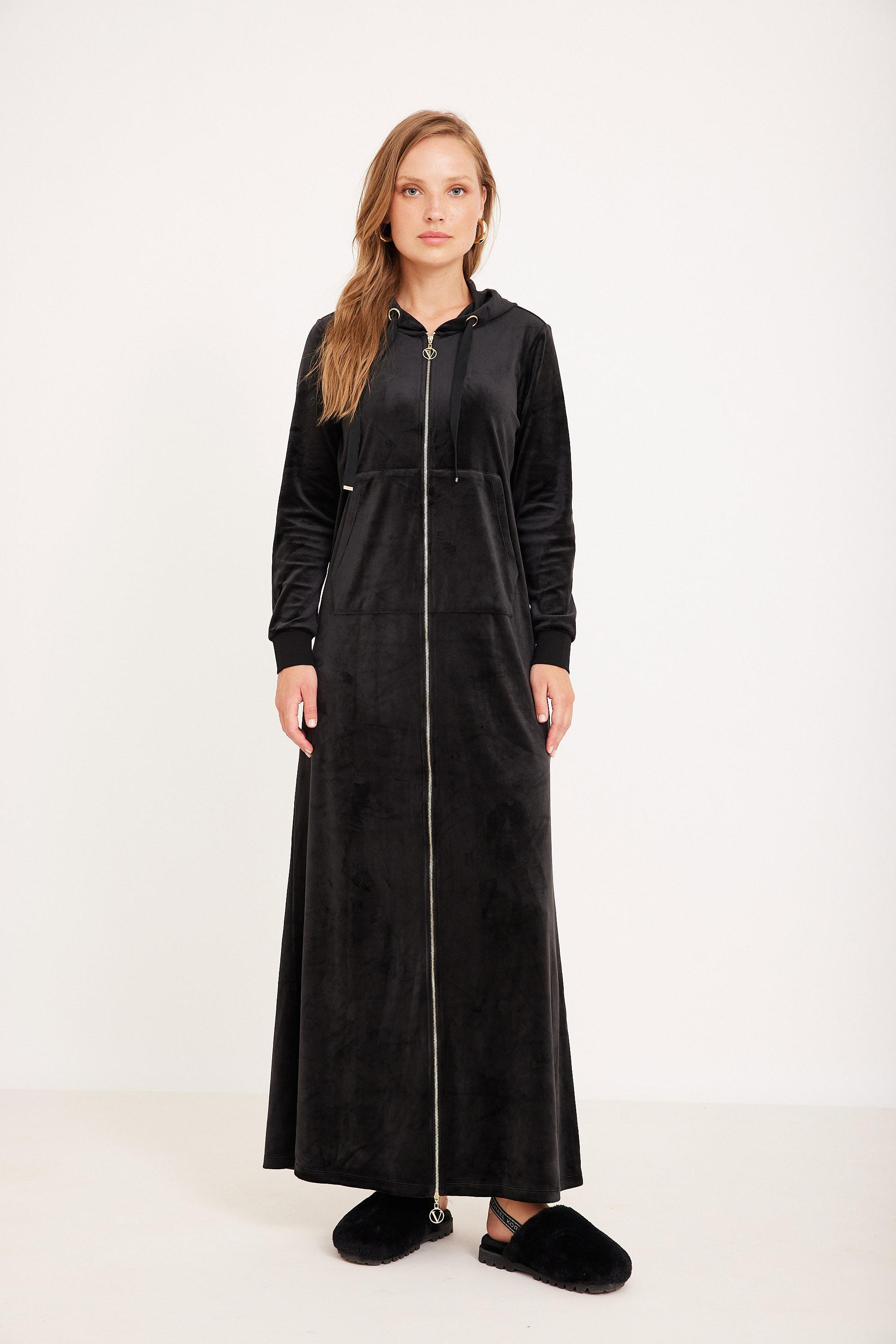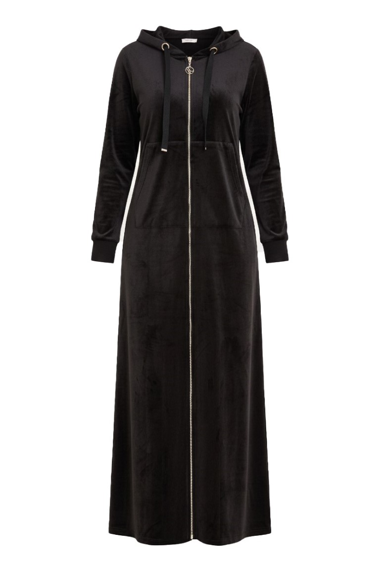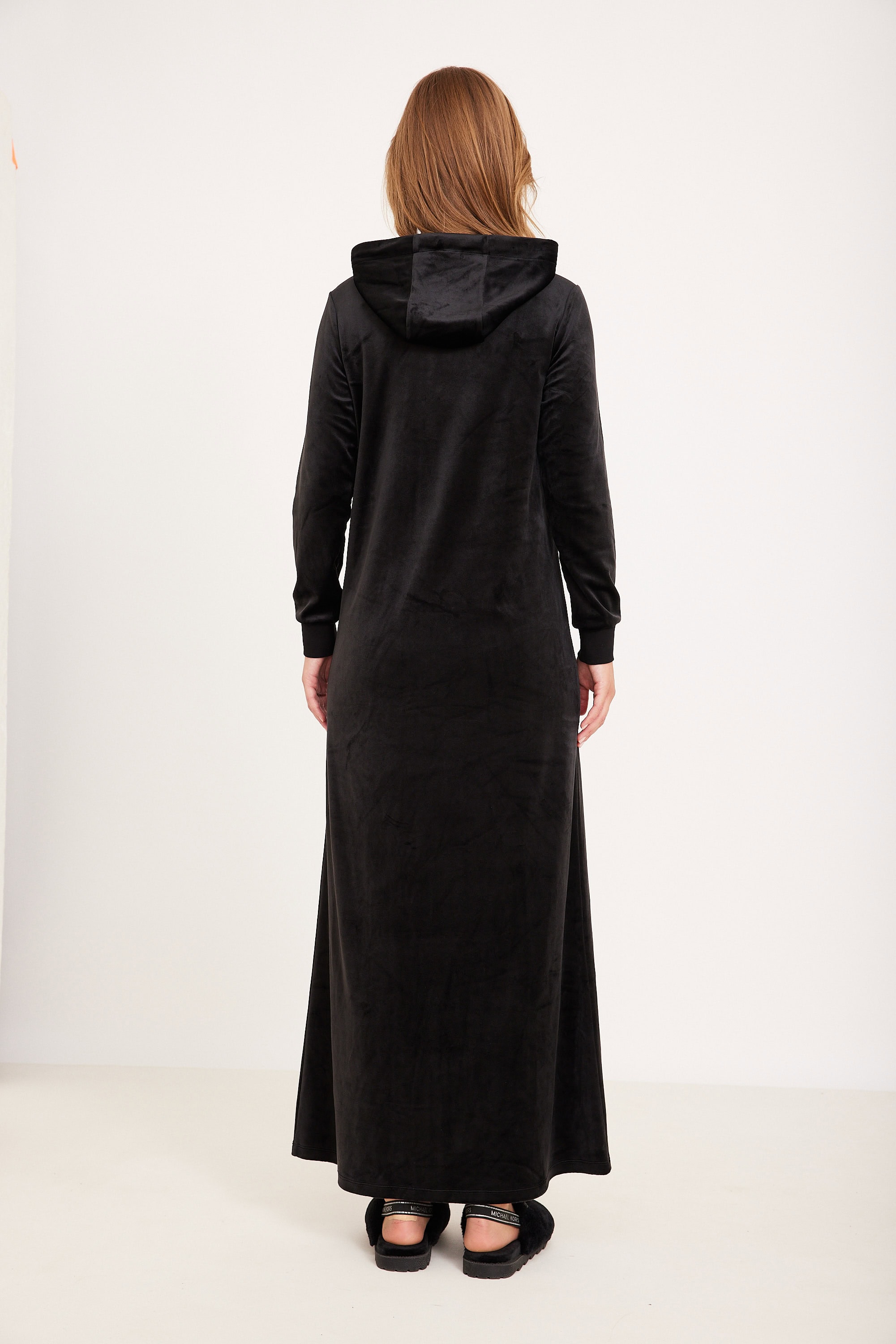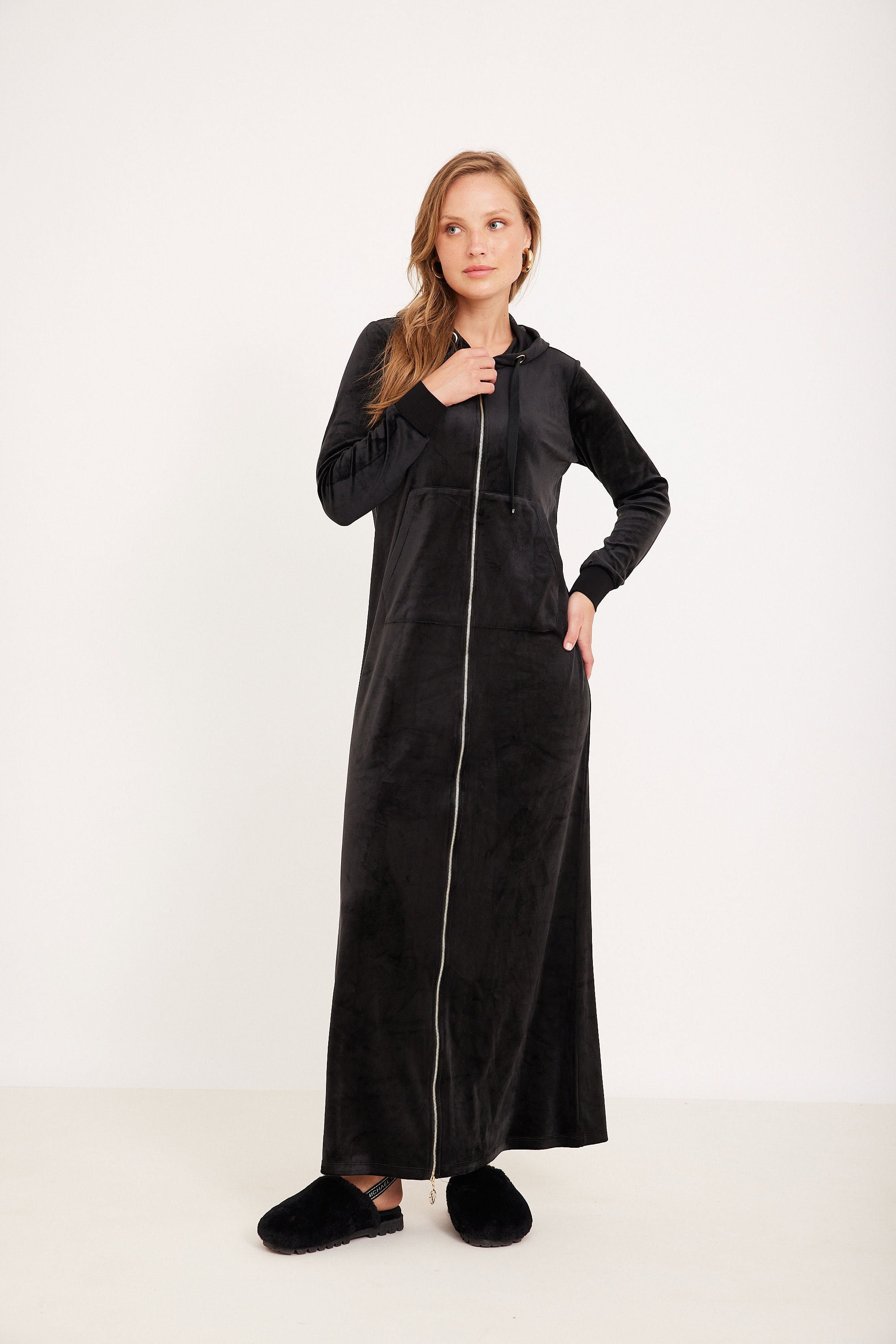 שמלת חלוק קפוצ’ון ארוך מבד קטיפה פפקו וכיס קנגורו