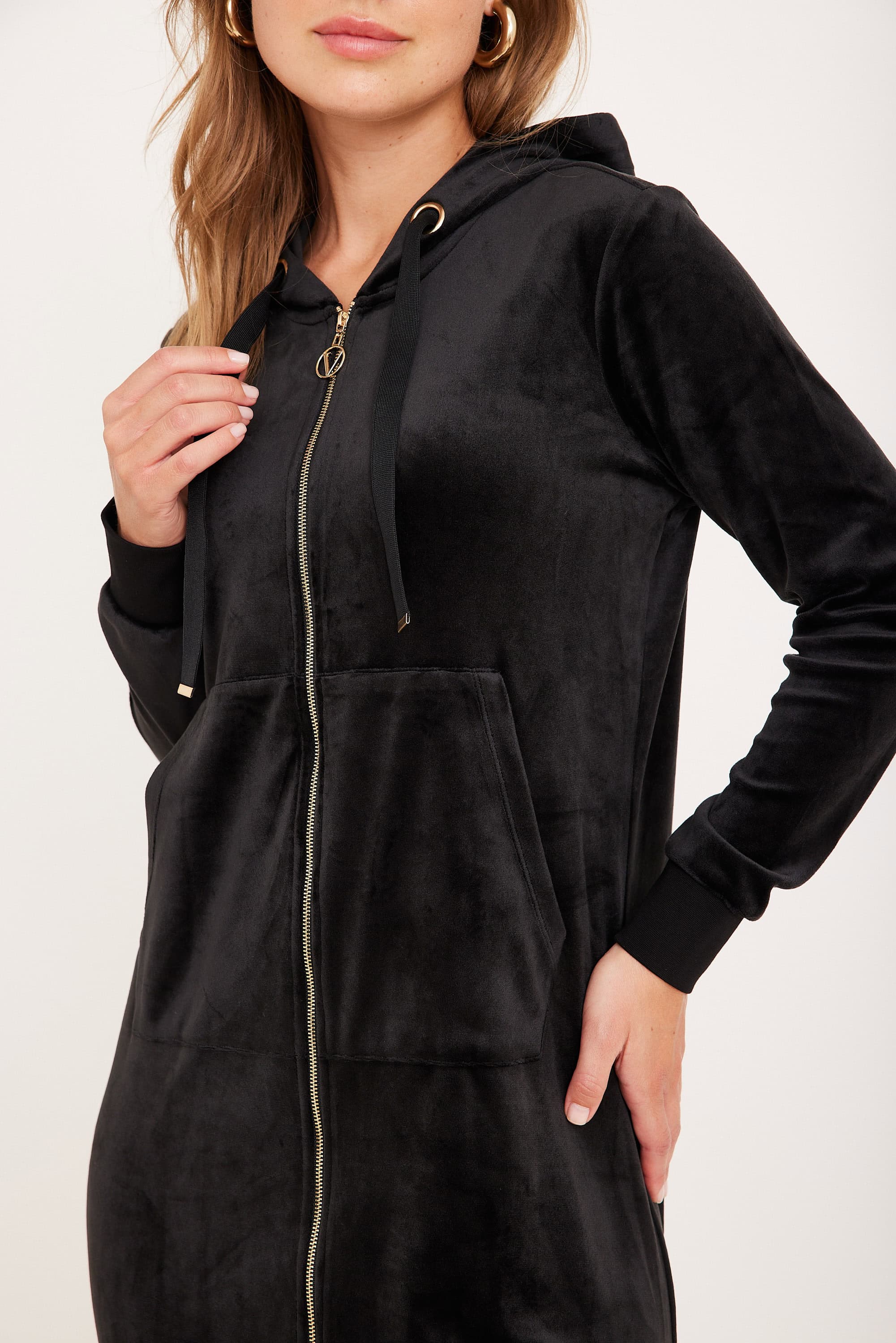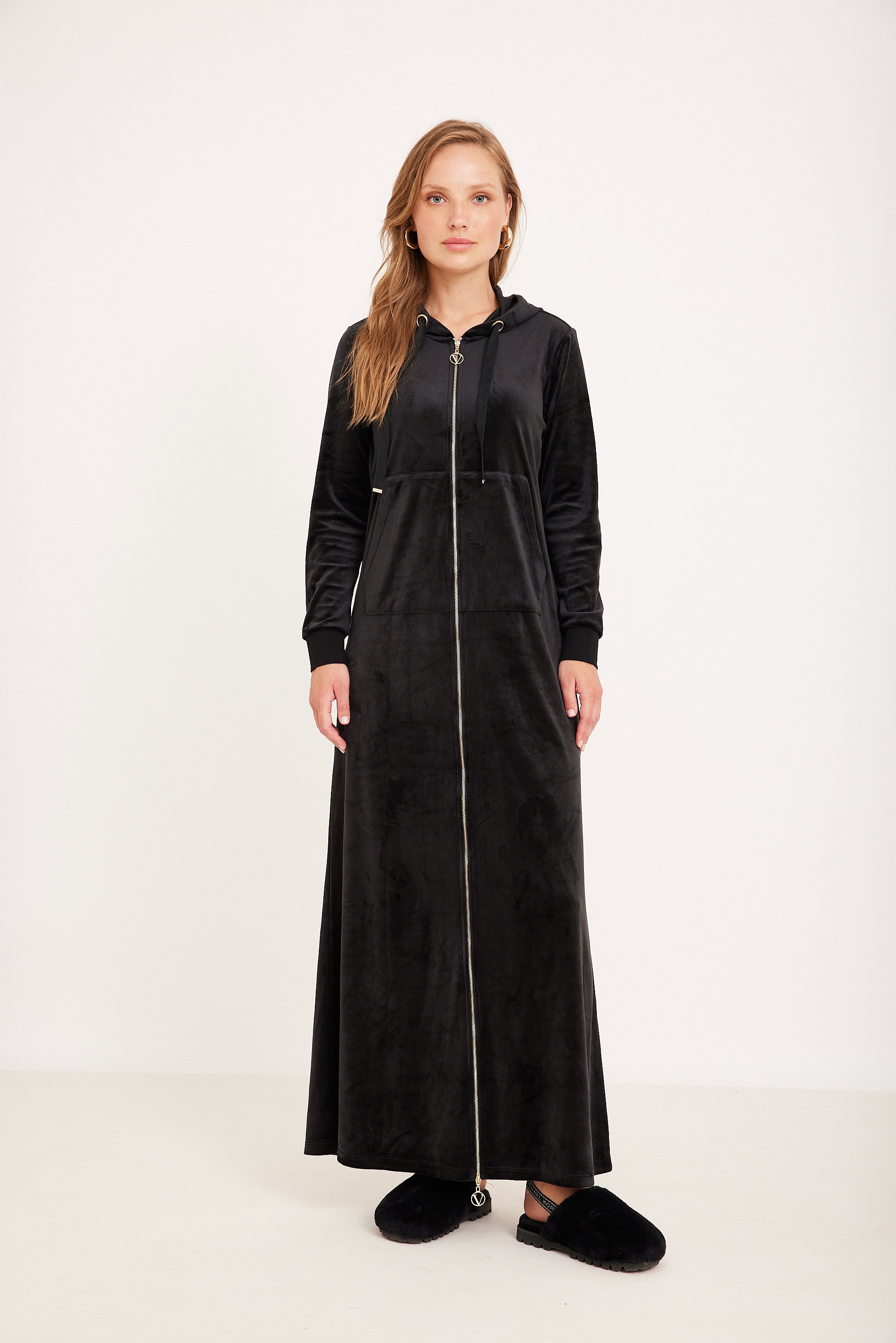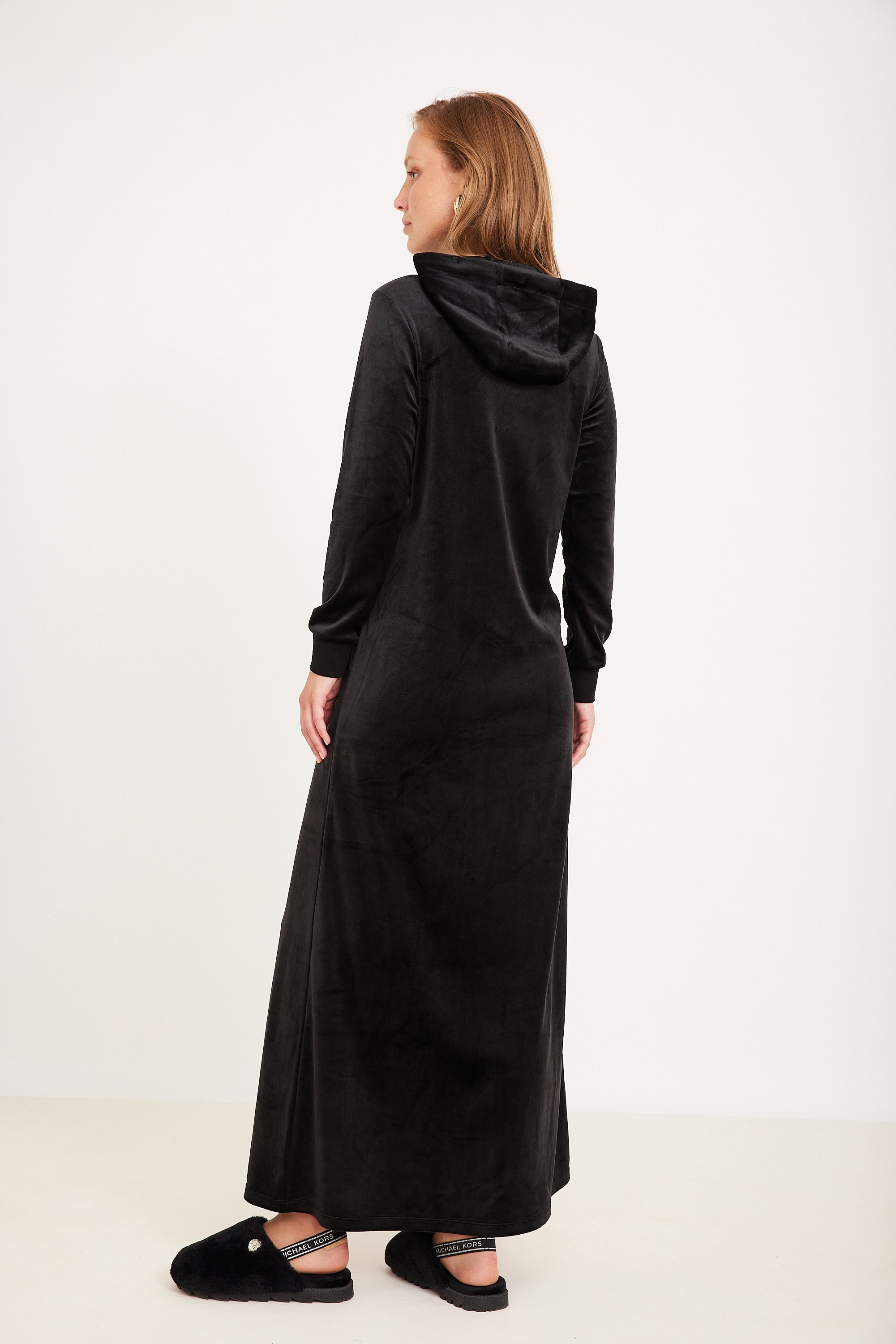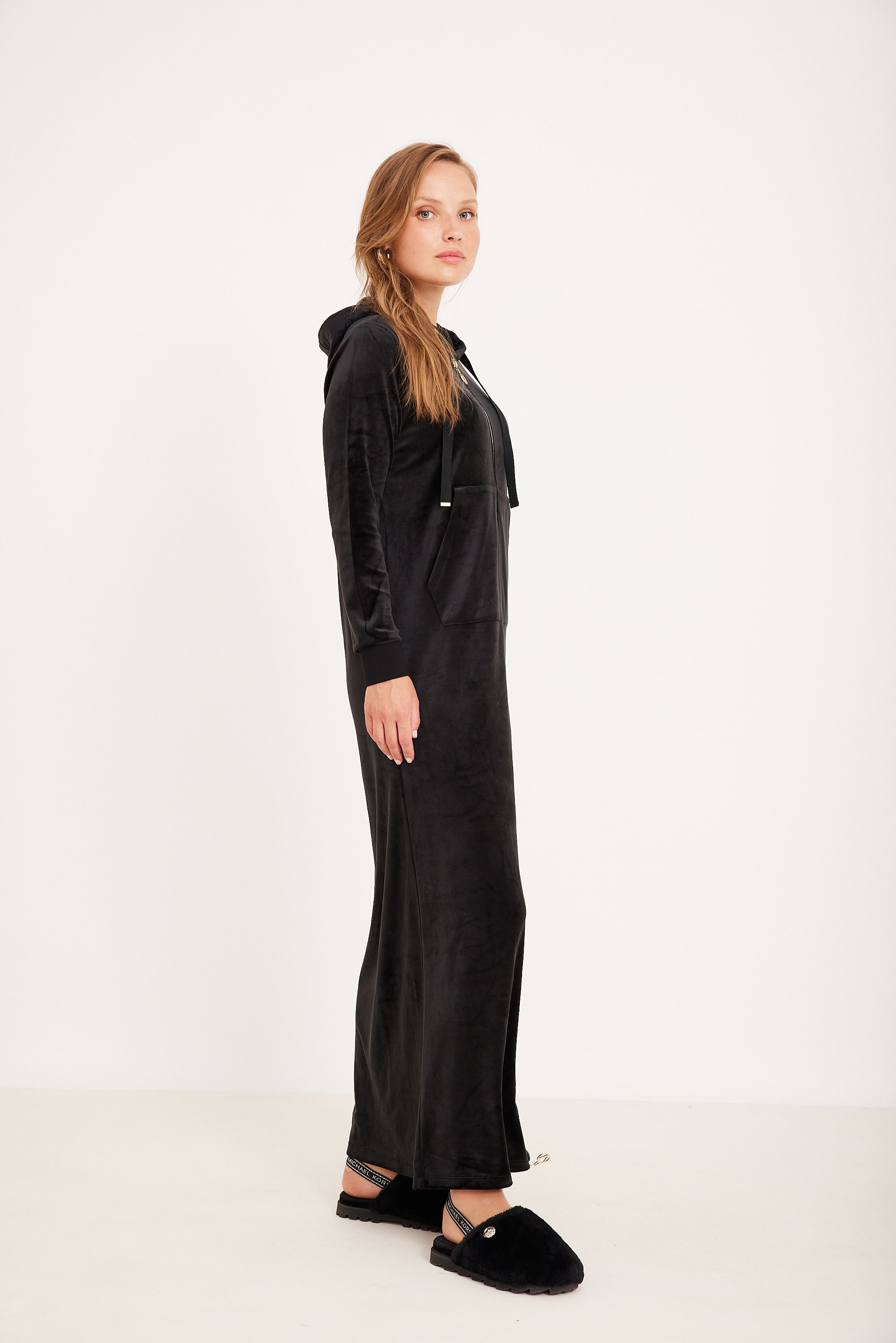 שמלת חלוק קפוצ’ון ארוך מבד קטיפה פפקו וכיס קנגורו