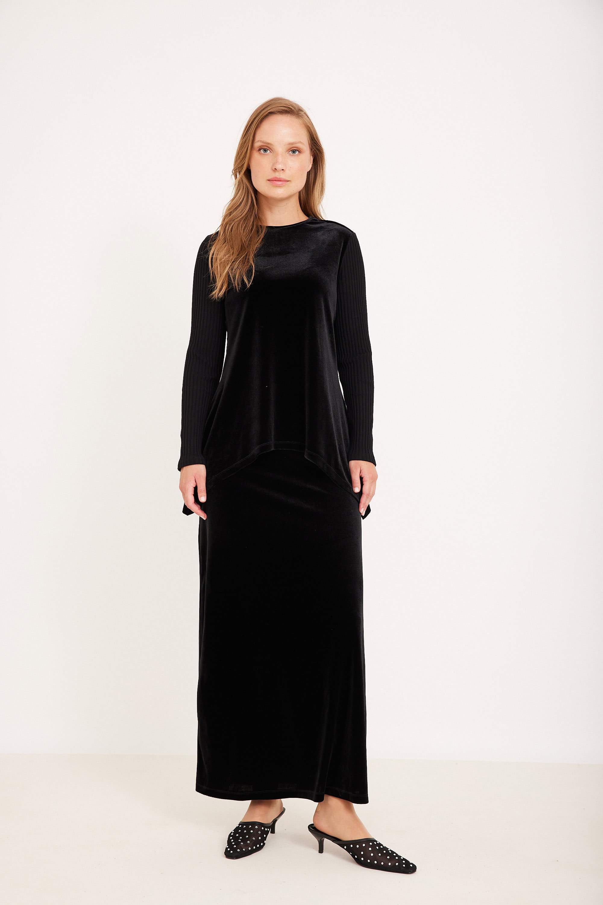 חצאית פליסה ארוכה קטיפה