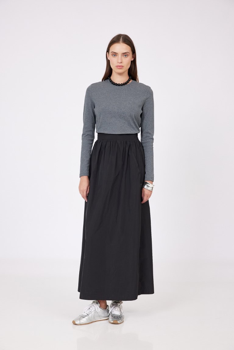 חצאית מקסי נקייה ומדויקת מבד ניילון קל,