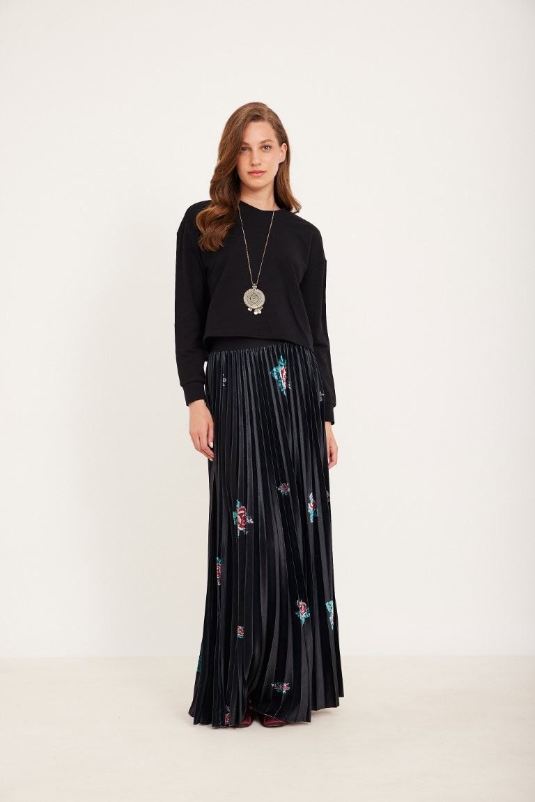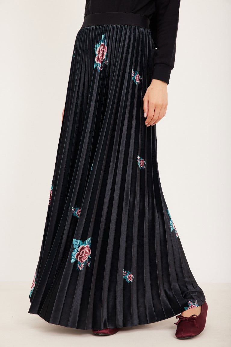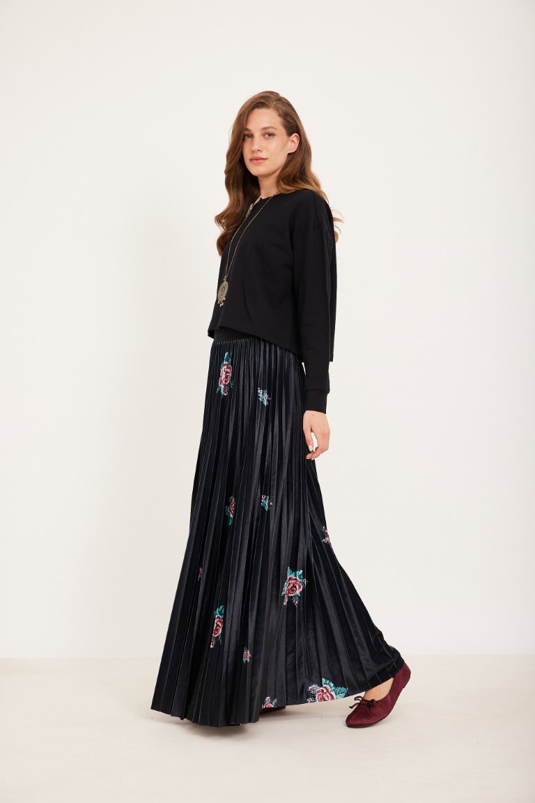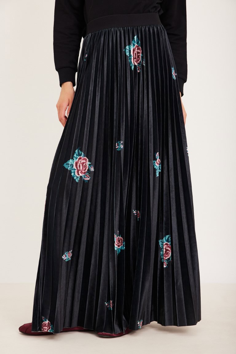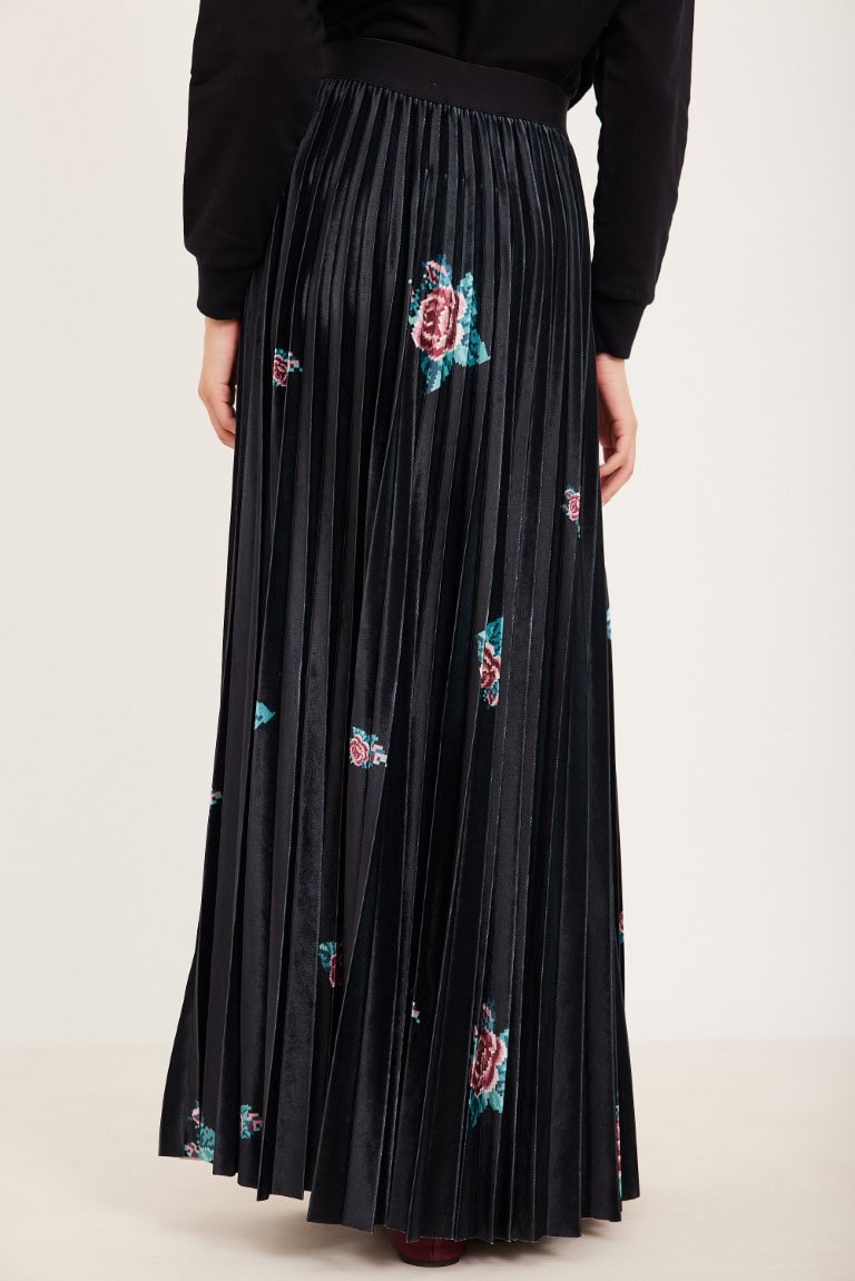 חצאית פליסה קטיפה פרחים