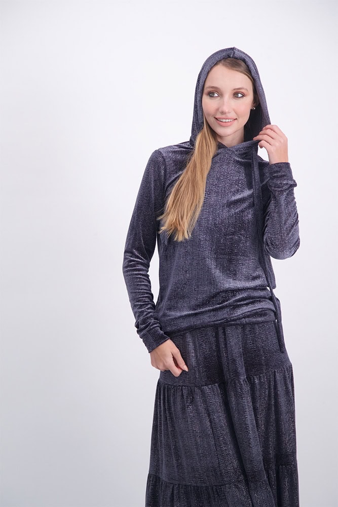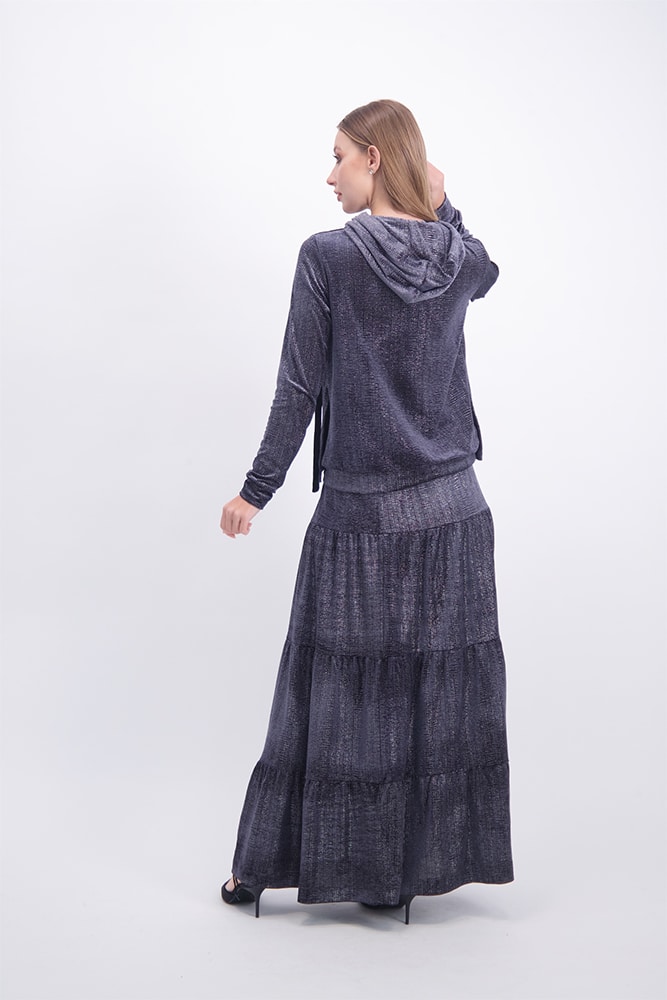 חצאית מבד קטיפה איכותי, נעים ונח עם גזרת קומות מחמיאה במיוחד!