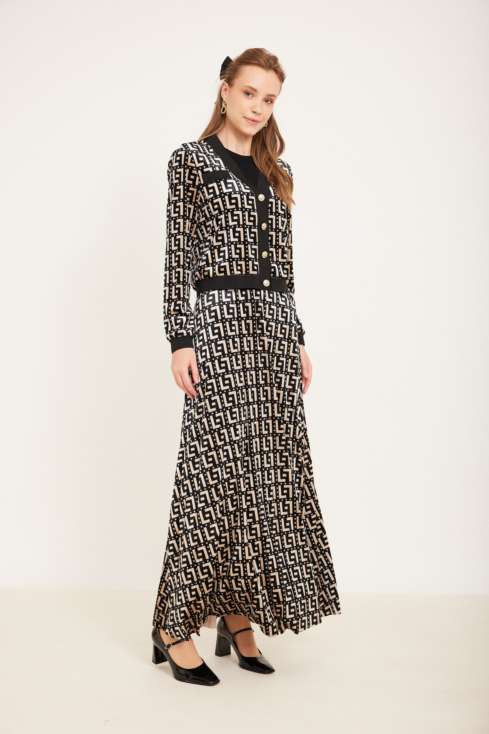סריג אפודה שחור לבן