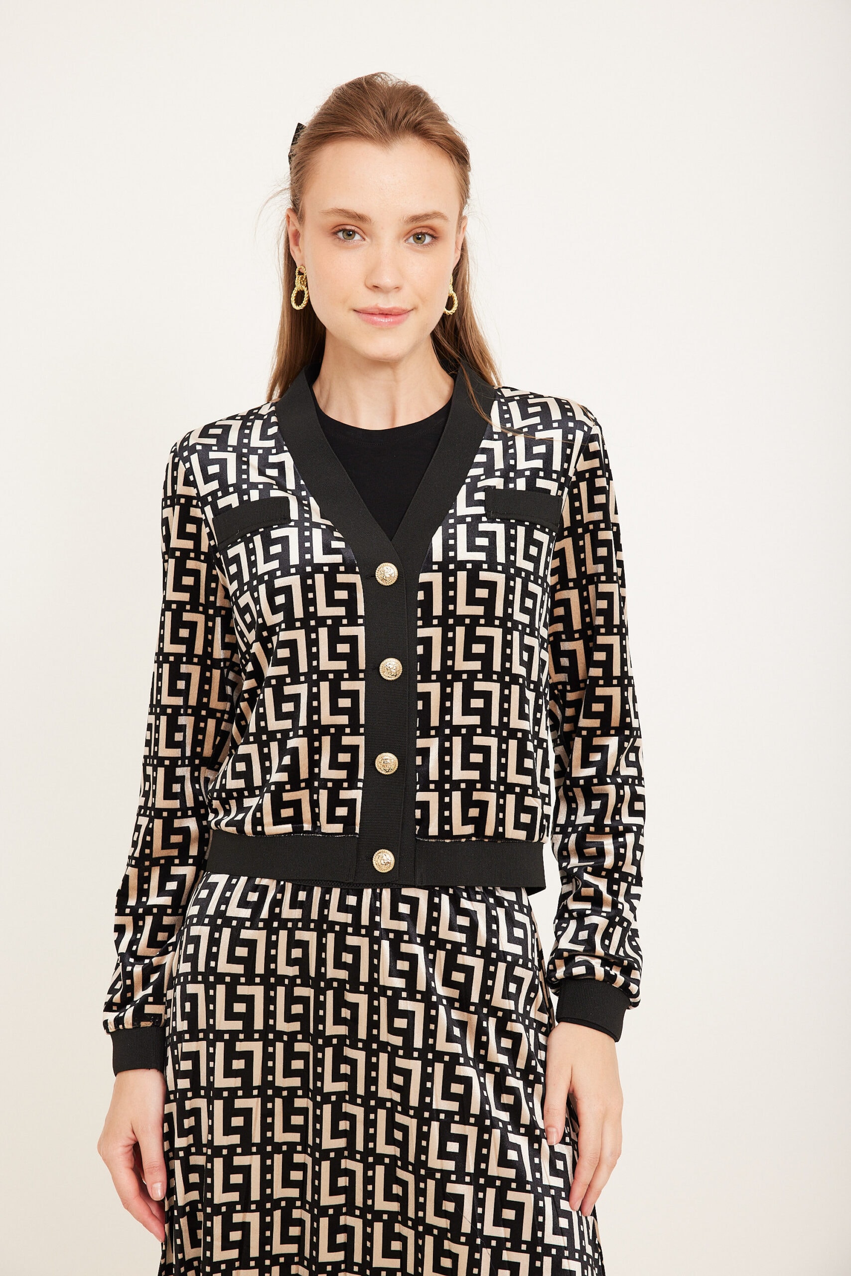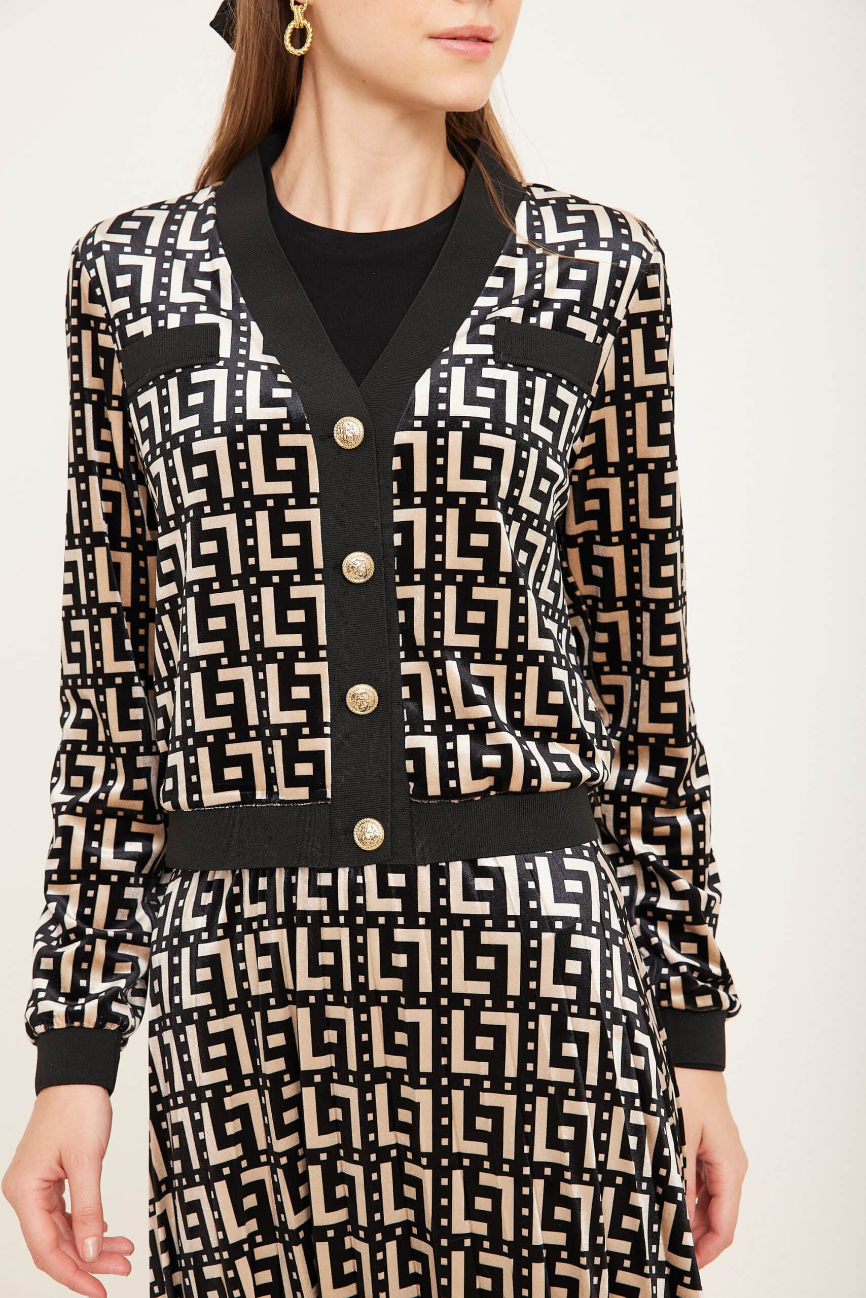 טופ קטיפה וי כפתורי זהב ודומי שתי כיסים