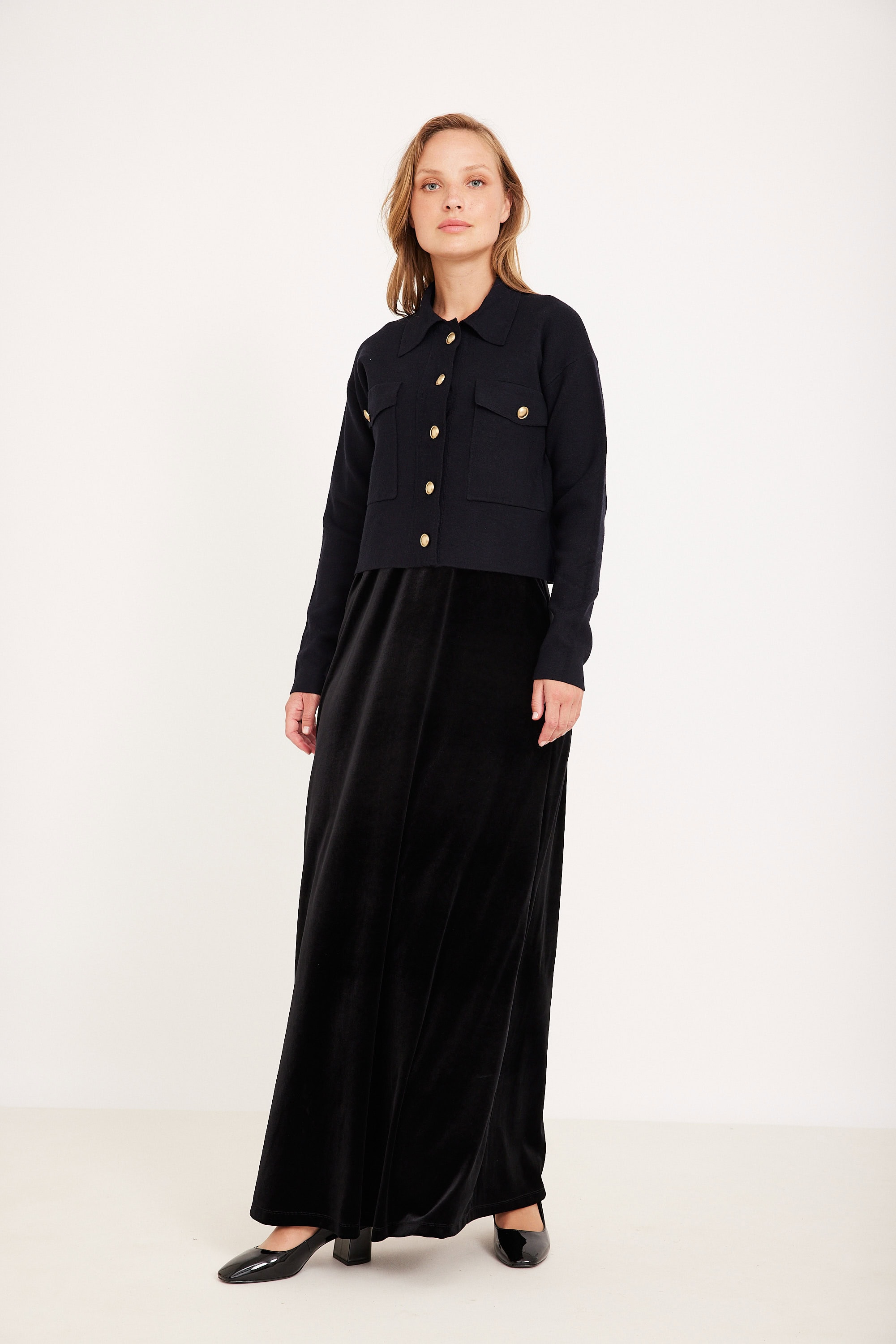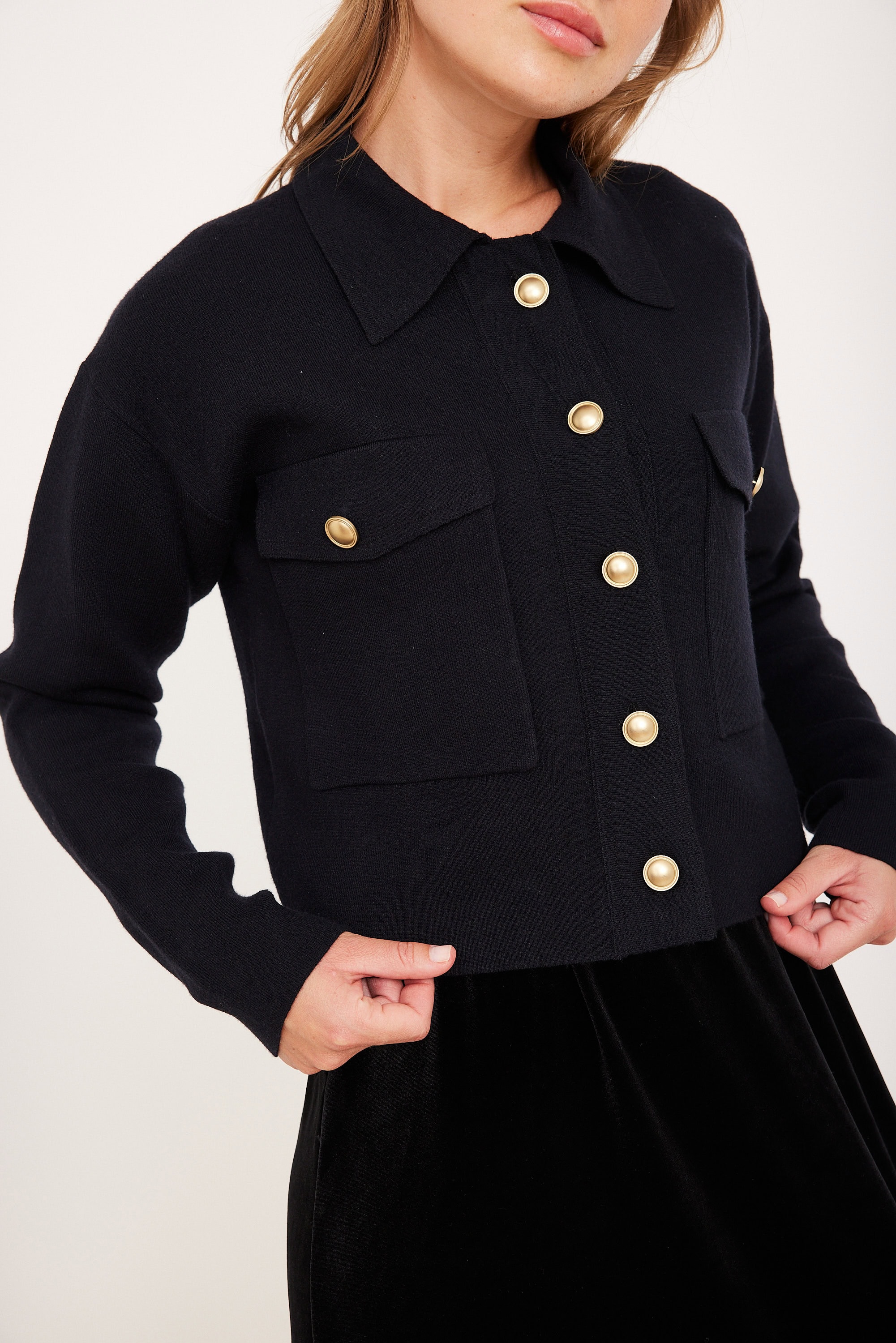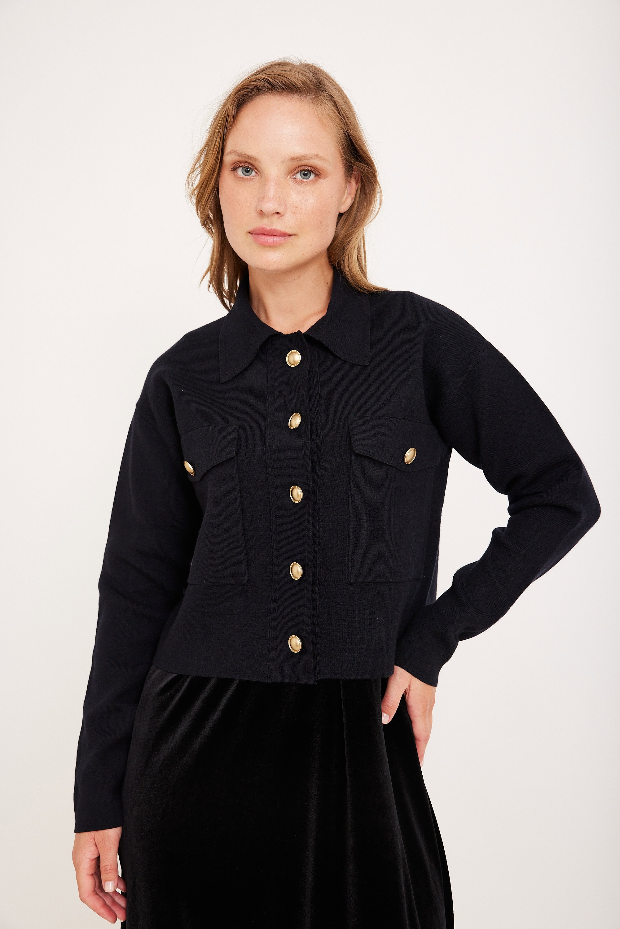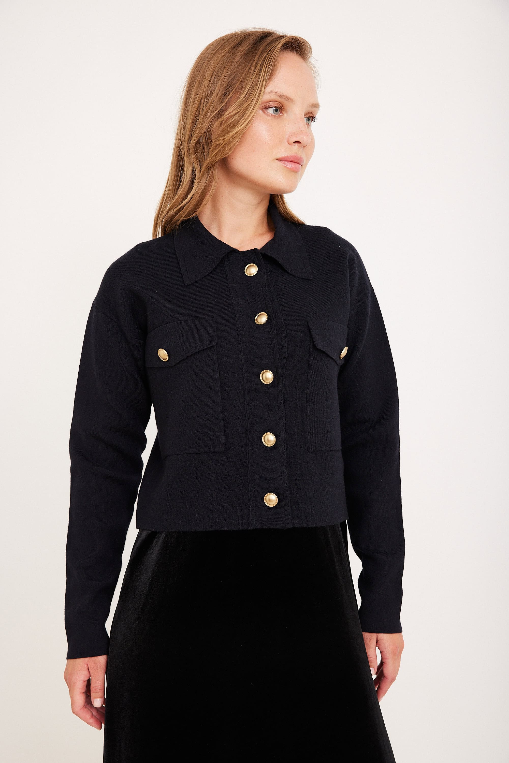 טופ סריג דמוי ג’קט עם כפתורי זהב