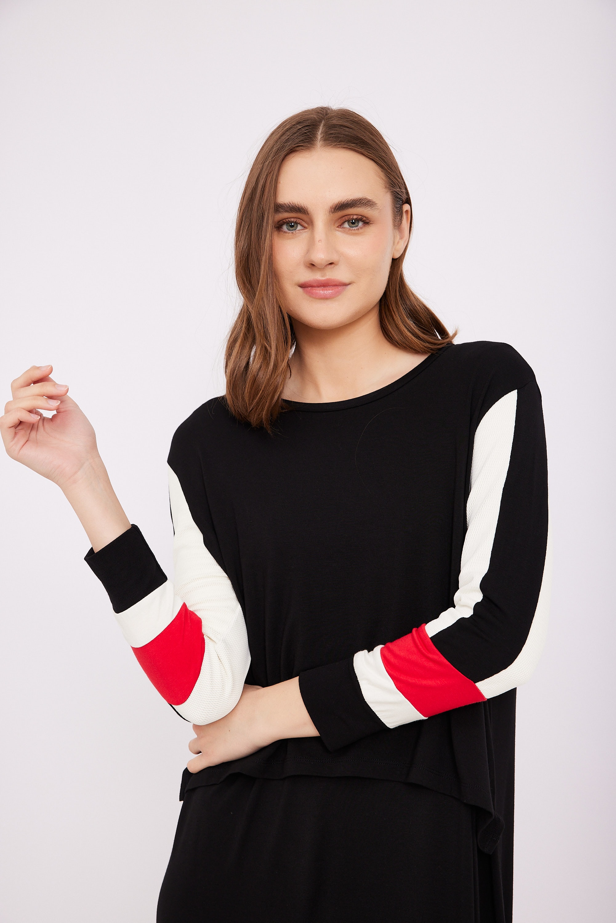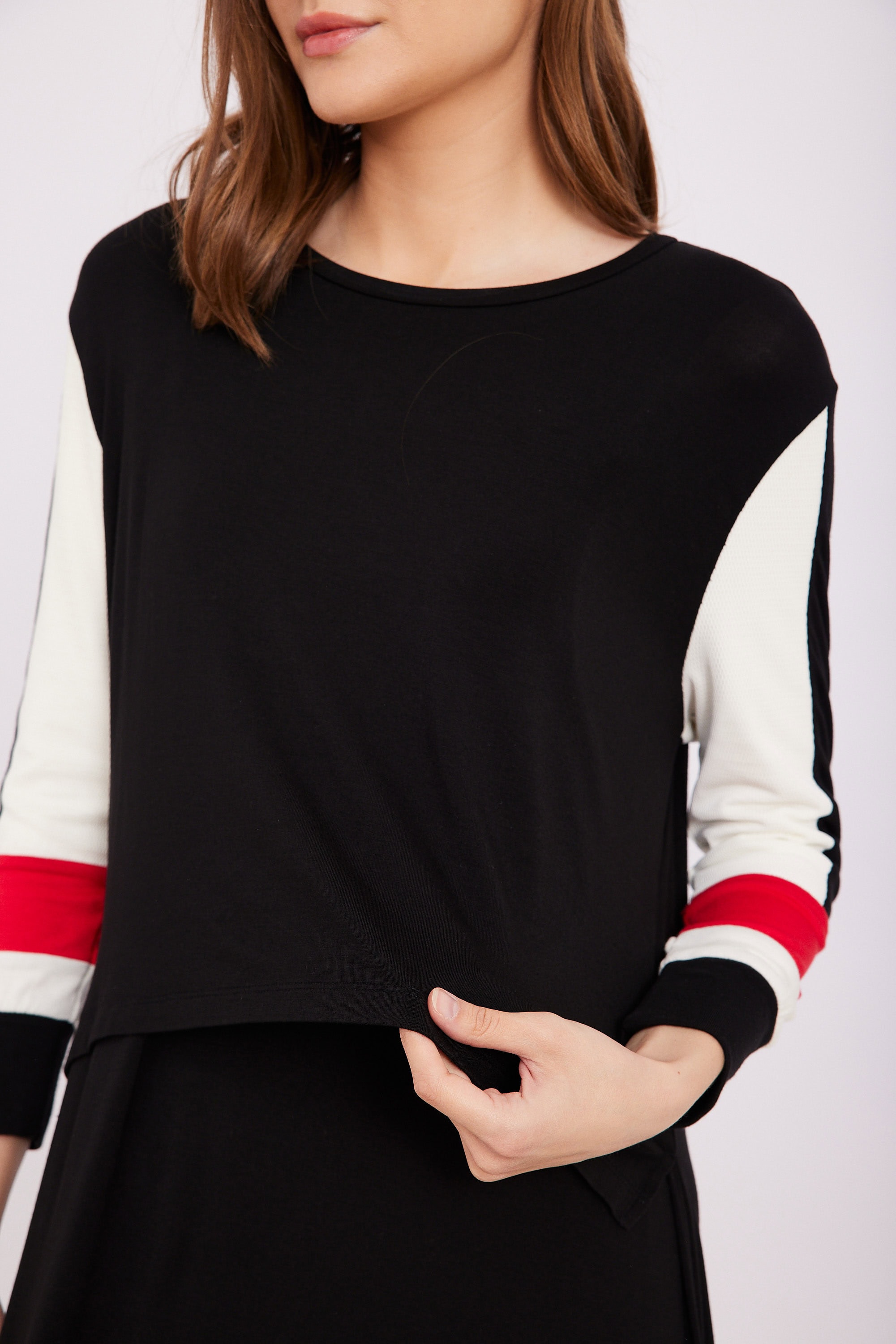כותנת הנקה שילוב רשת ביד ופס אדום