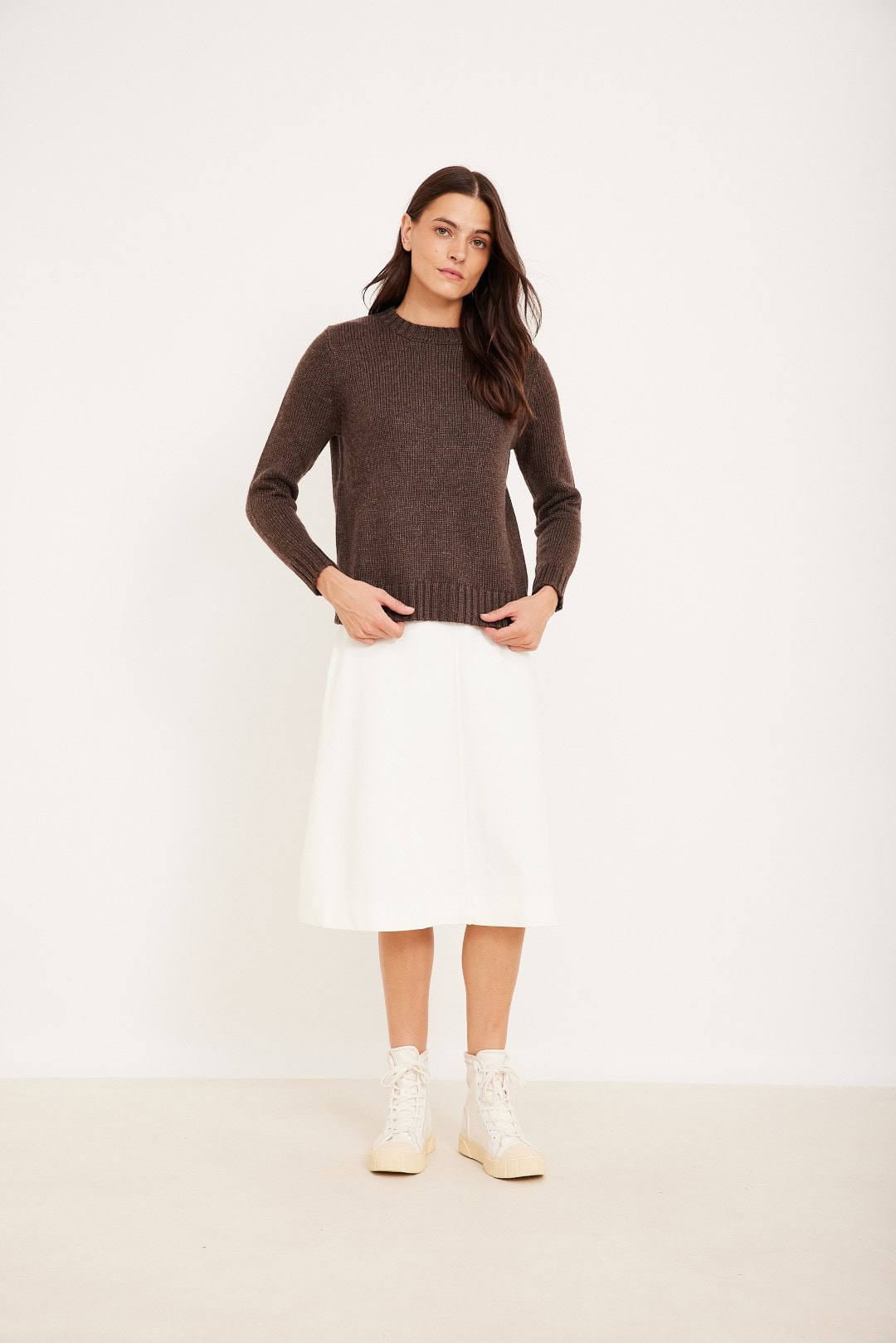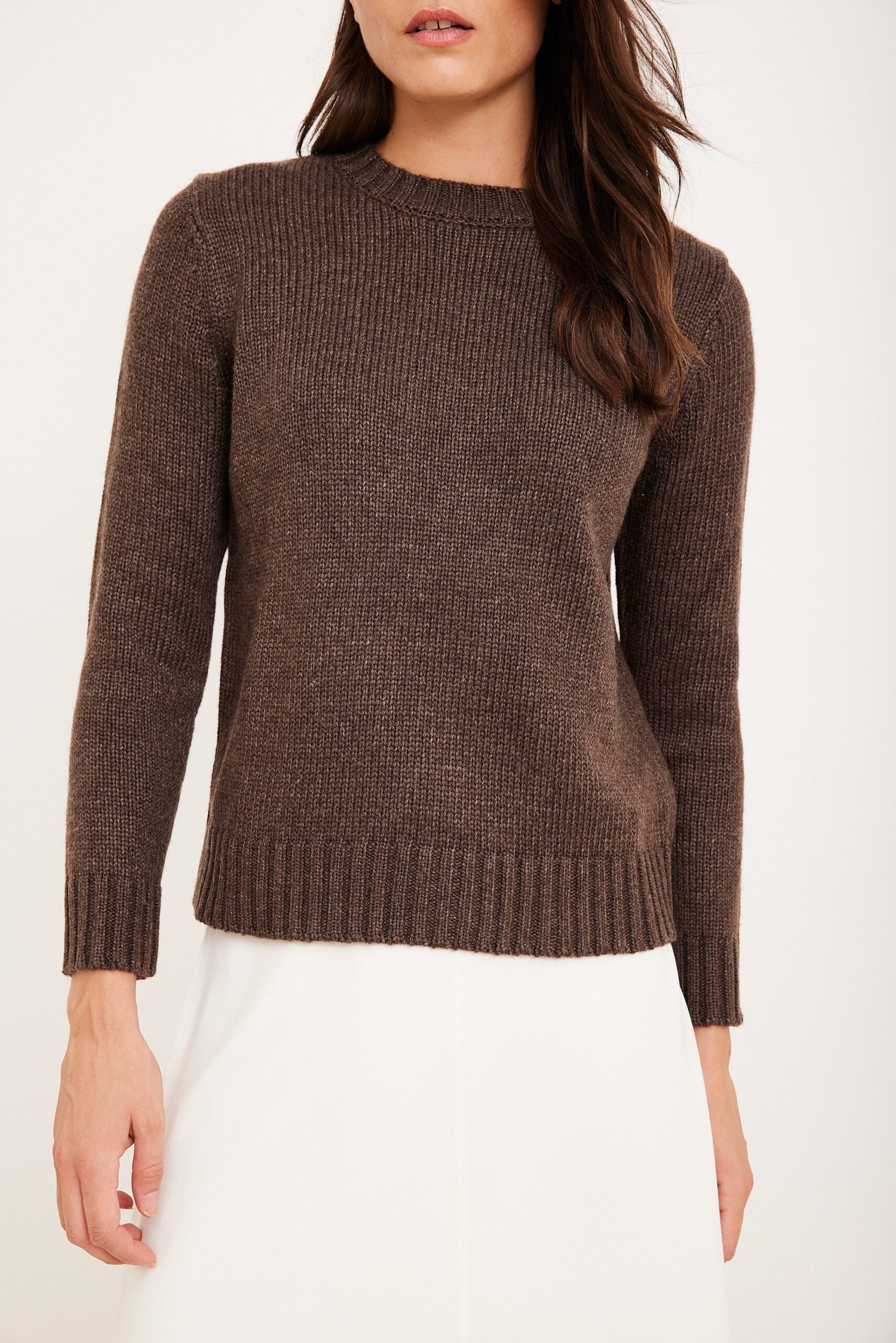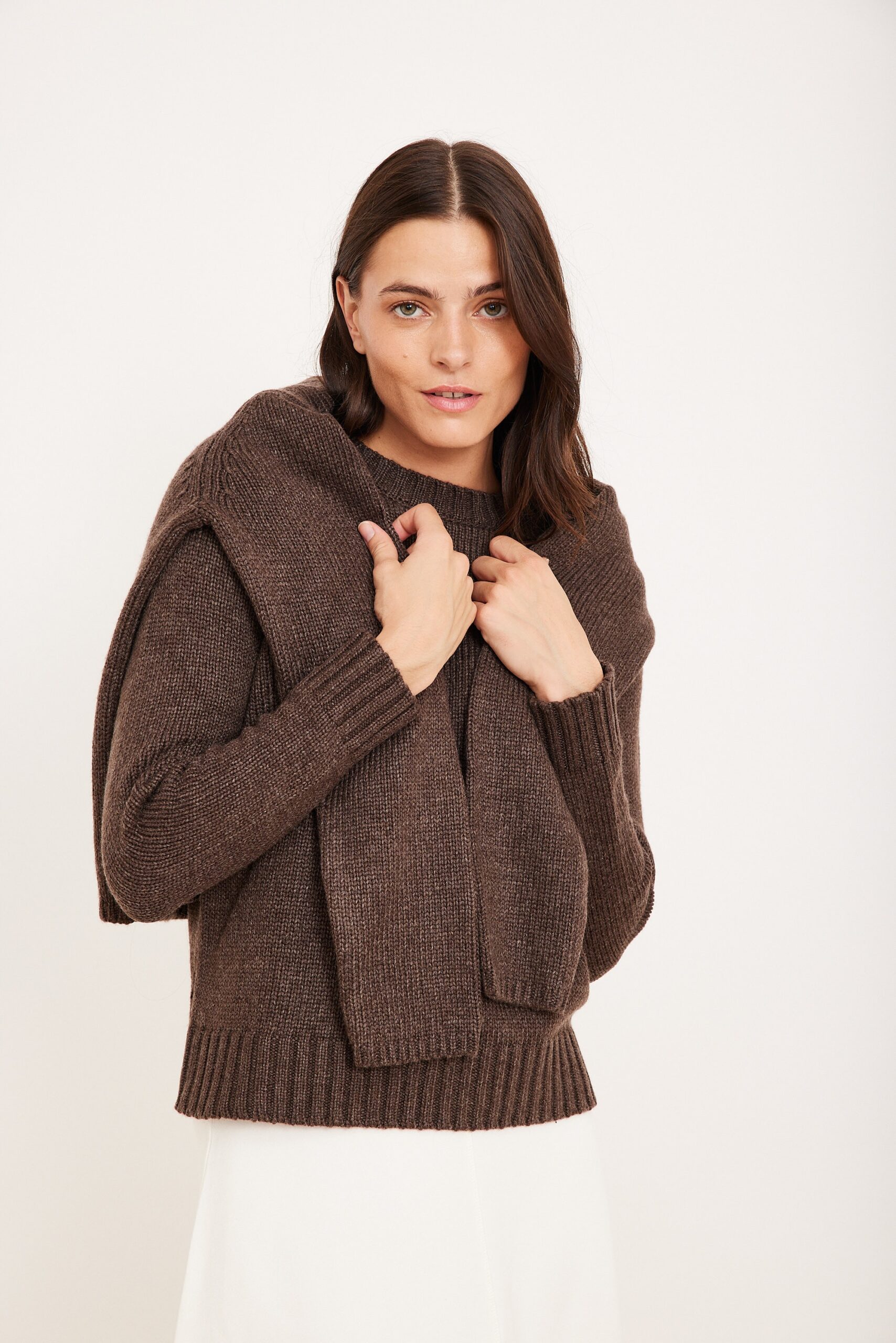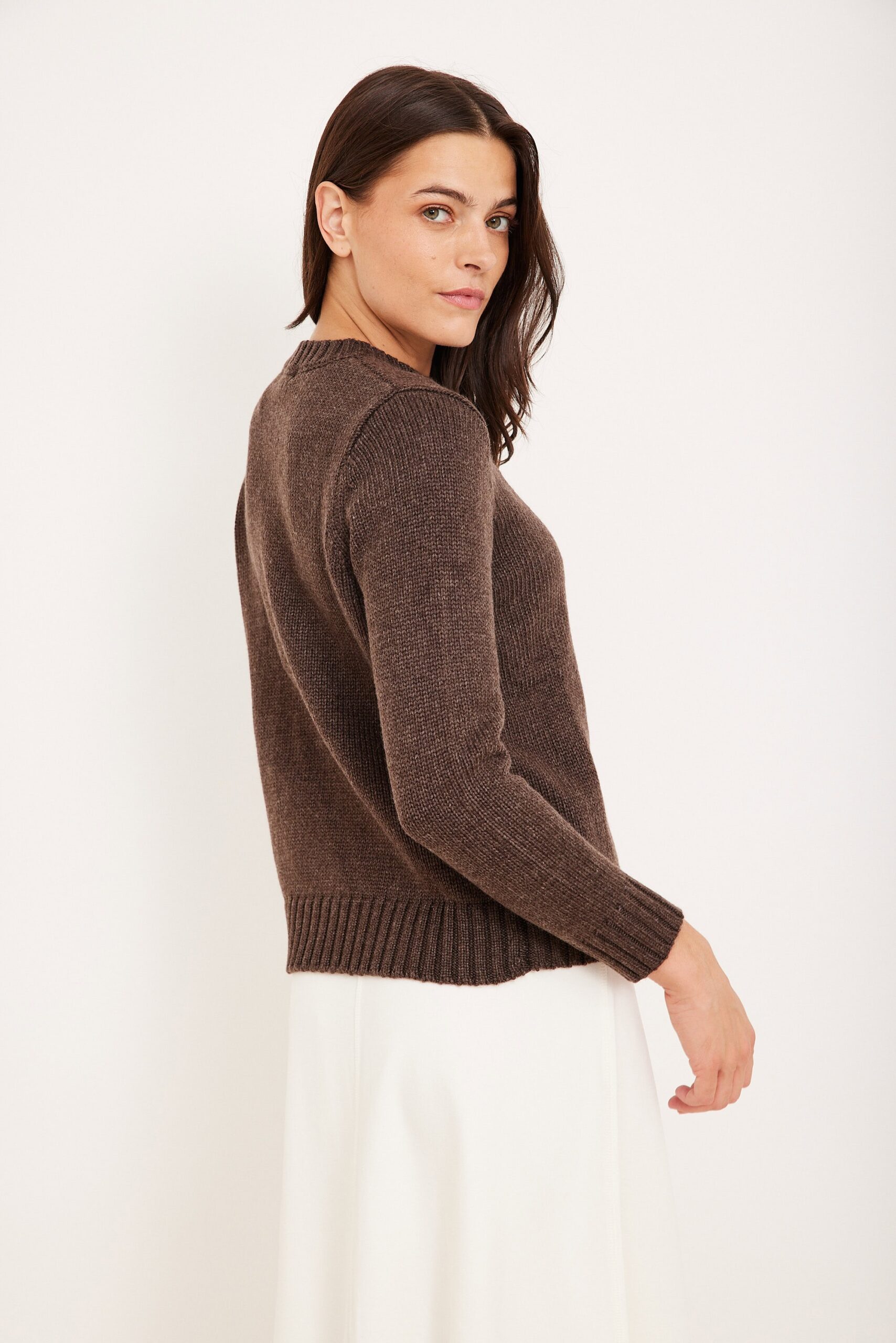 סריג חום בגזרה קלאסית ונוחה, עם מרקם רך וסיומי ריב שמוסיפים טאצ’ נקי ומדויק.
