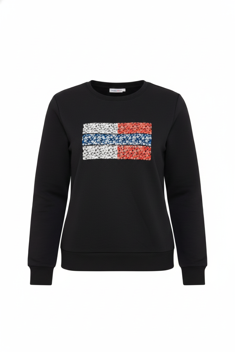 חולצת פוטר עם רקמה מרובעת פרחים קטנים