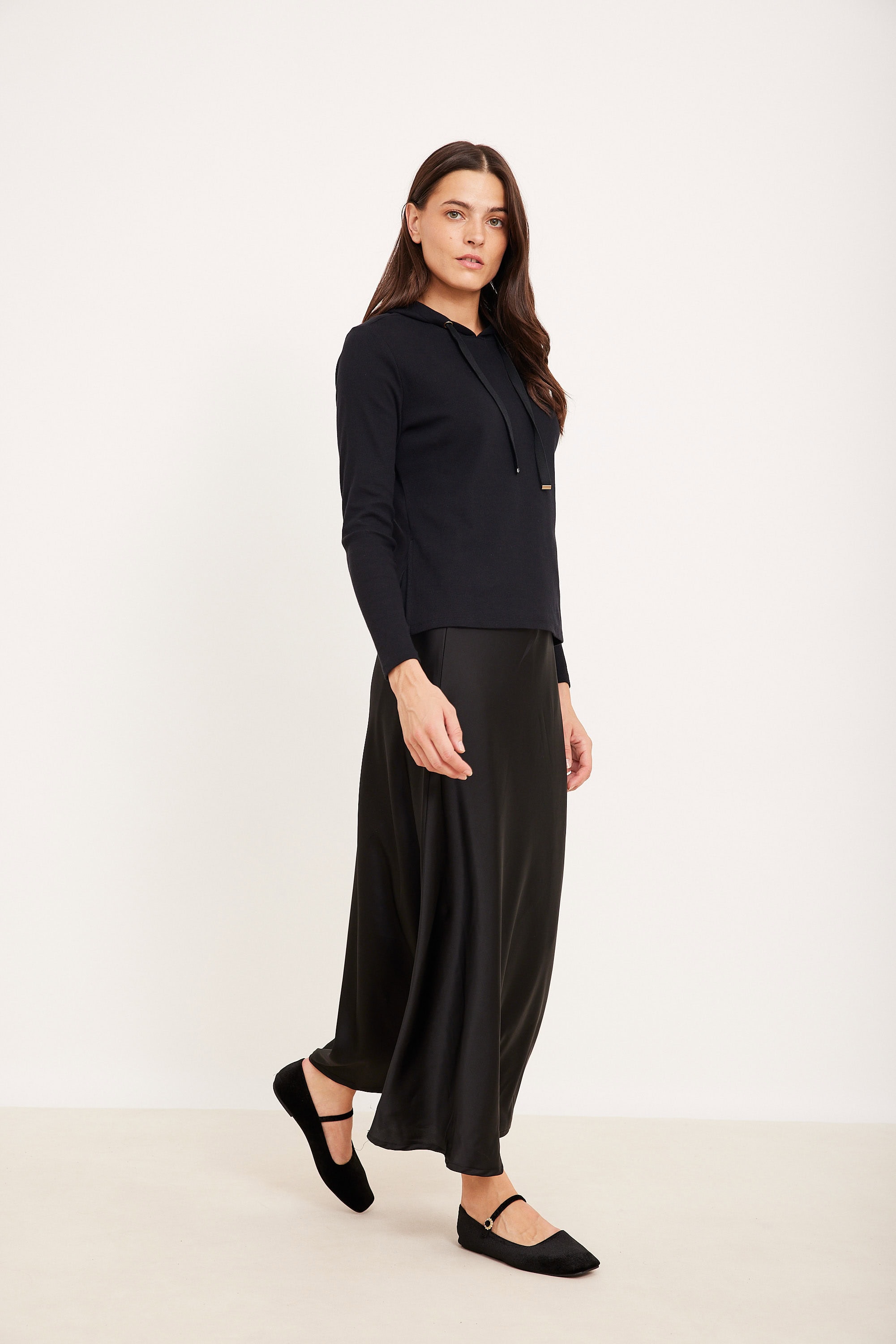 חצאית שחורה ארוכה חיתוכים