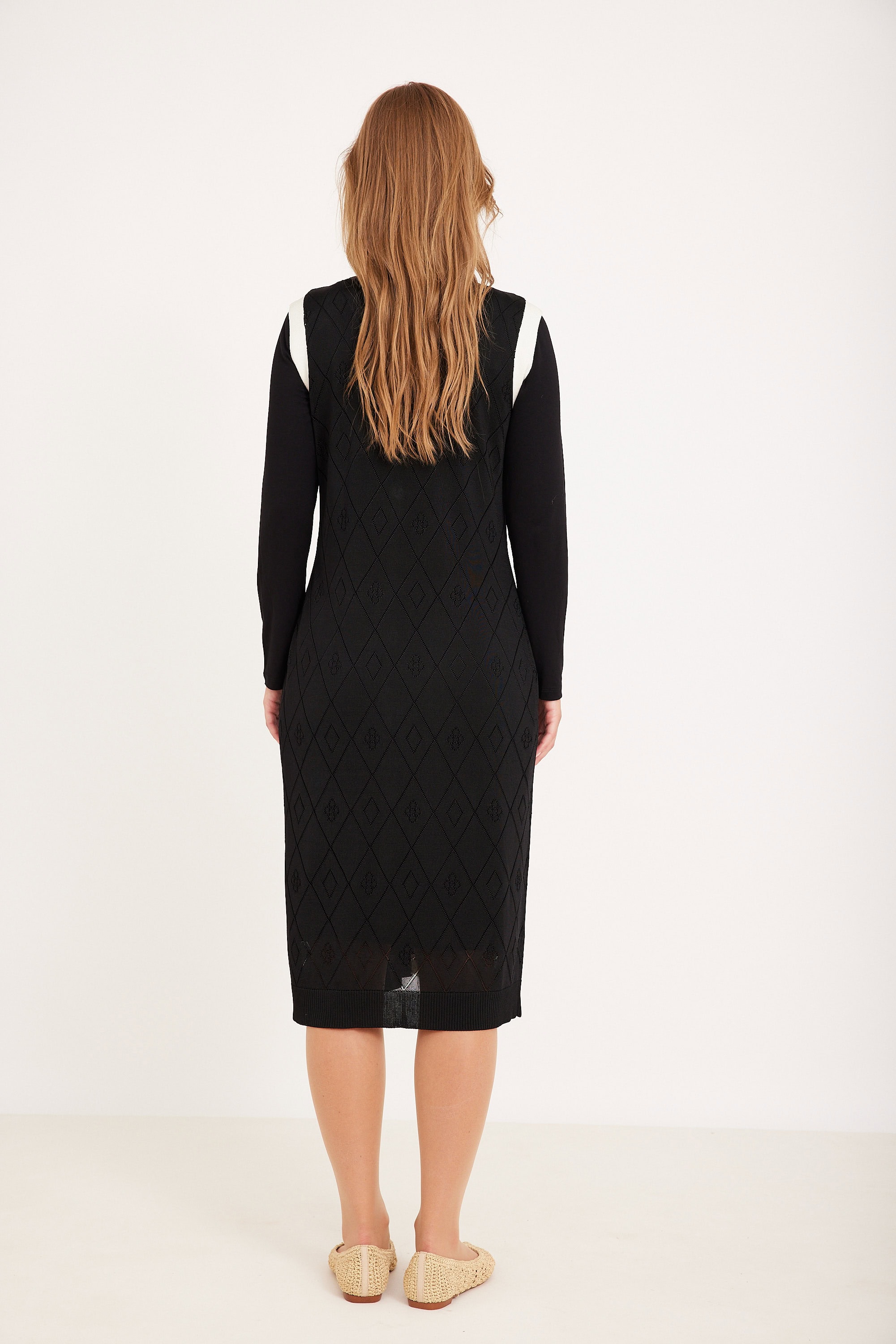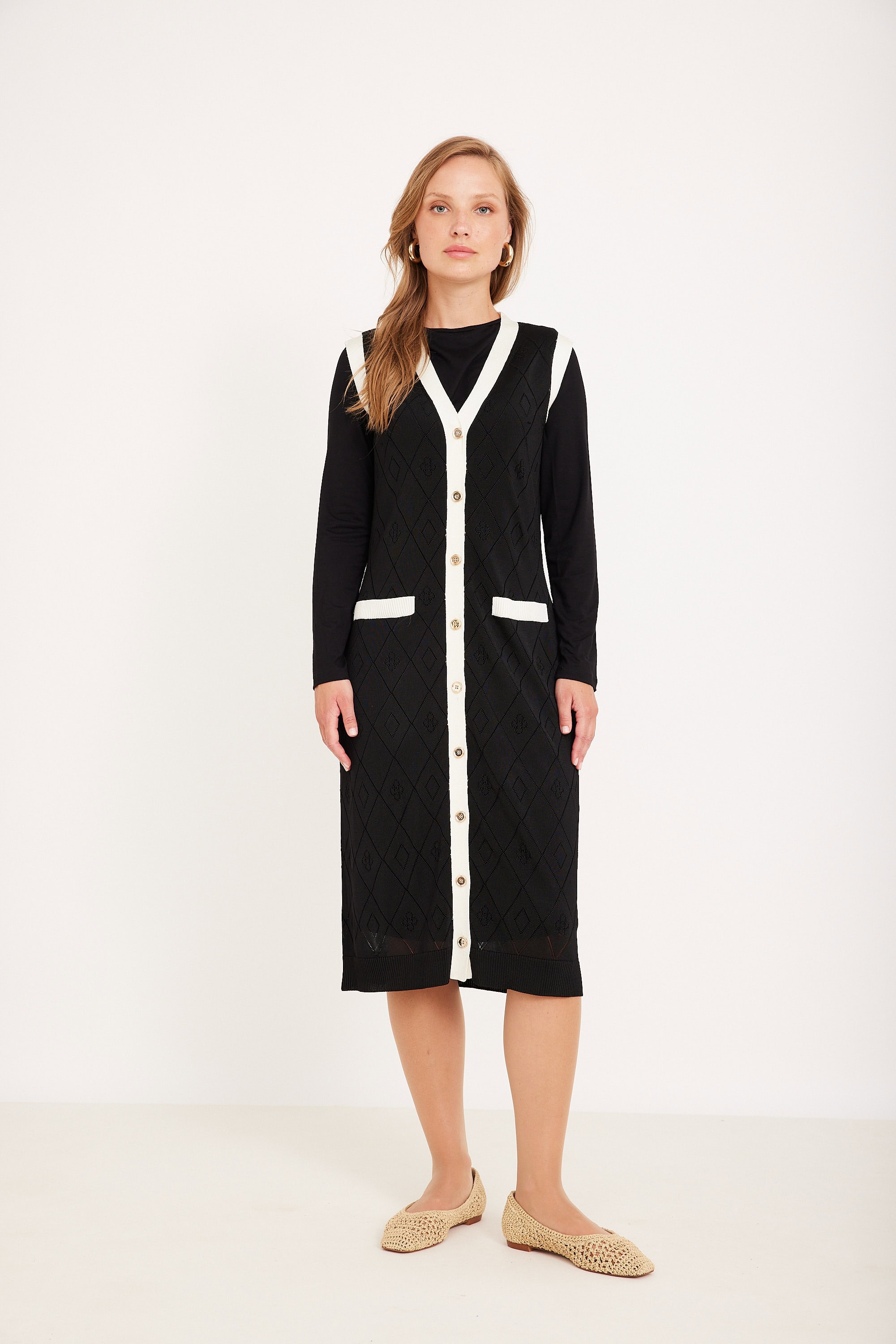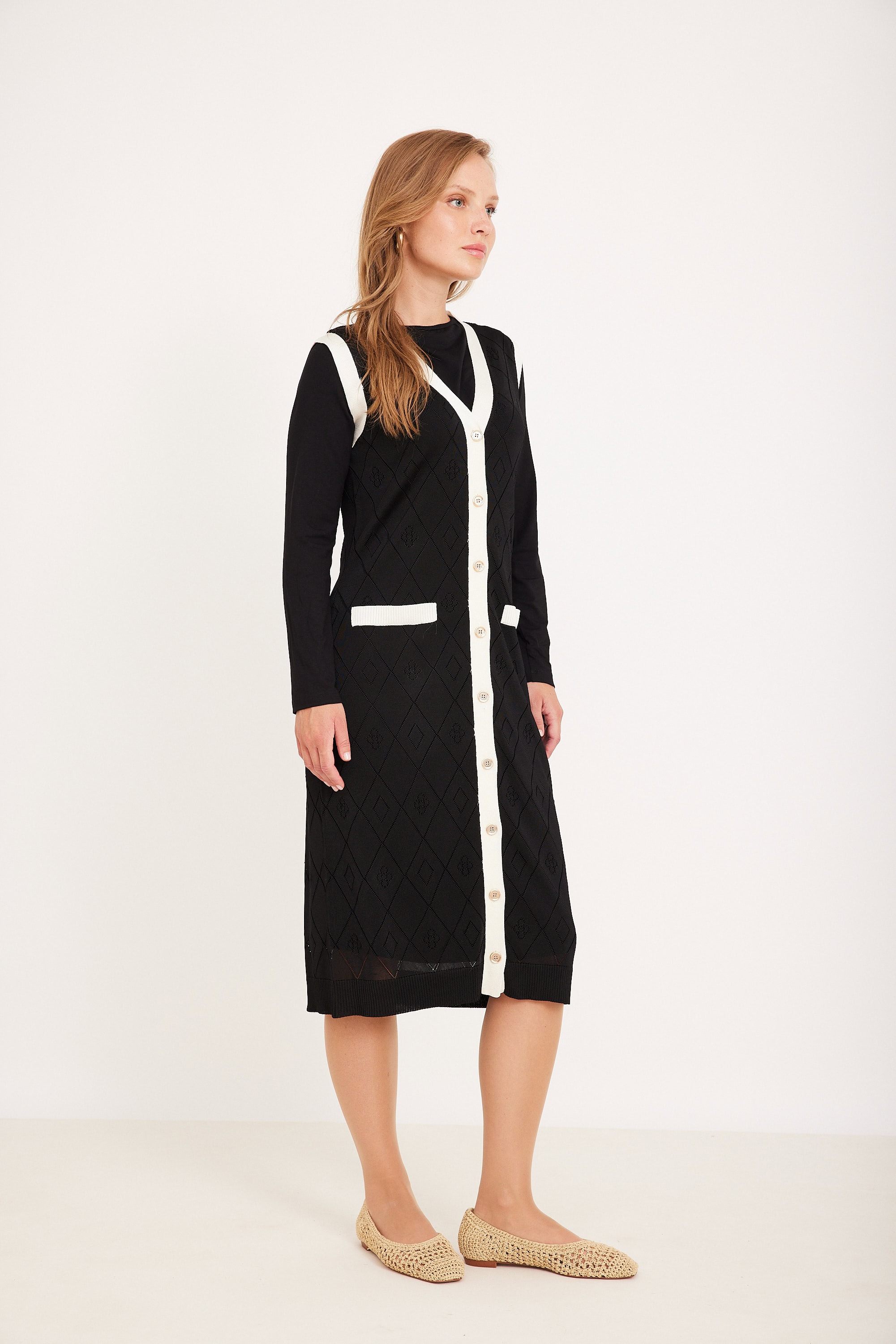 קרדיגן ארוך סריג דק עם חורים