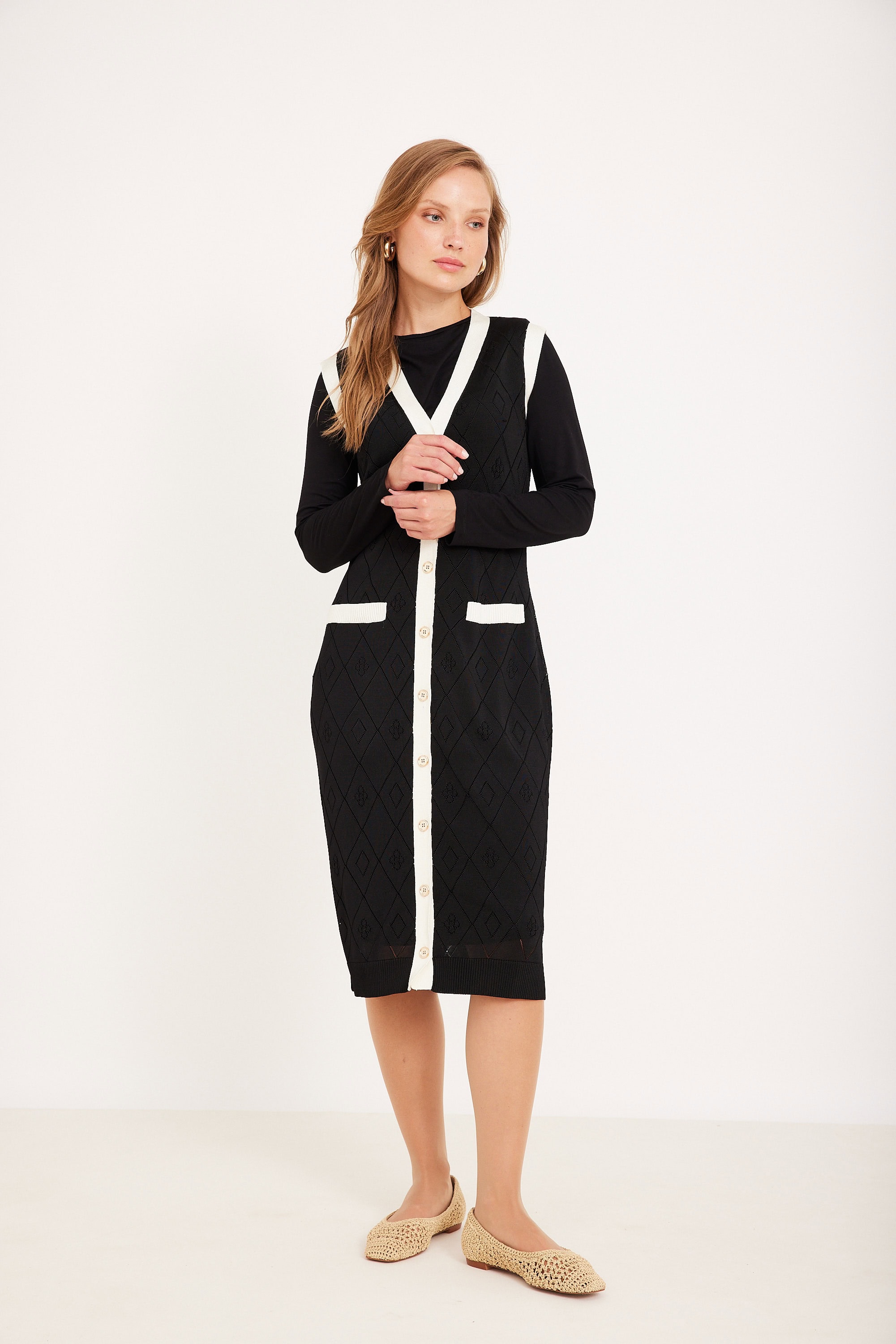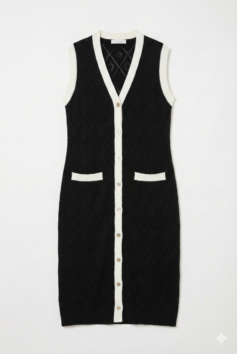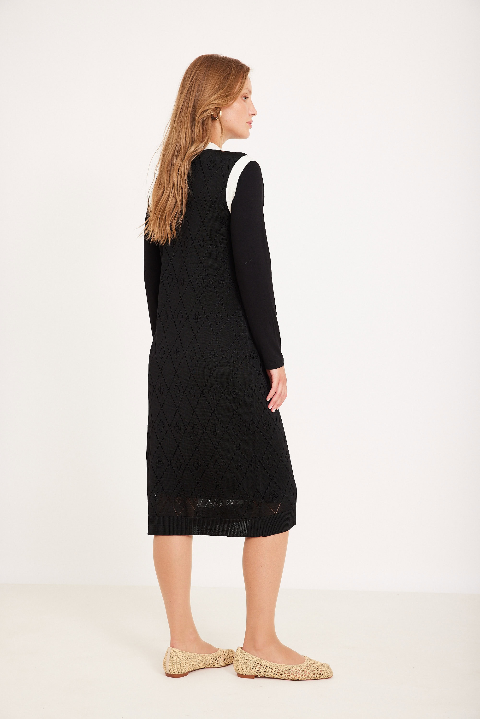 קרדיגן ארוך סריג דק עם חורים