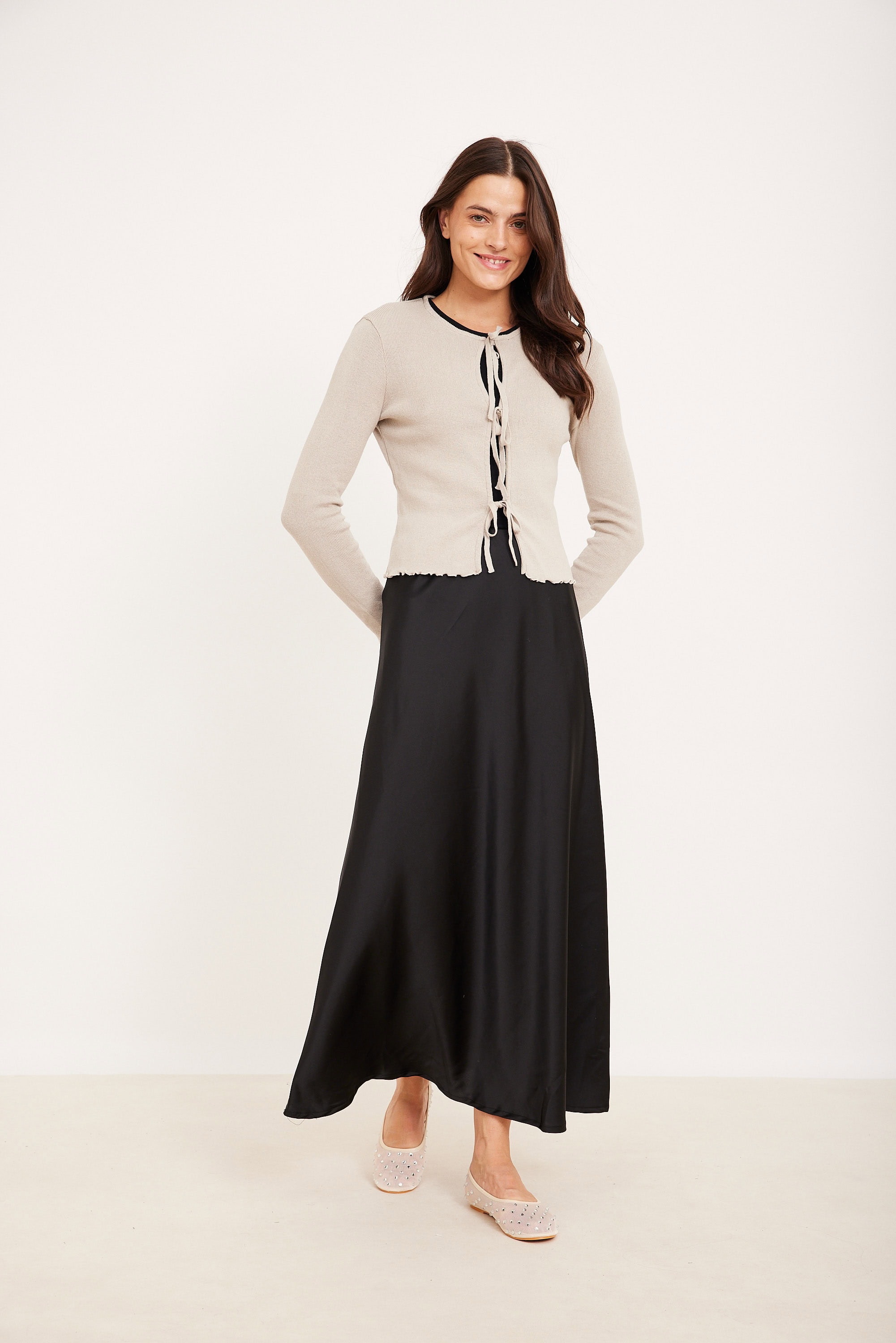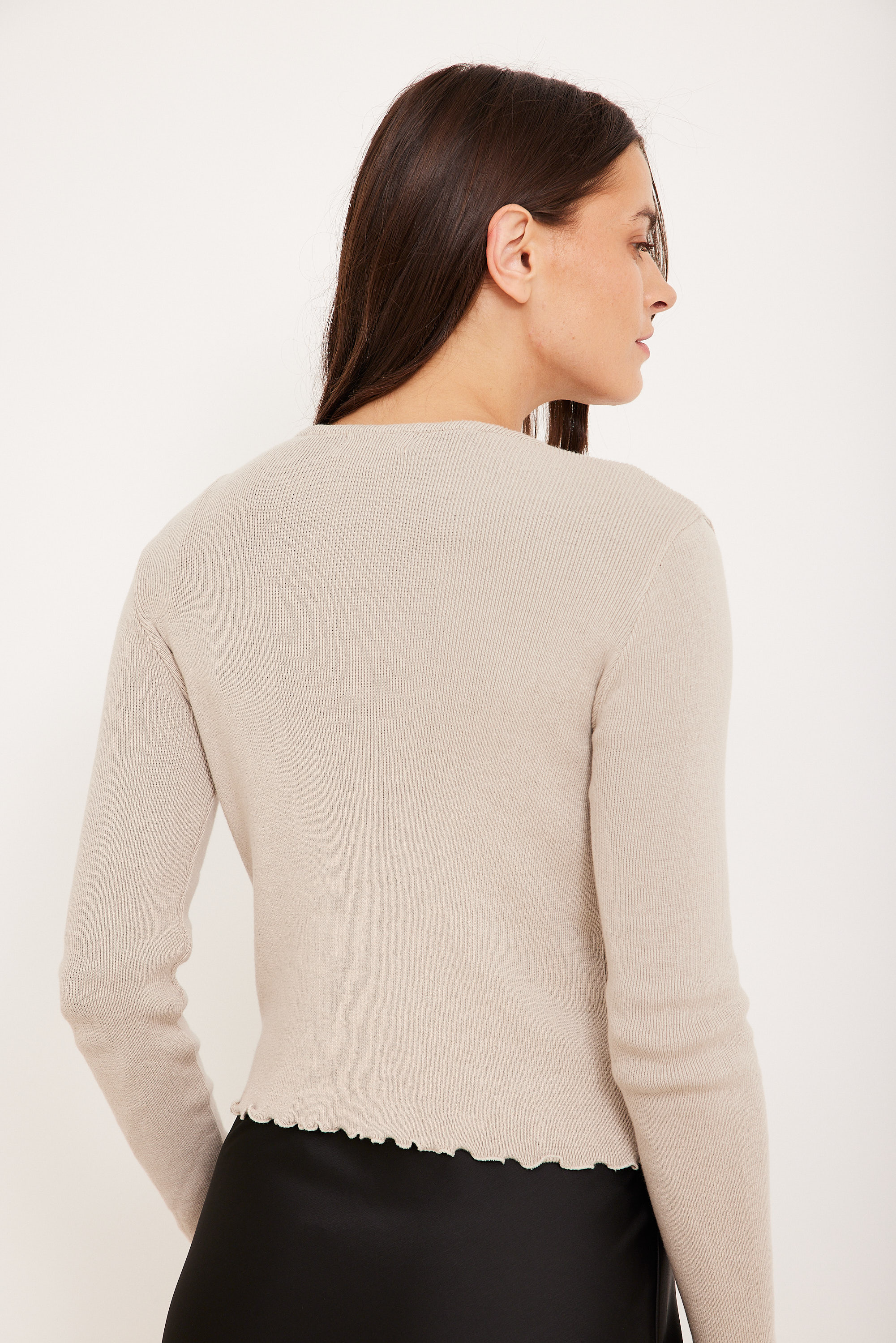 שולי הקרדיגן מעוצבים בגימור “לייטס” עדין,