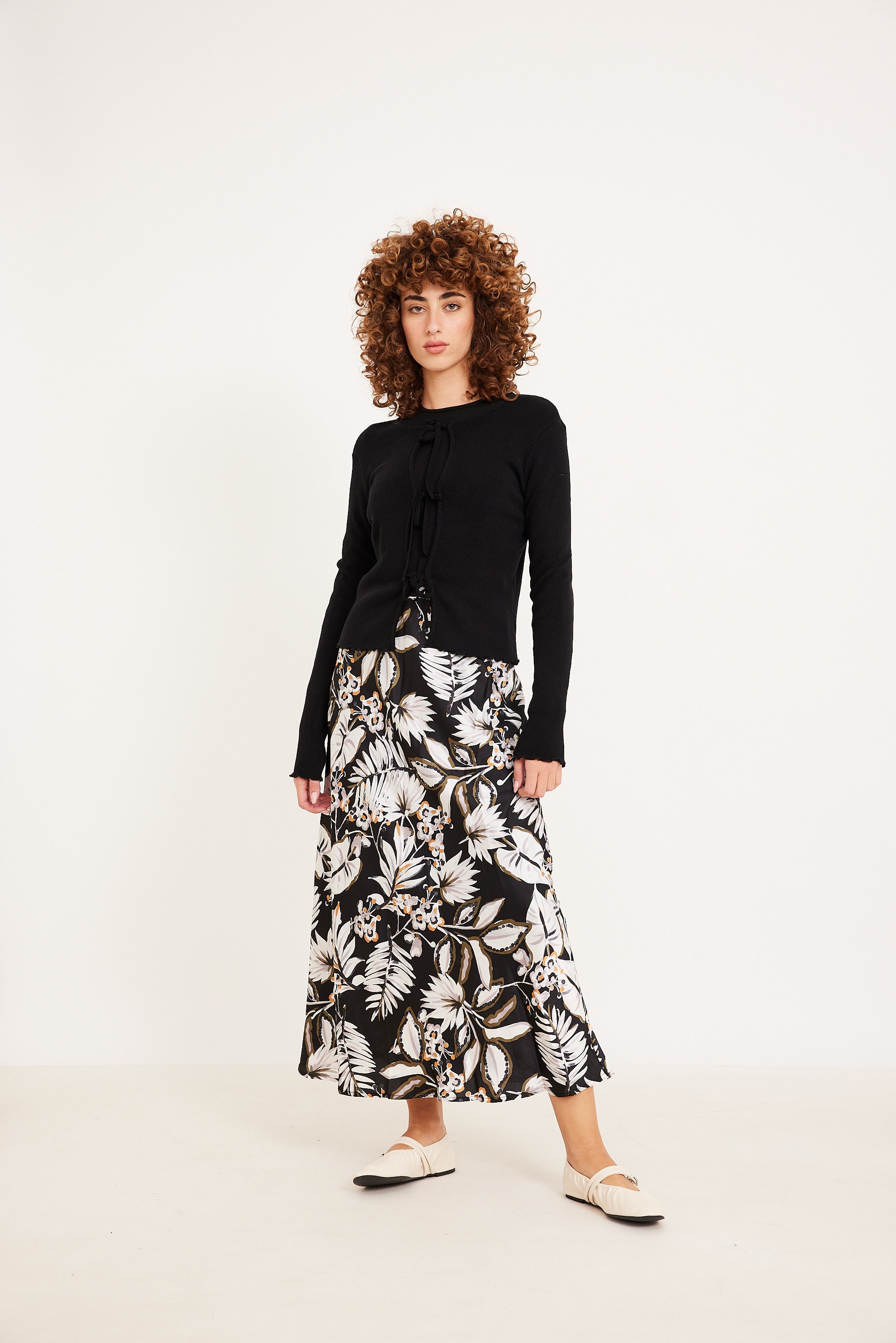 שולי הקרדיגן מעוצבים בגימור “לייטס” עדין,