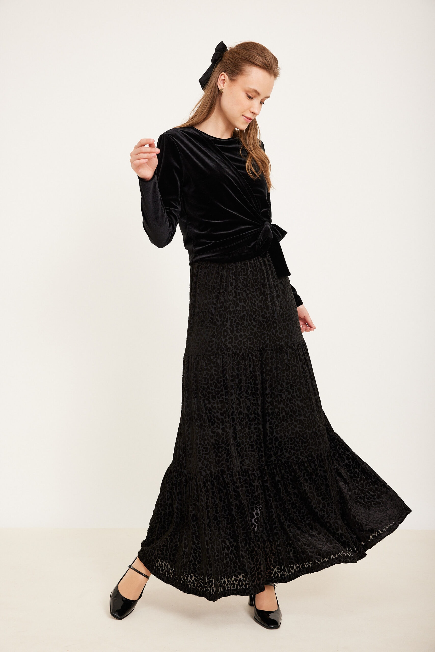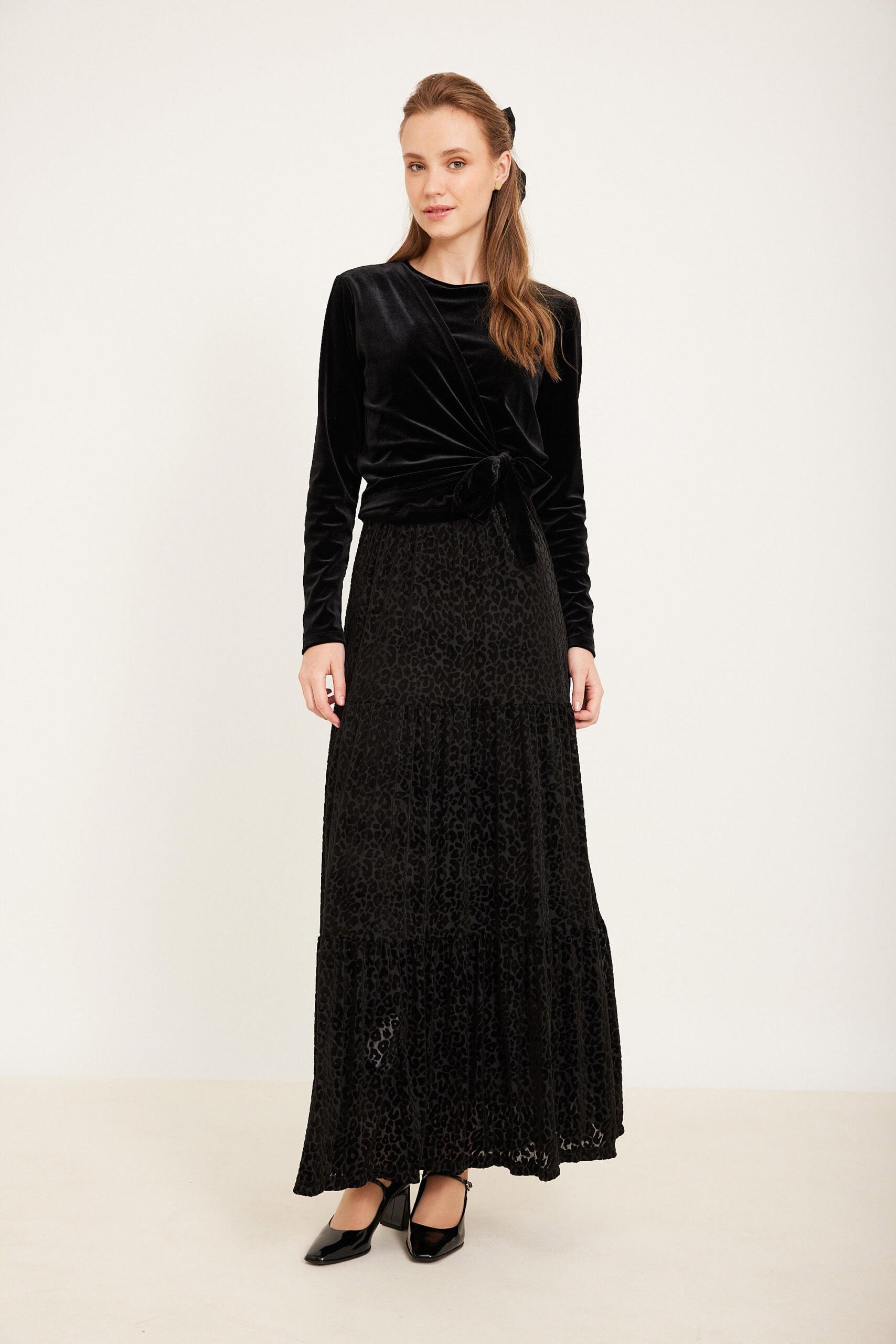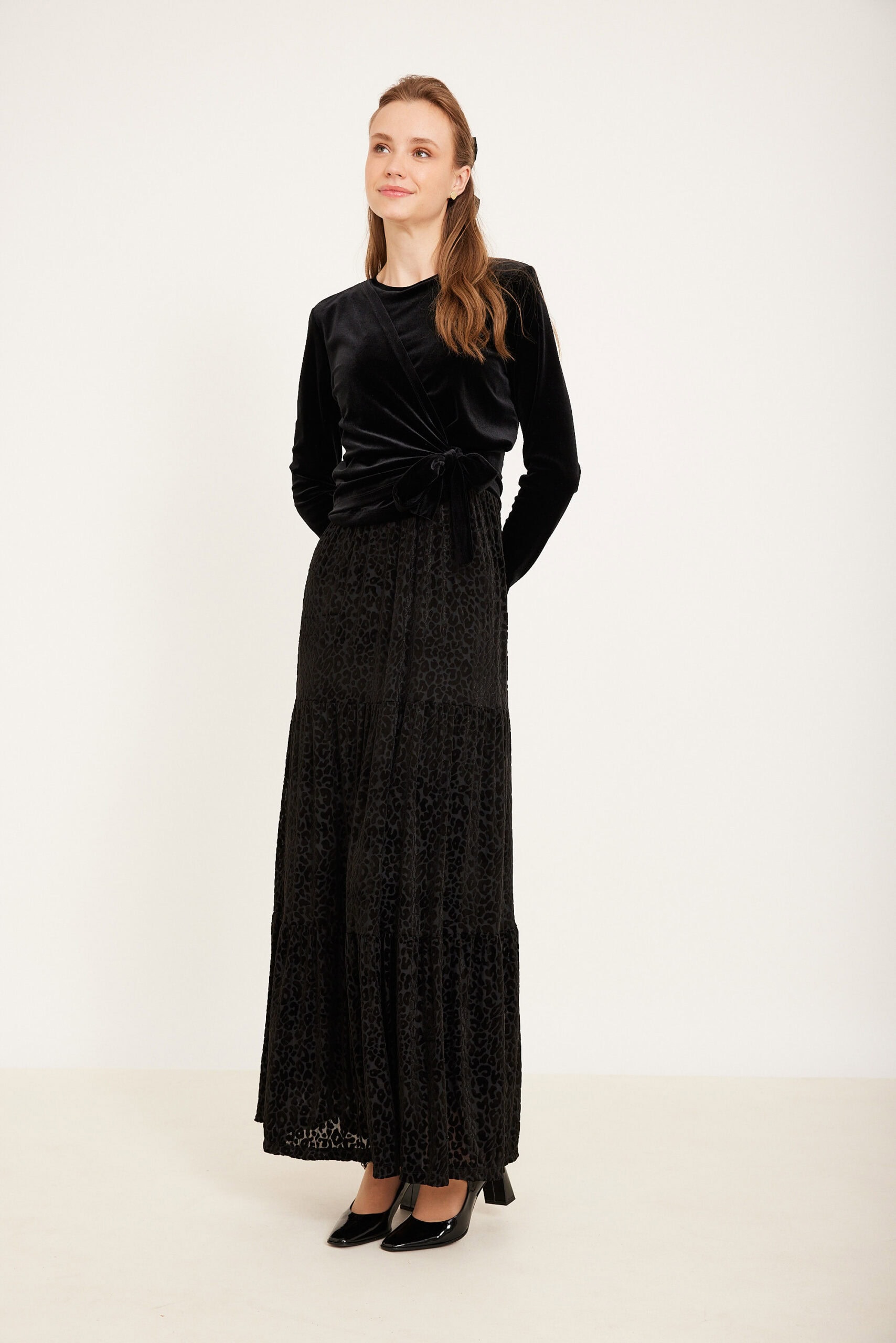 דמוי מעטפה וקומות מבד קטיפה צרוב בטקסטורה מנומרת
