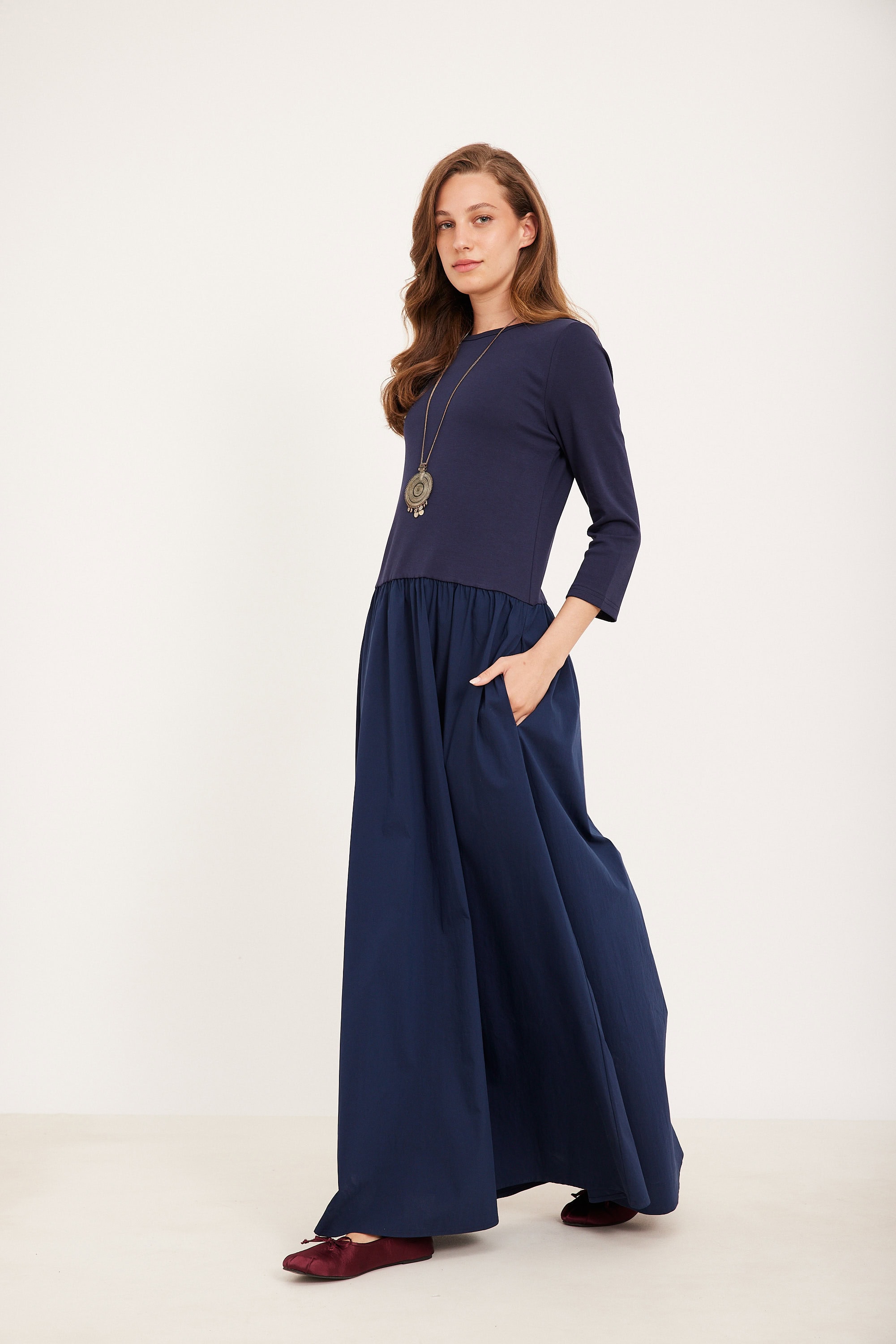 שמלת כיווצים כחולה