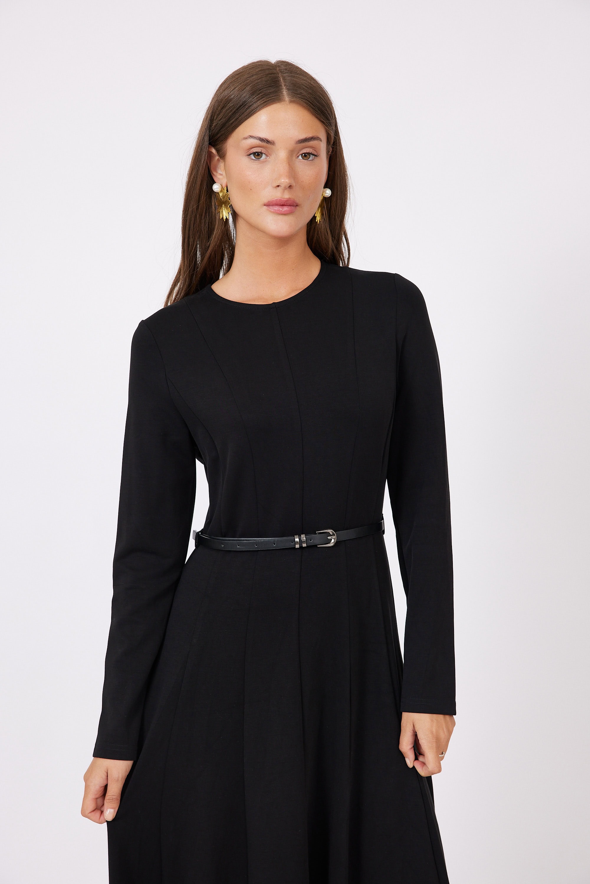 עם חגורה דקה להדגיש את המותן ולוק אלגנטי ונצחי.