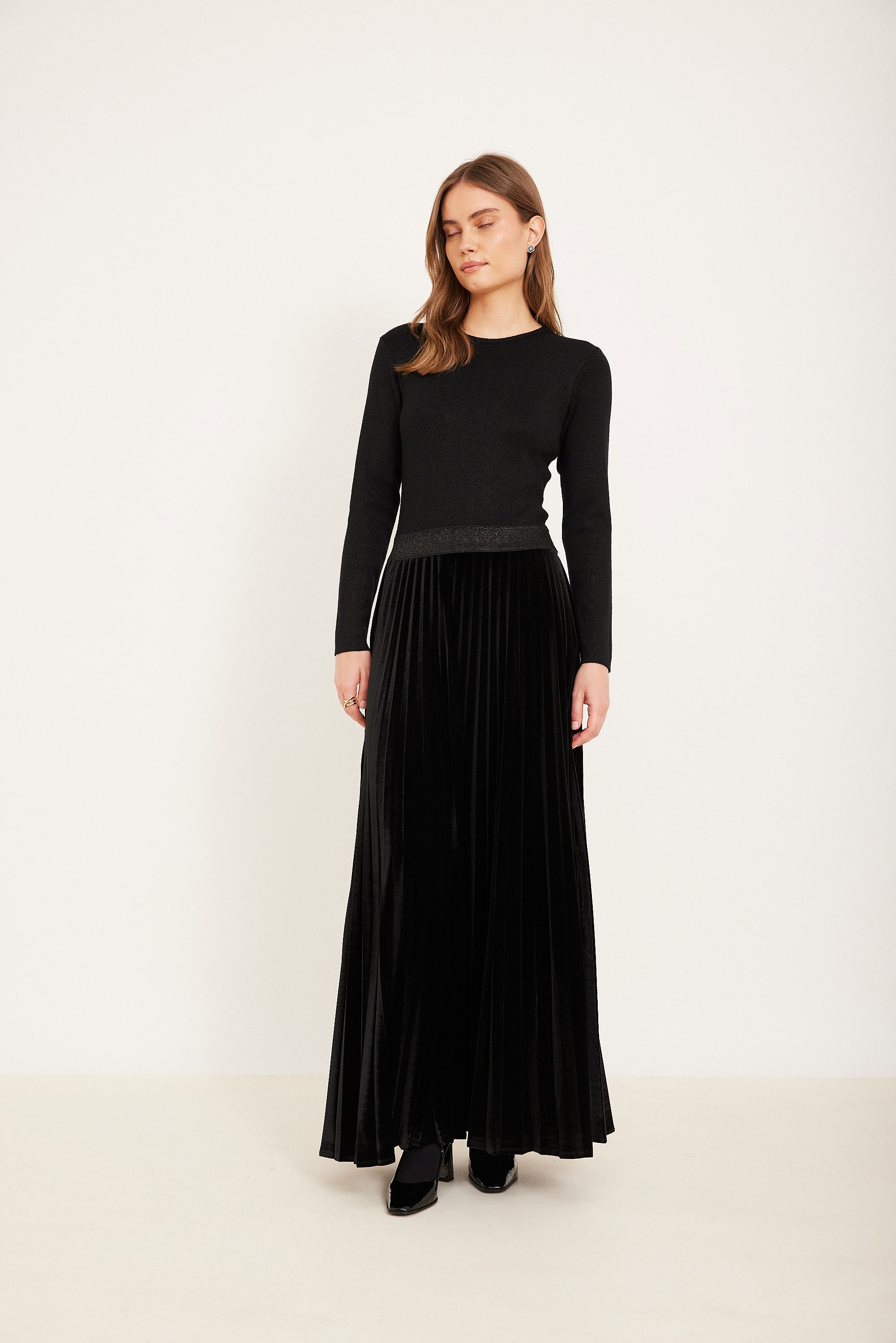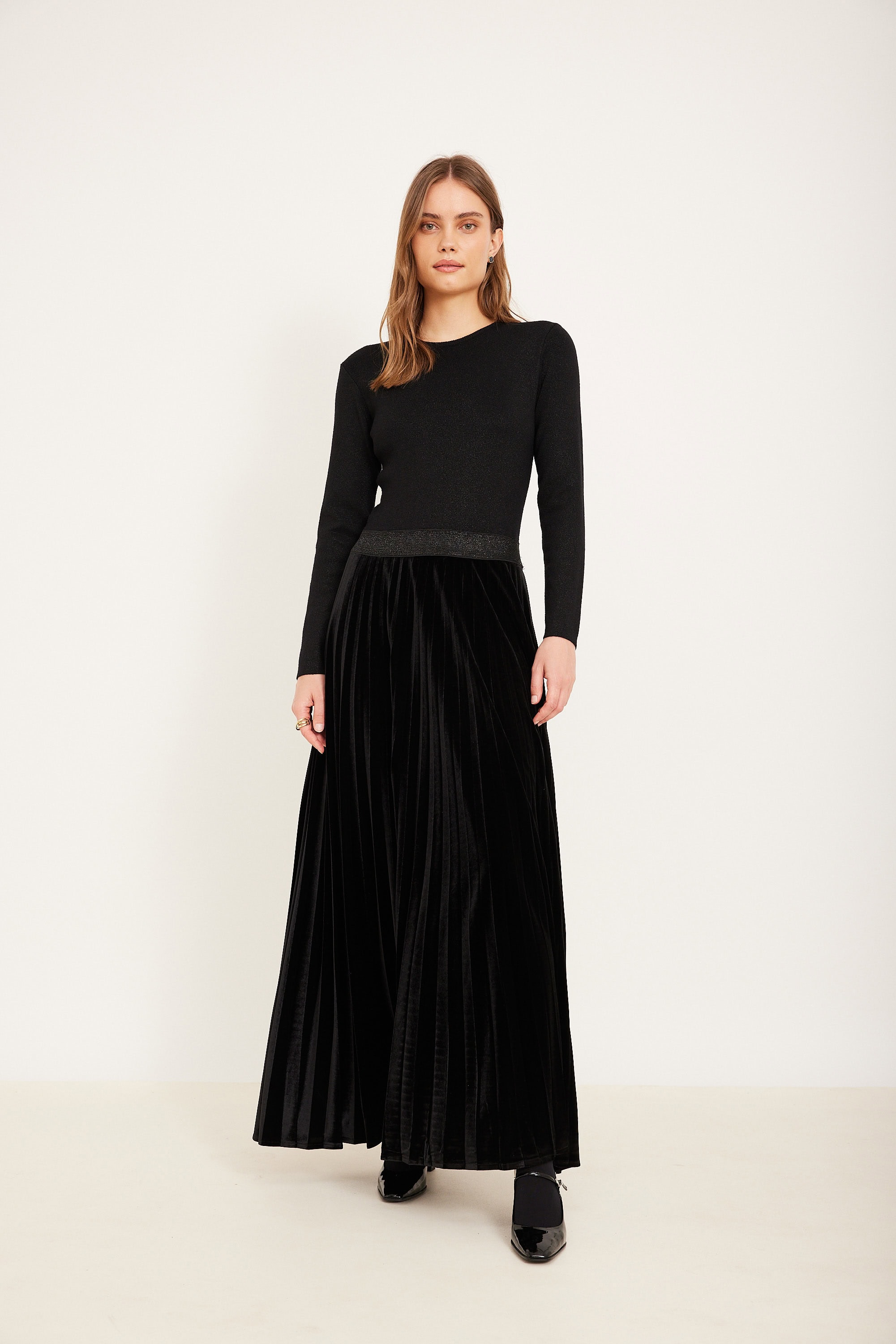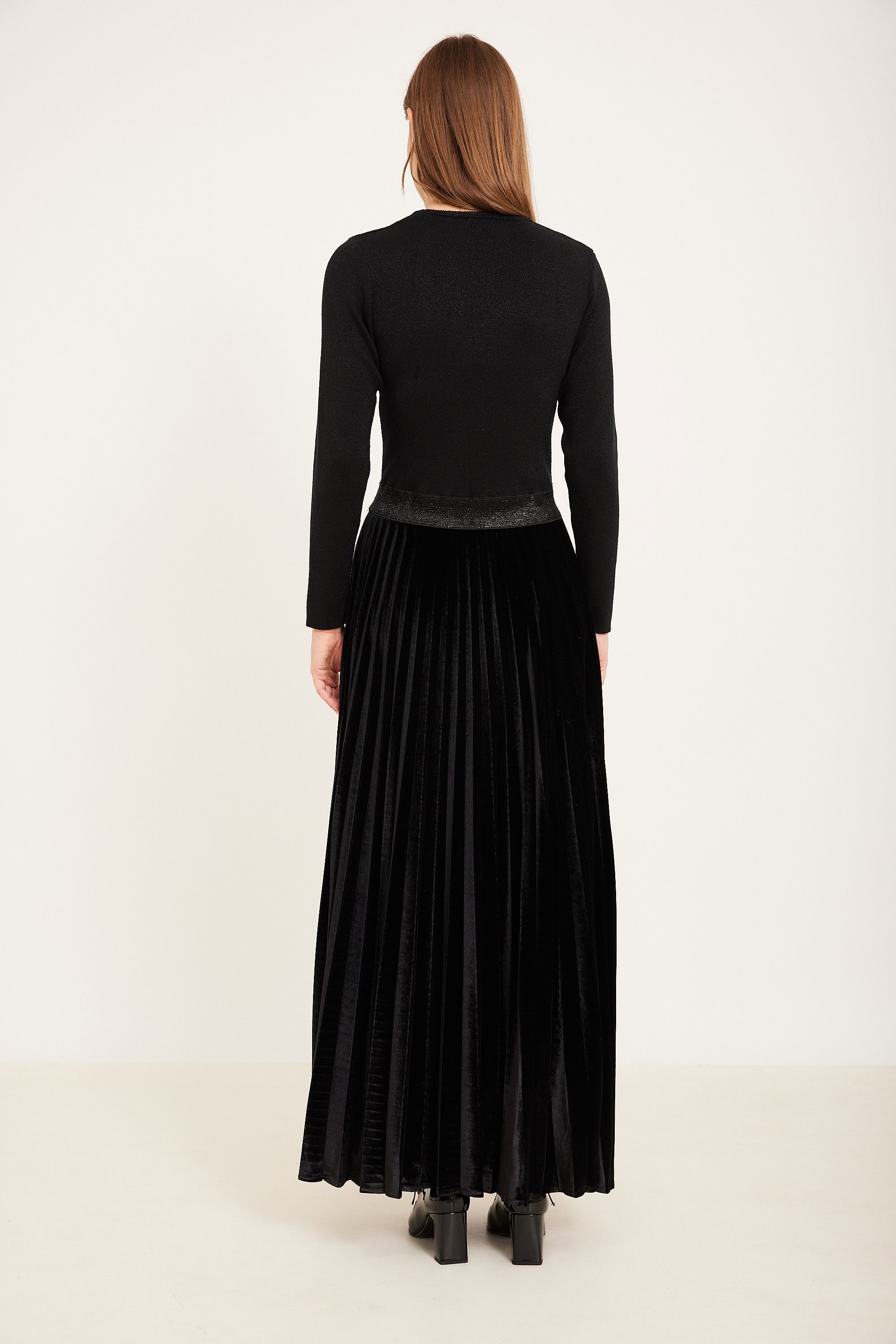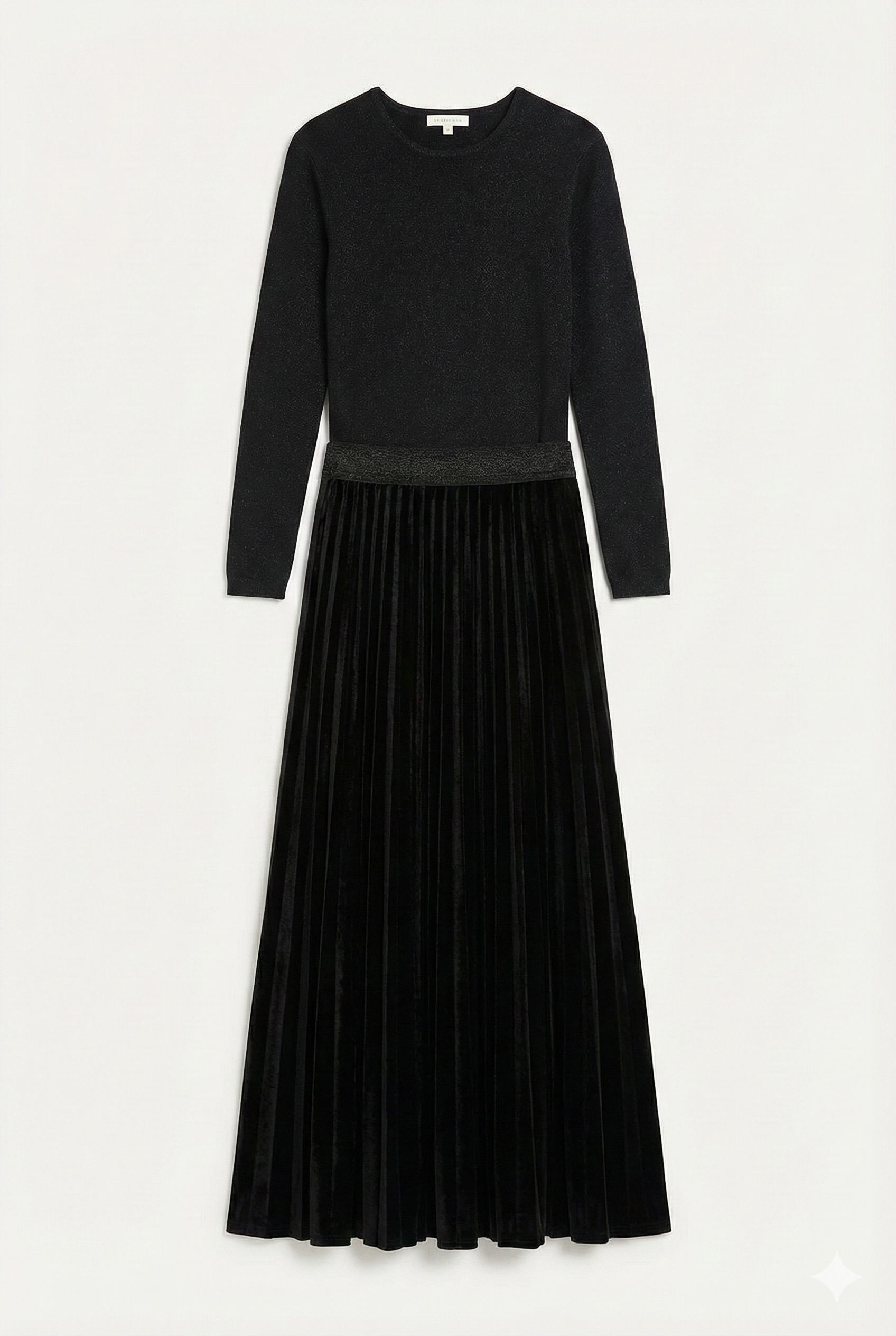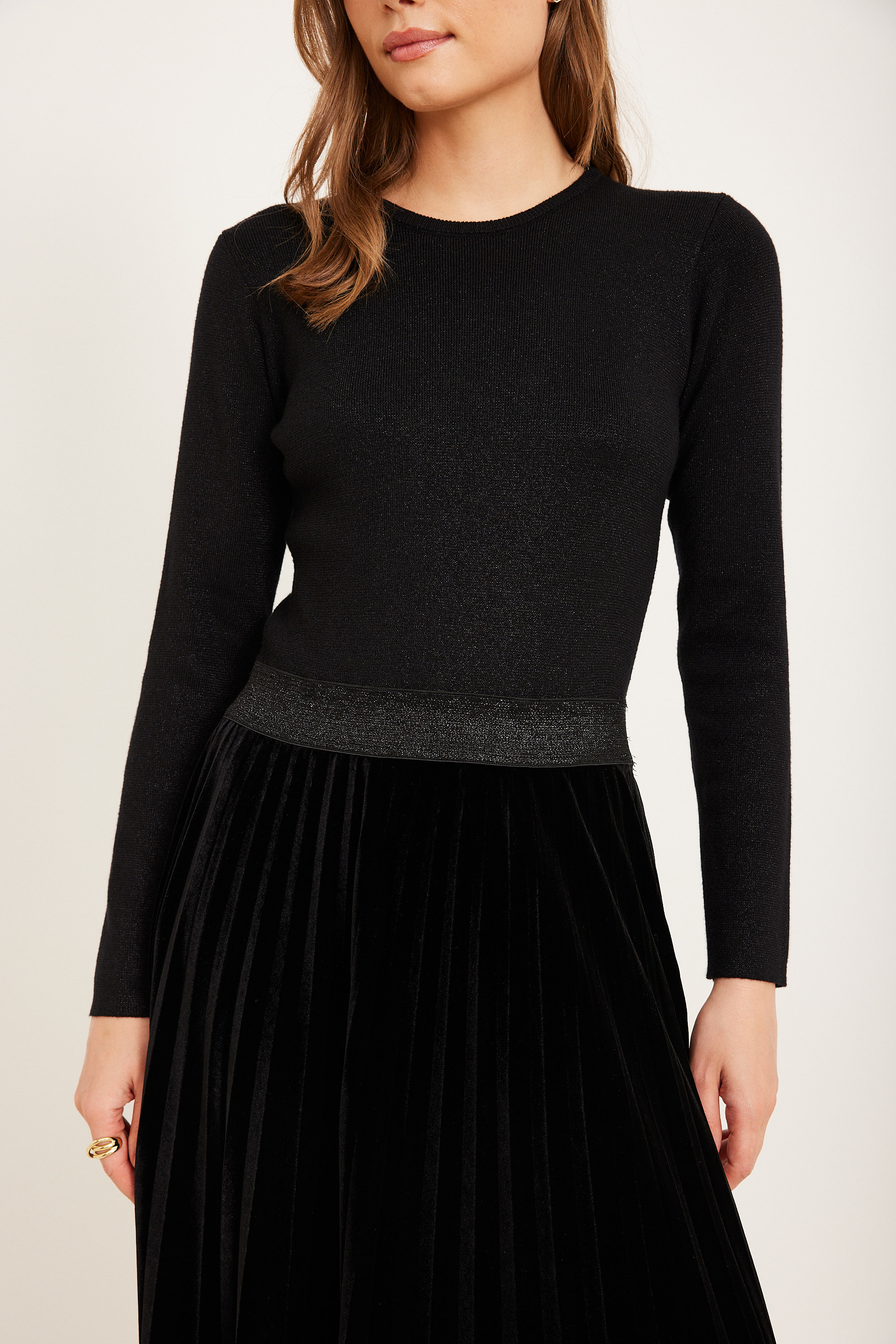 שמלת מארחת בשילוב בד סריג לורקס בחלק העליון
