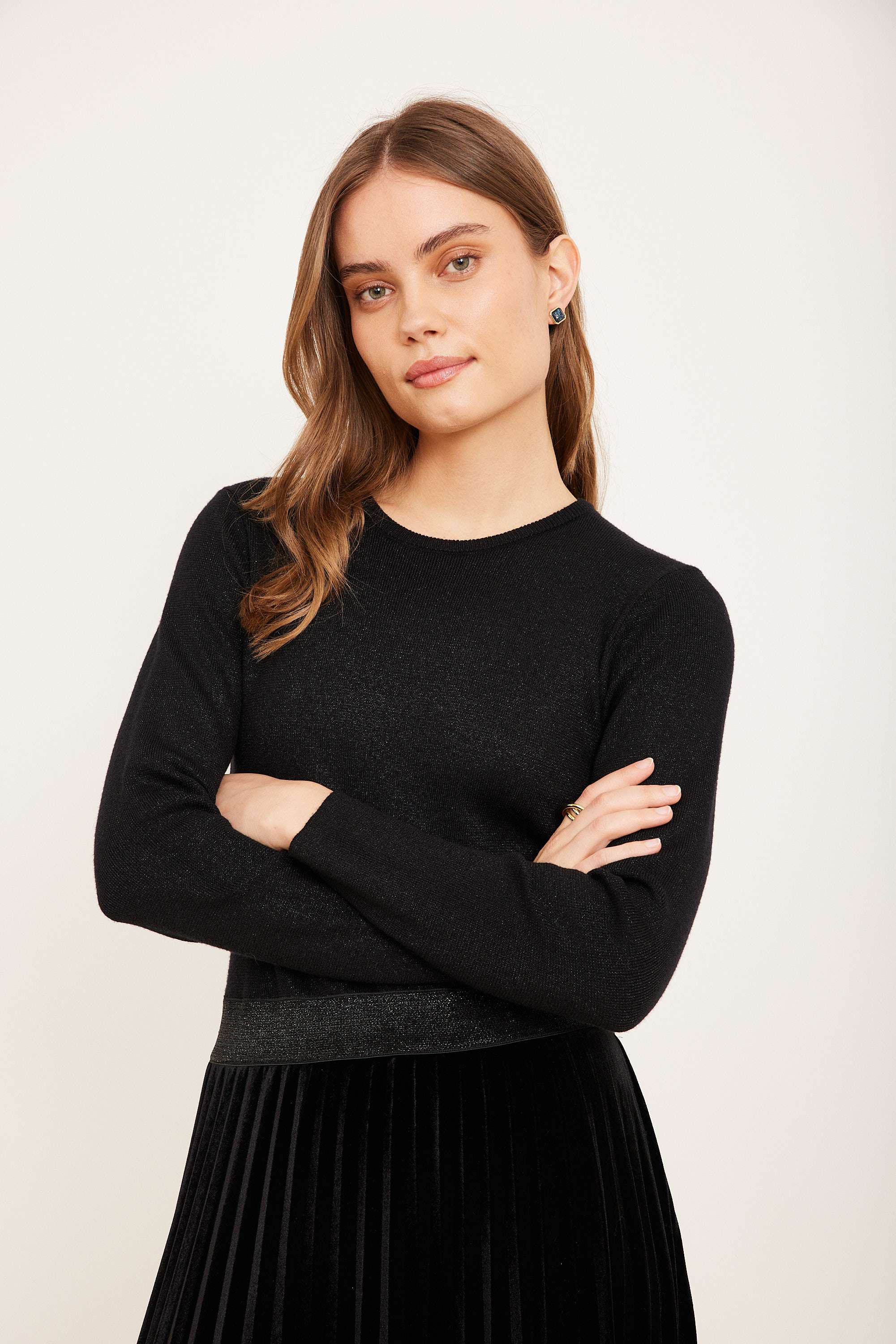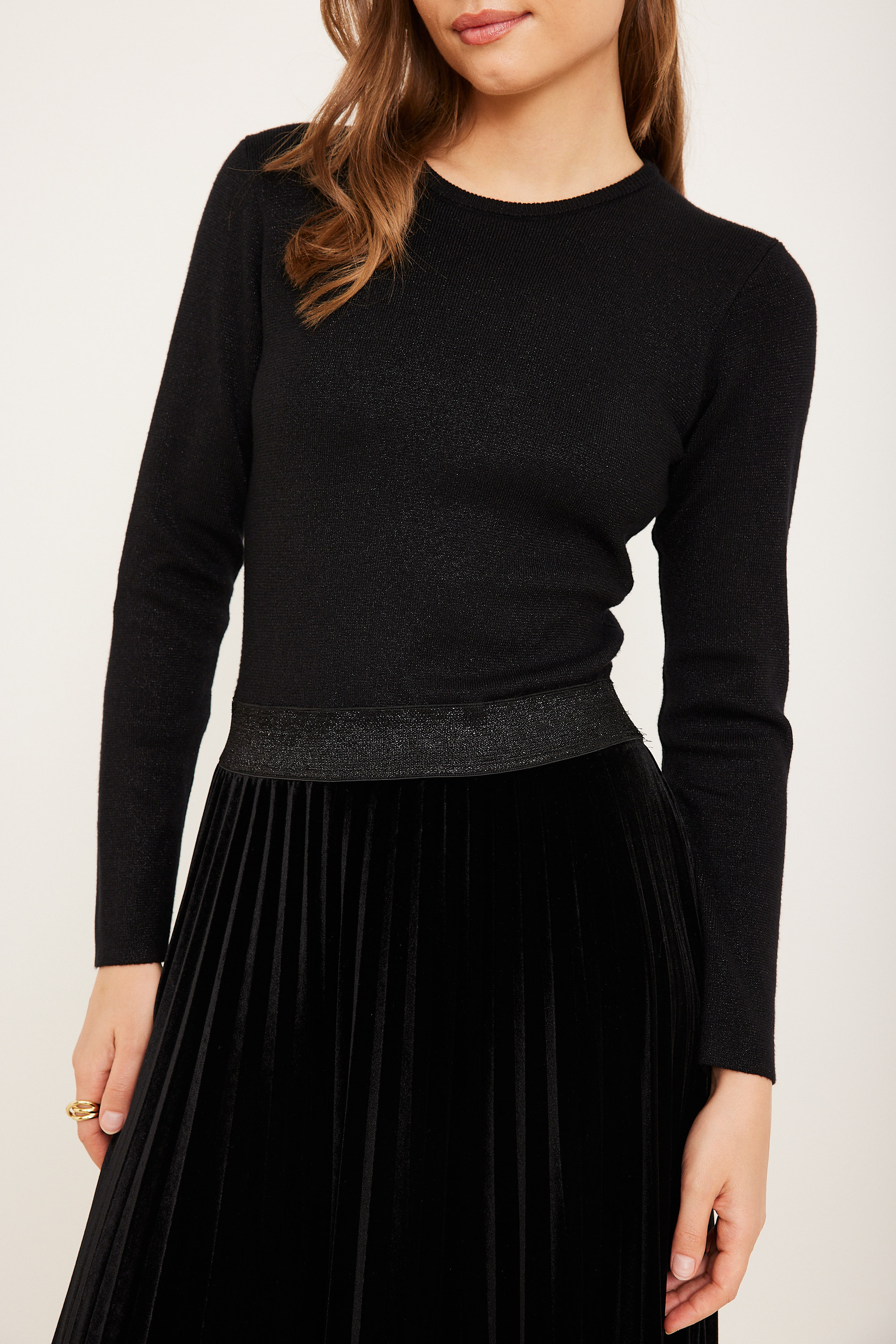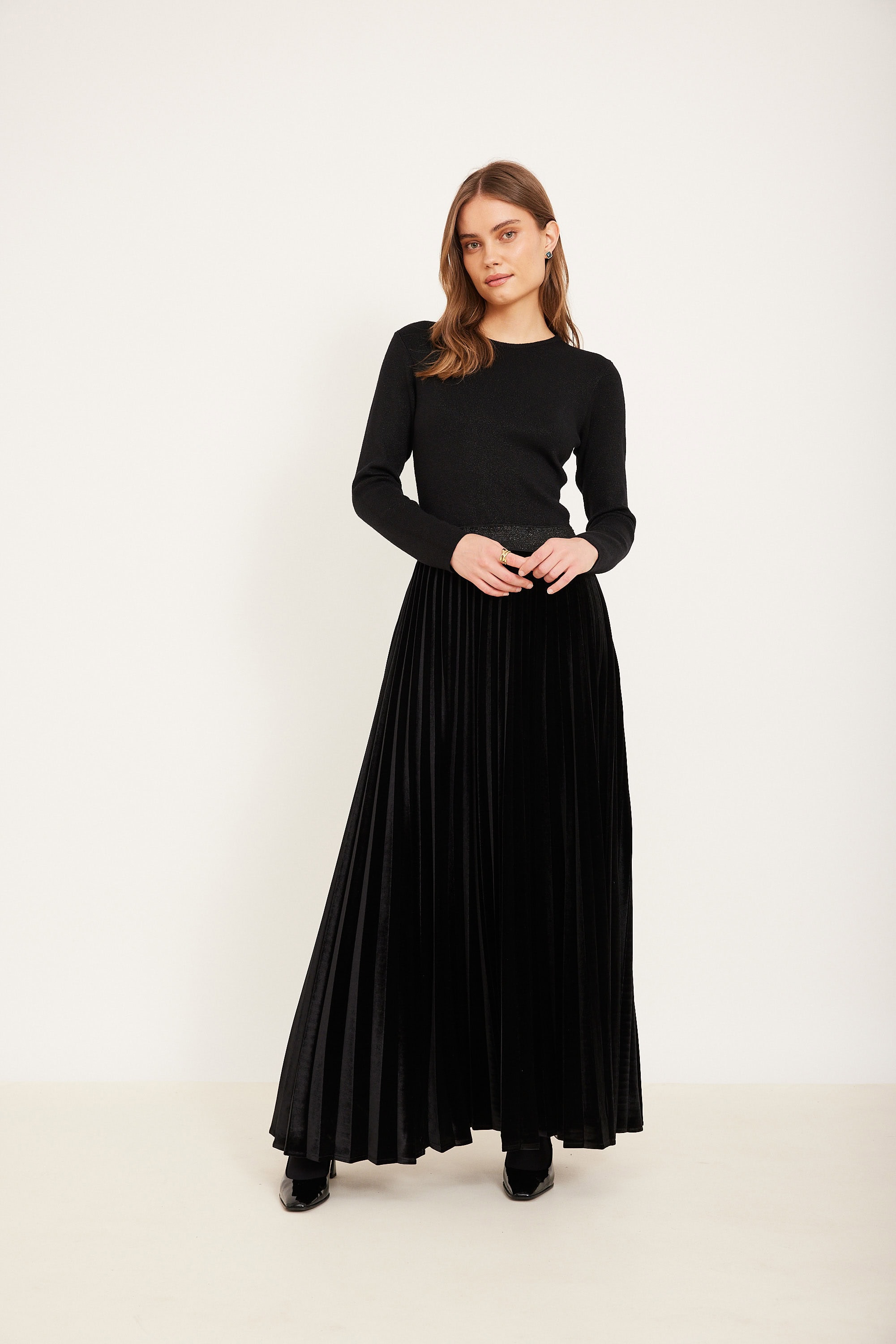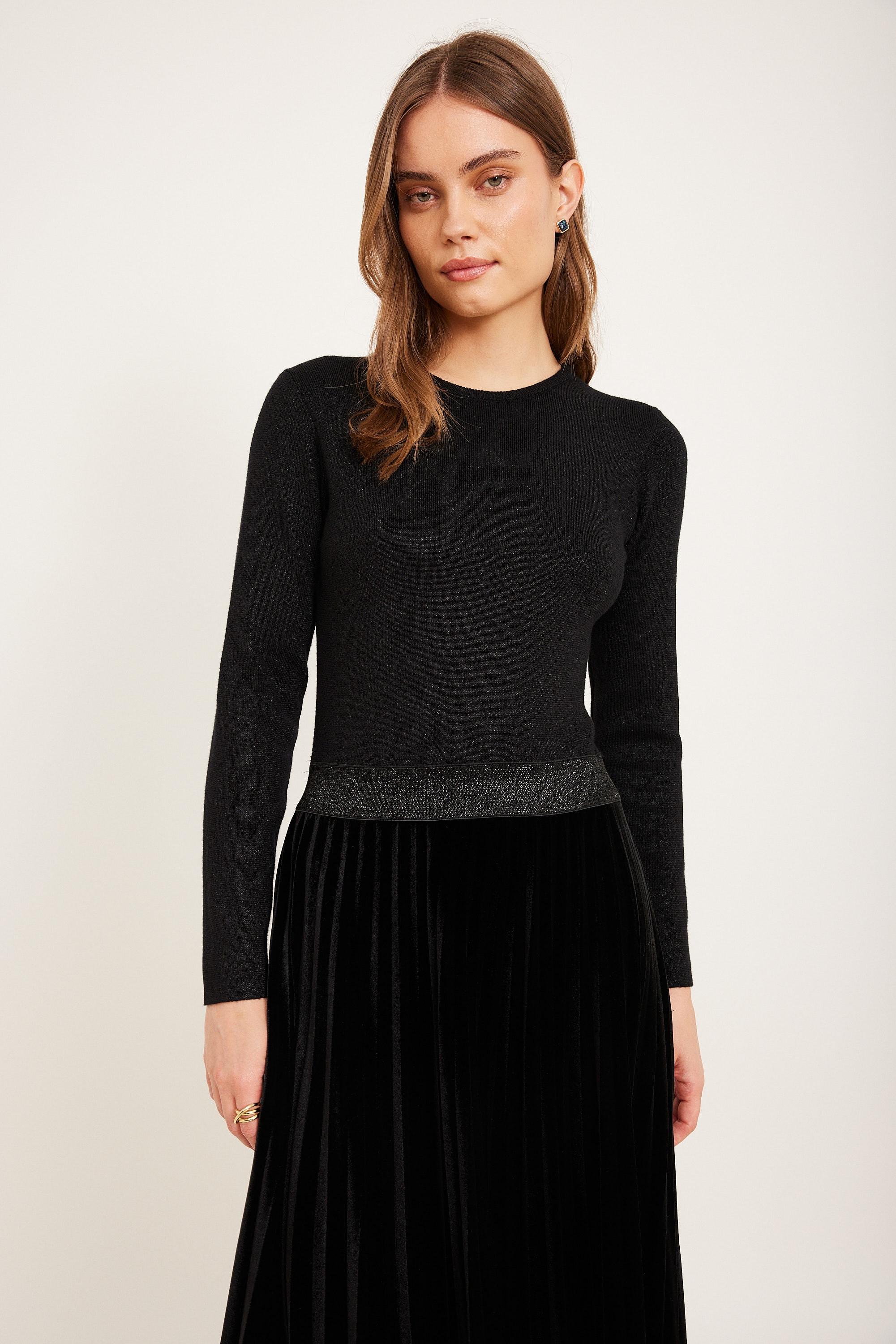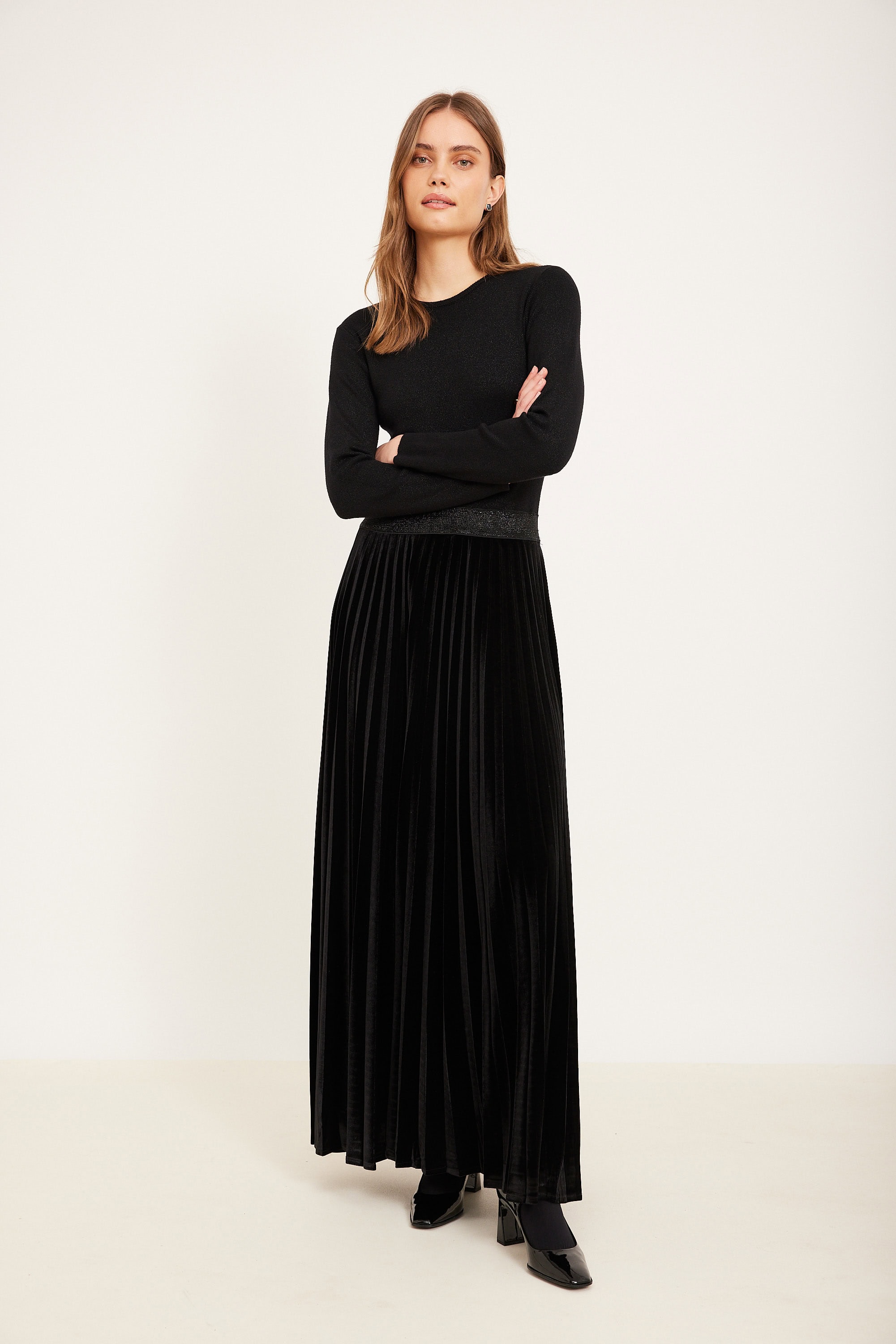 שמלת מארחת בשילוב בד סריג לורקס בחלק העליון