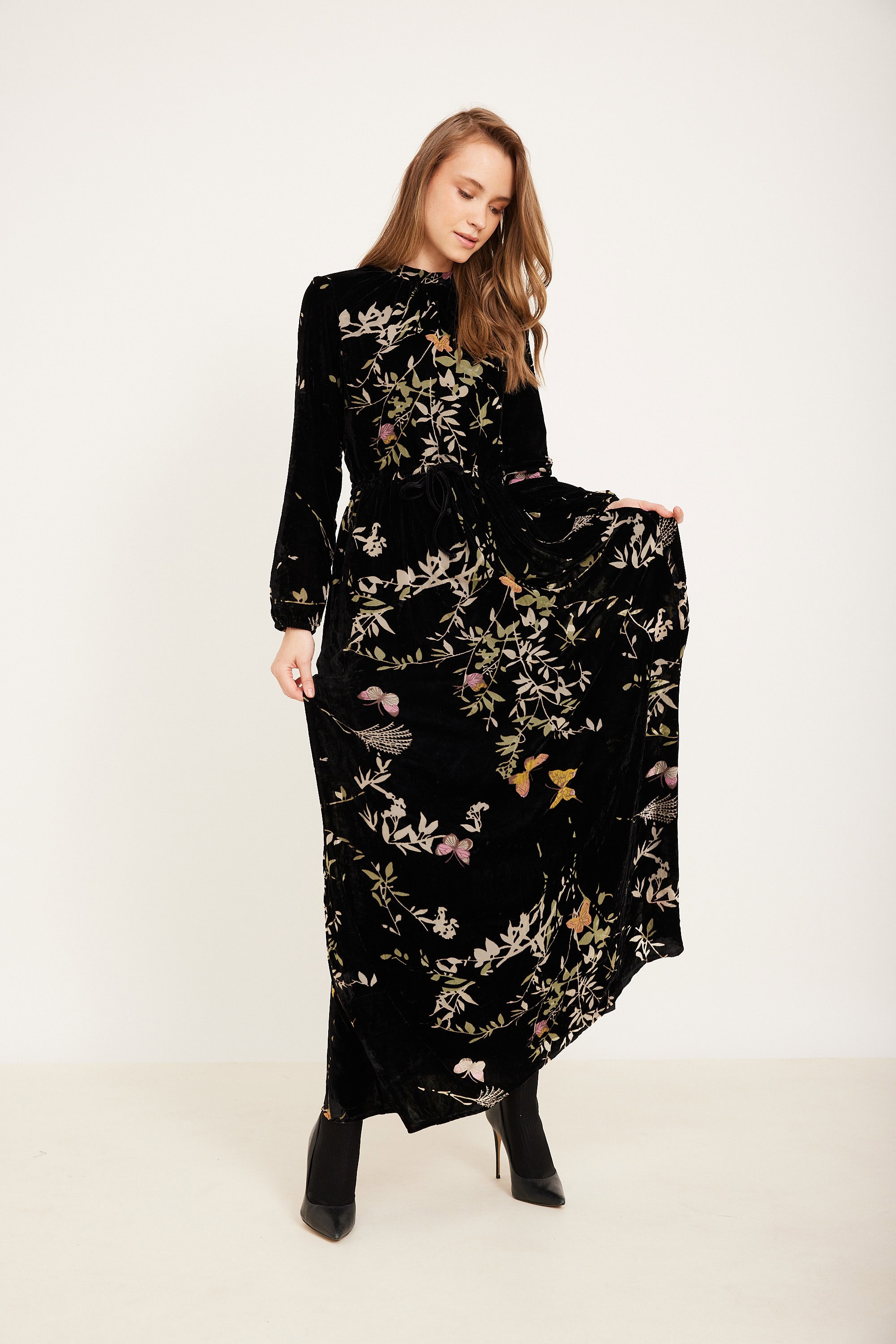 שמלת קטיפה צרובה פרפרים