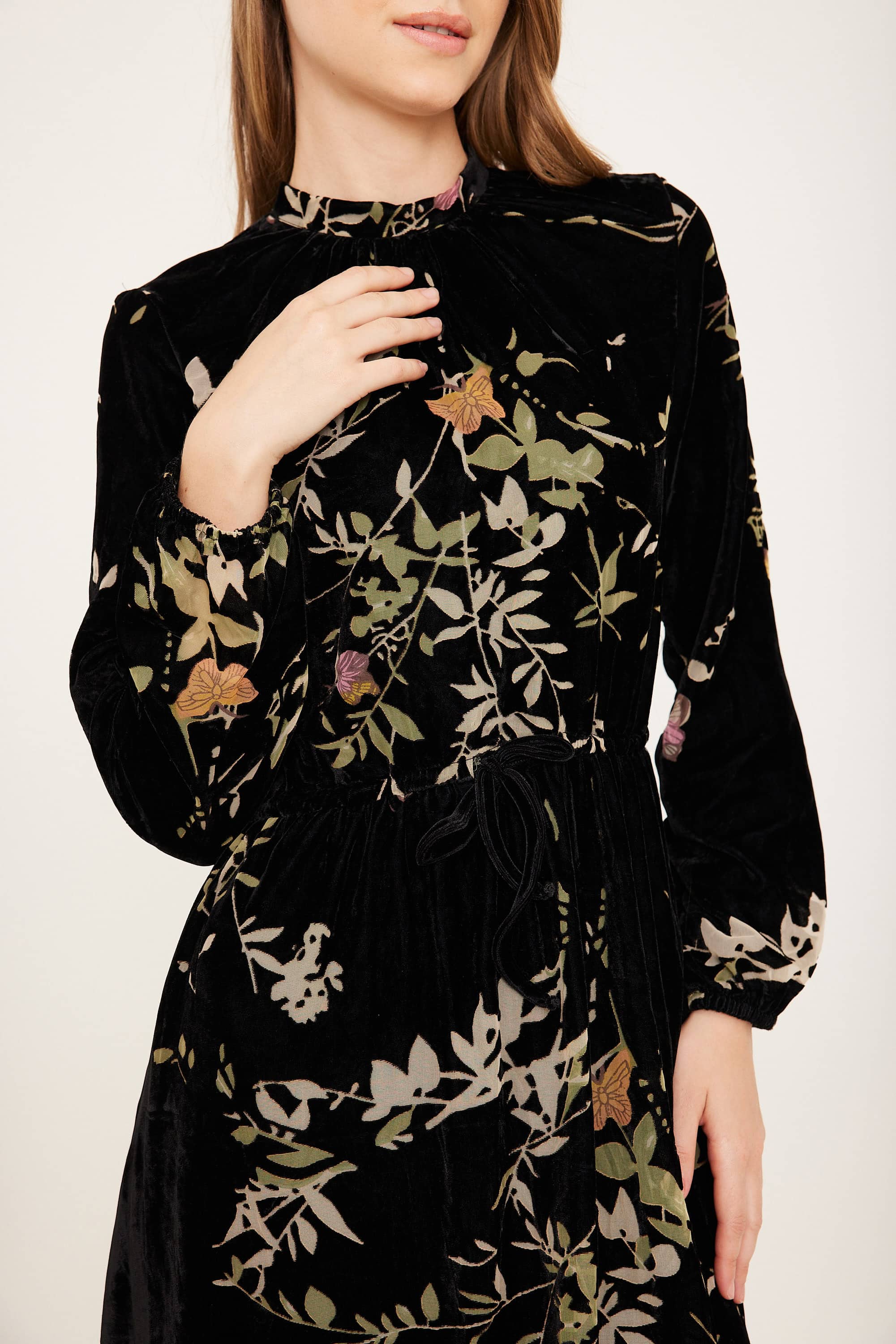 שמלת קטיפה בגיזרת כיווץ במותן וחצי גולף