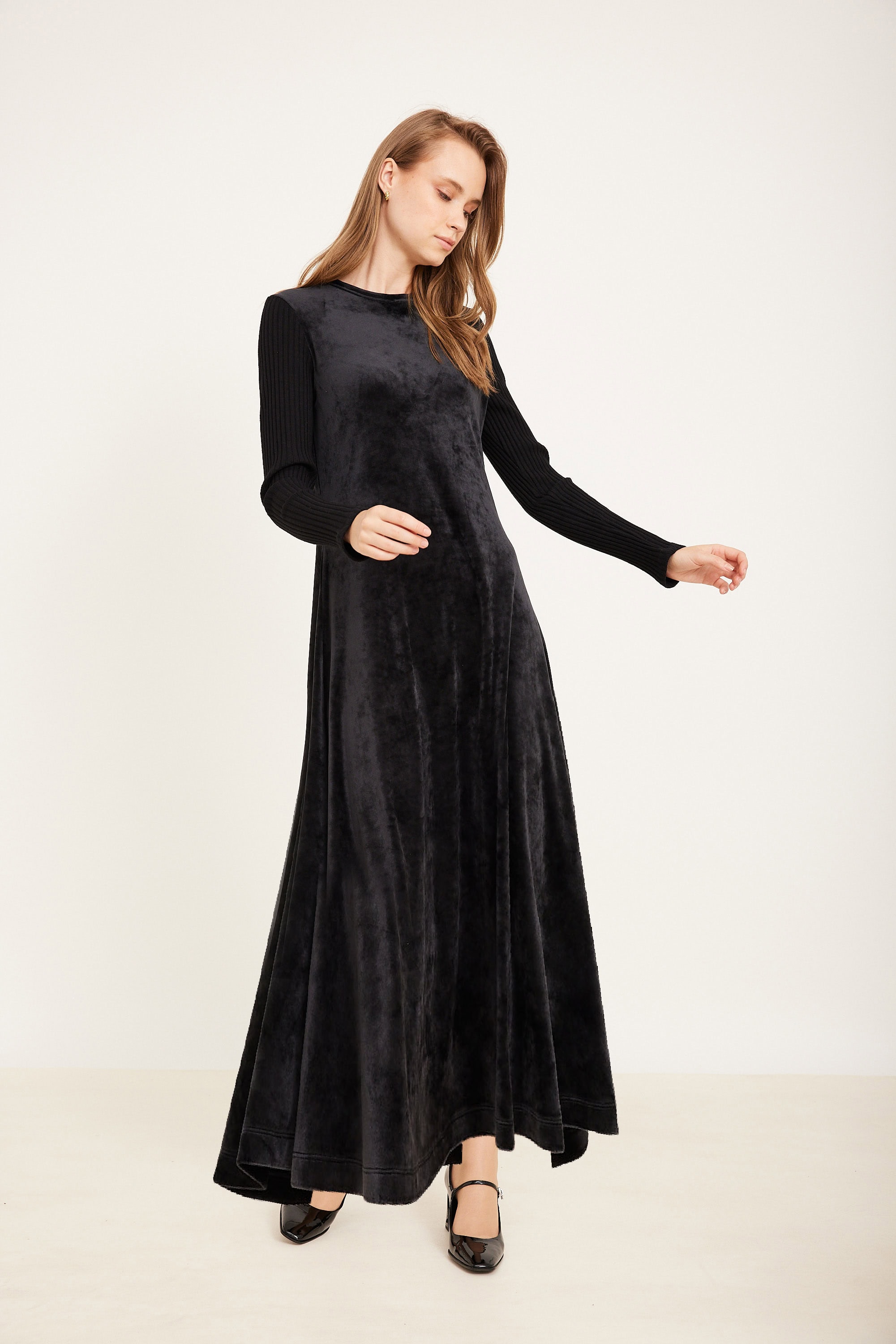 שמלת קטיפה שרוול ריבס