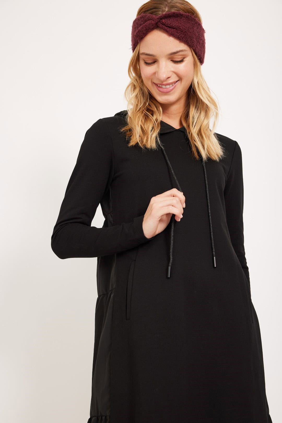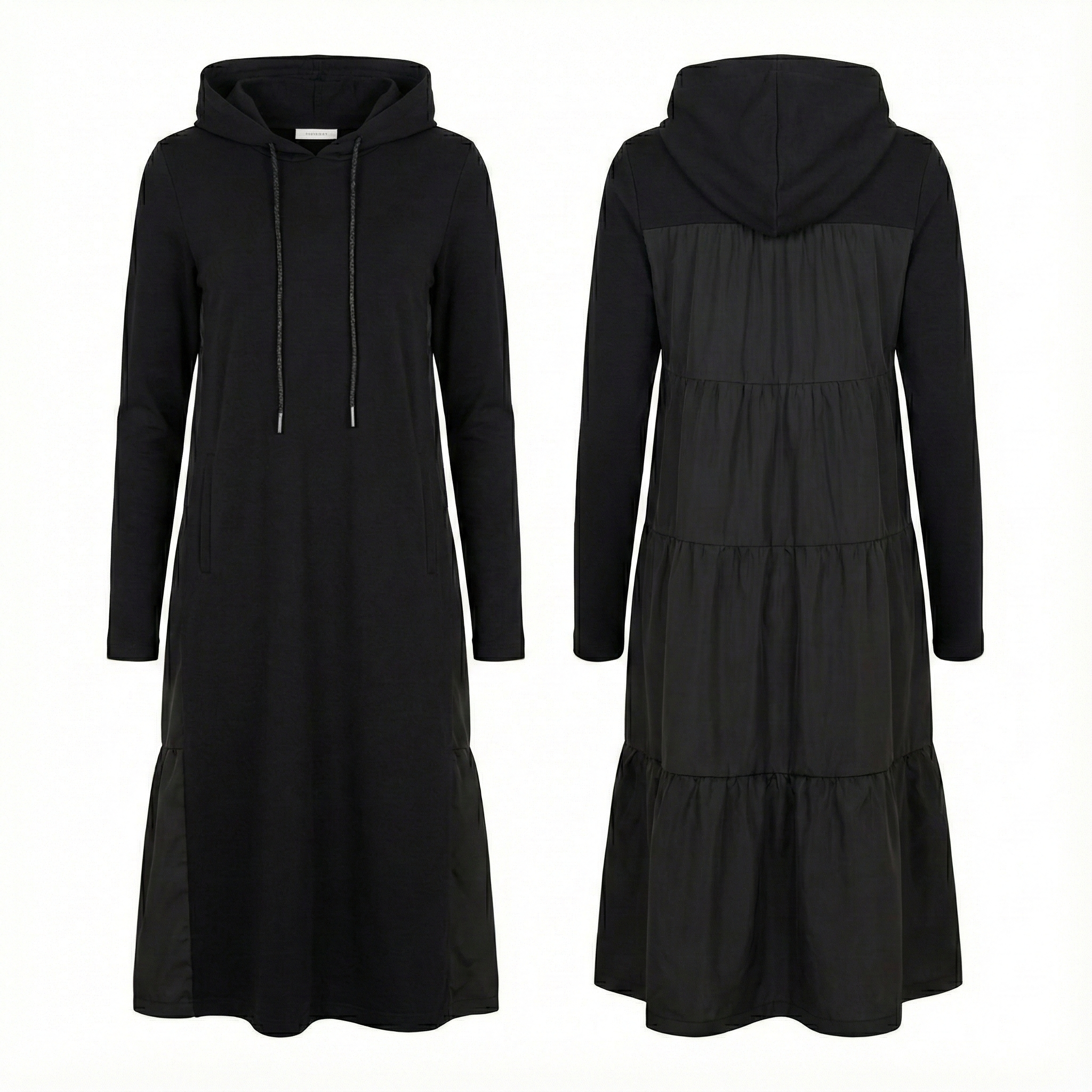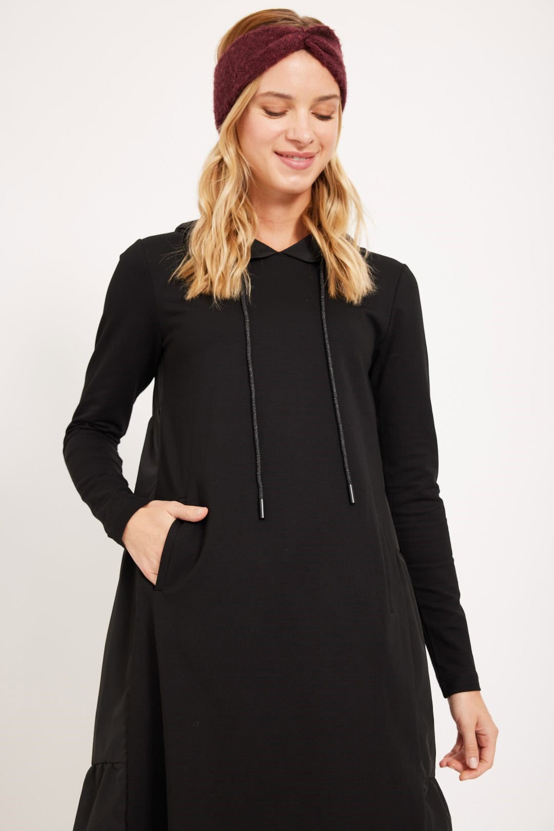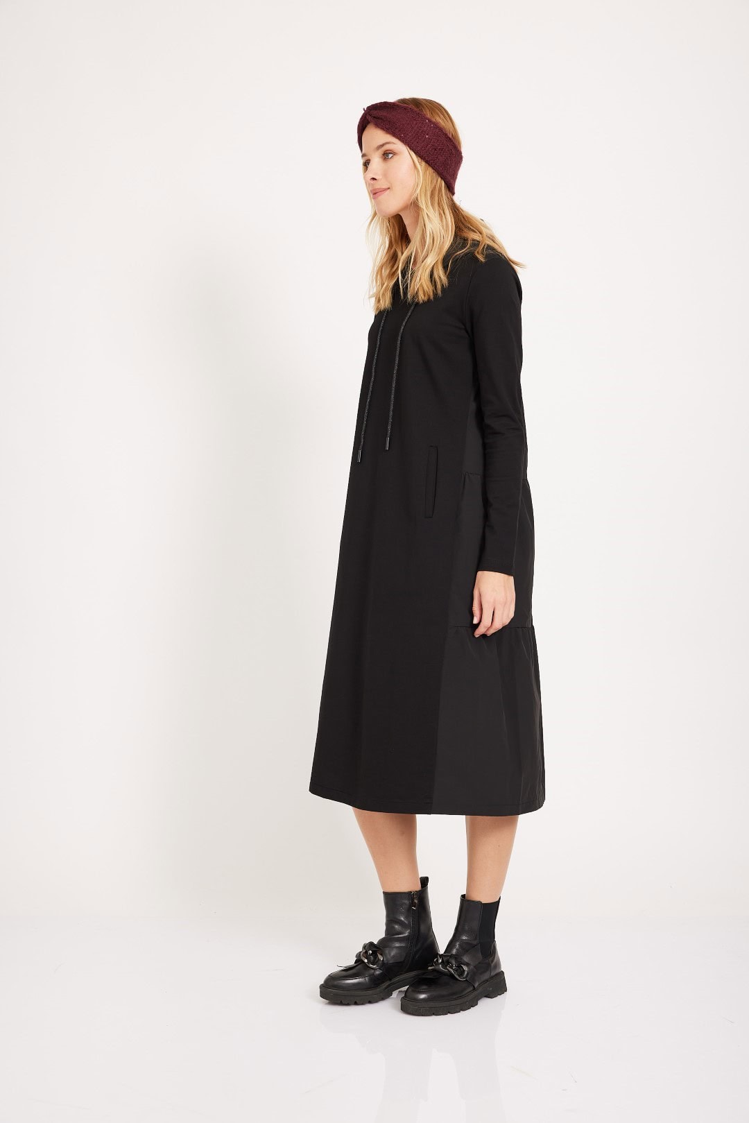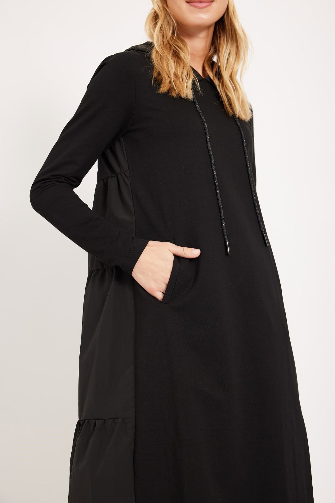 שמלת A שחורה עם כיסים וקפוצ’ון